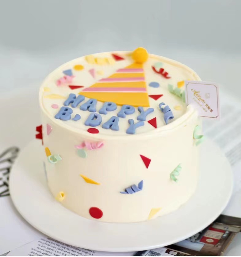 本款式是翻糖制作,生日帽字母 都是翻糖,口感一般可不食用,蛋糕体是奶油蛋糕