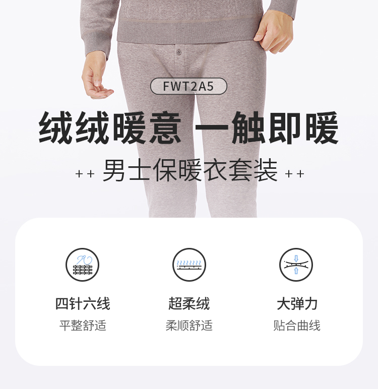 都市丽人都市锋尚保暖衣强暖套装德绒提花复合绒厚男士保暖衣套装FWT2A5