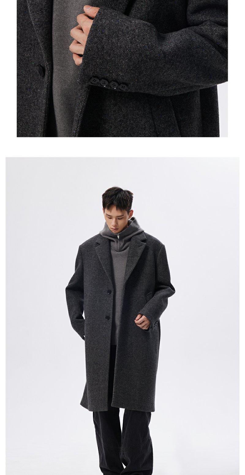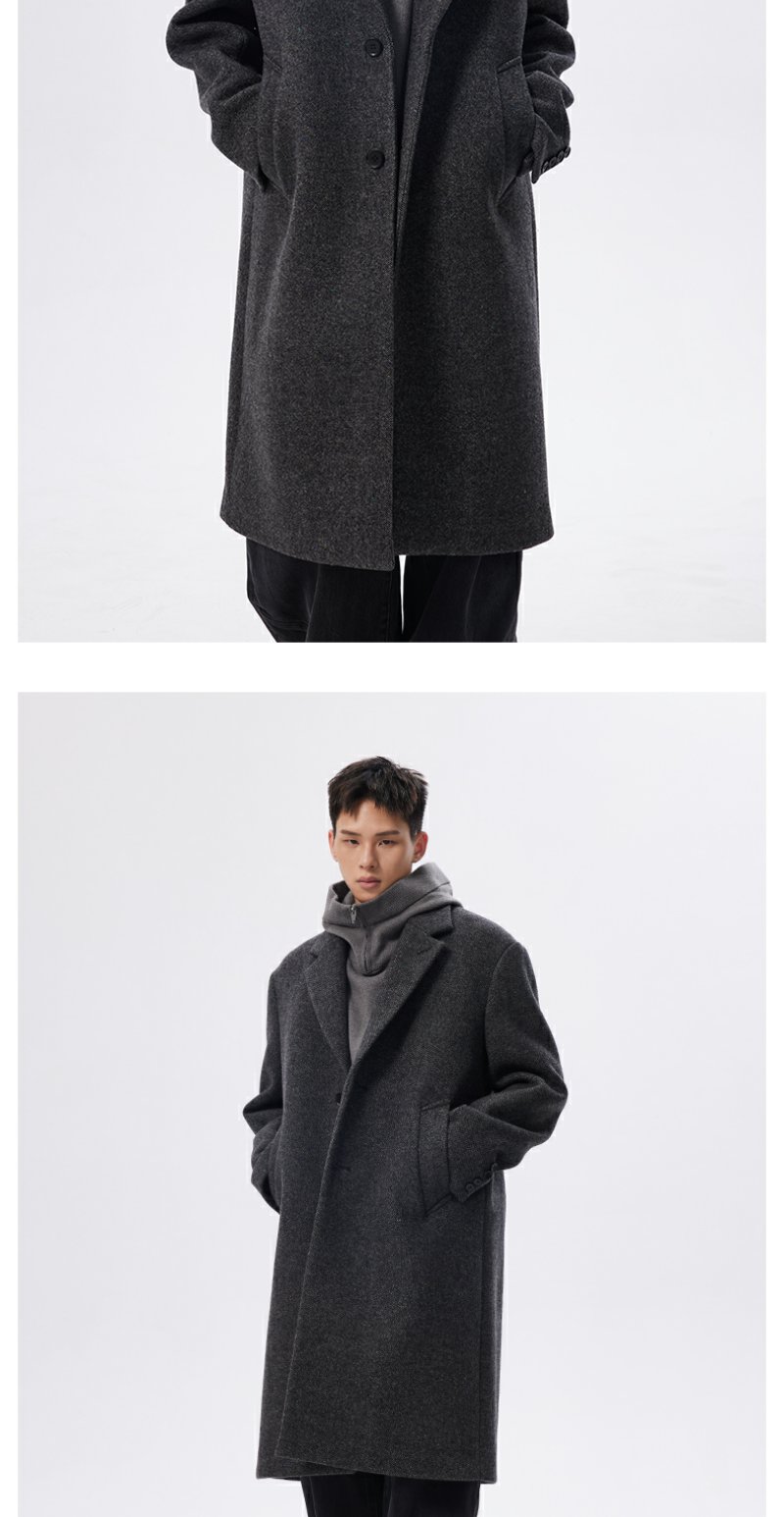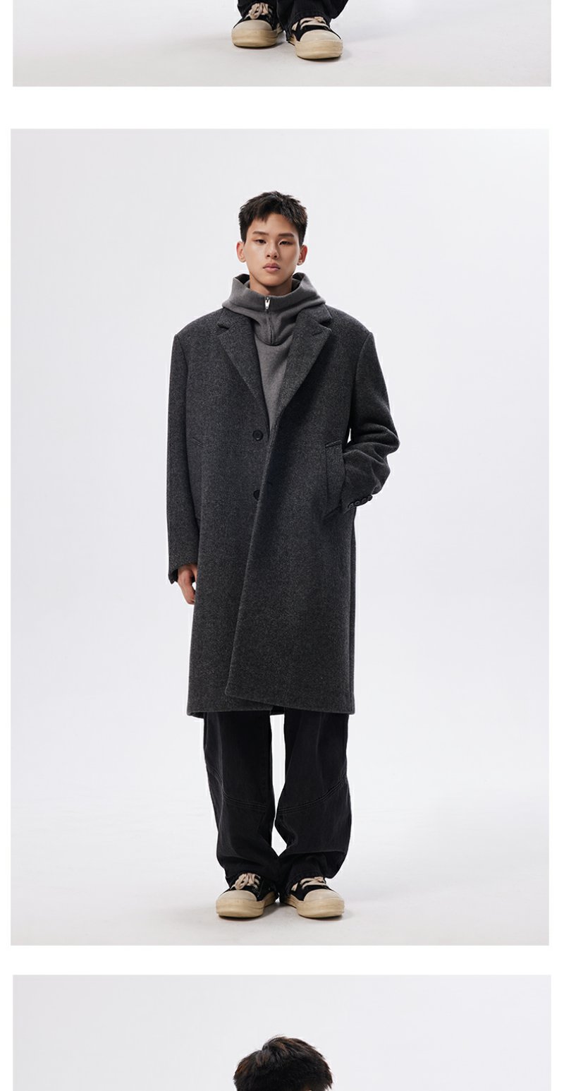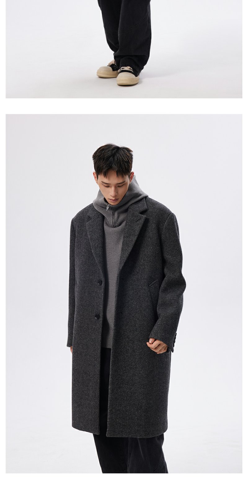CHINISM赤尘 中长款翻领羊毛呢子大衣男秋季休闲男士过膝毛呢外套