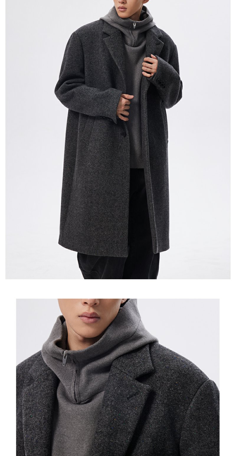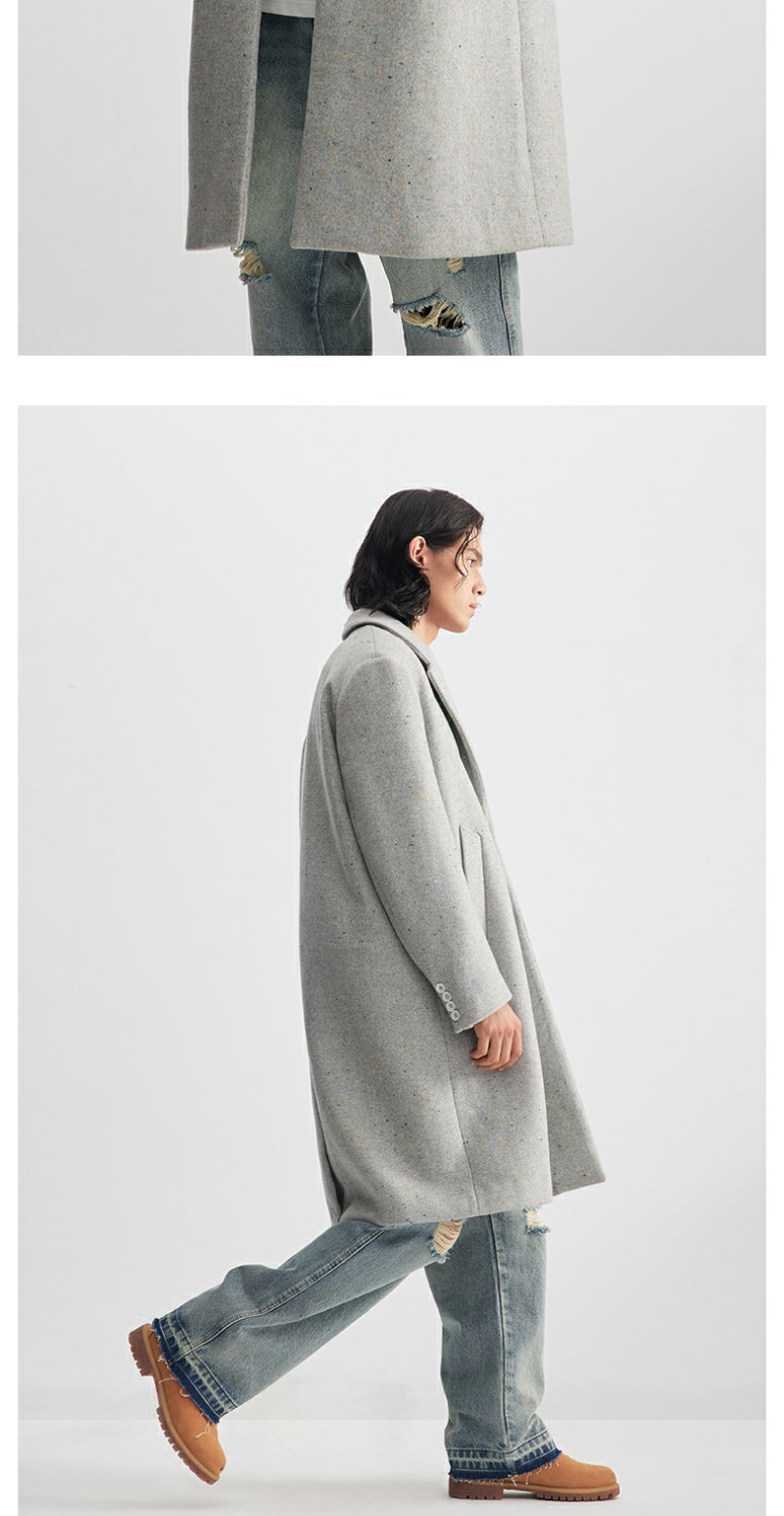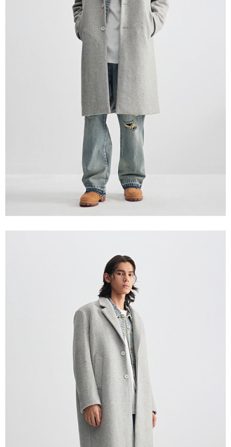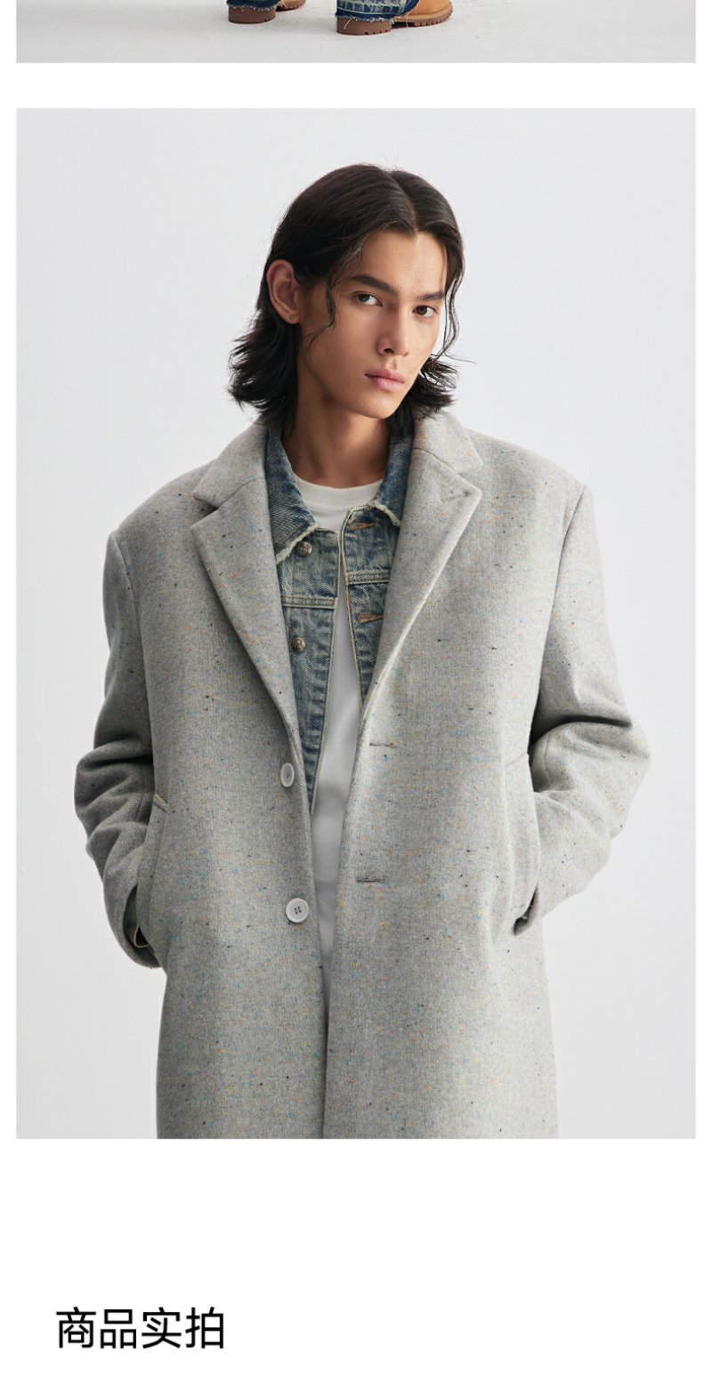CHINISM赤尘 中长款翻领羊毛呢子大衣男秋季休闲男士过膝毛呢外套