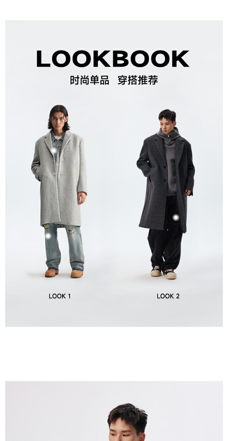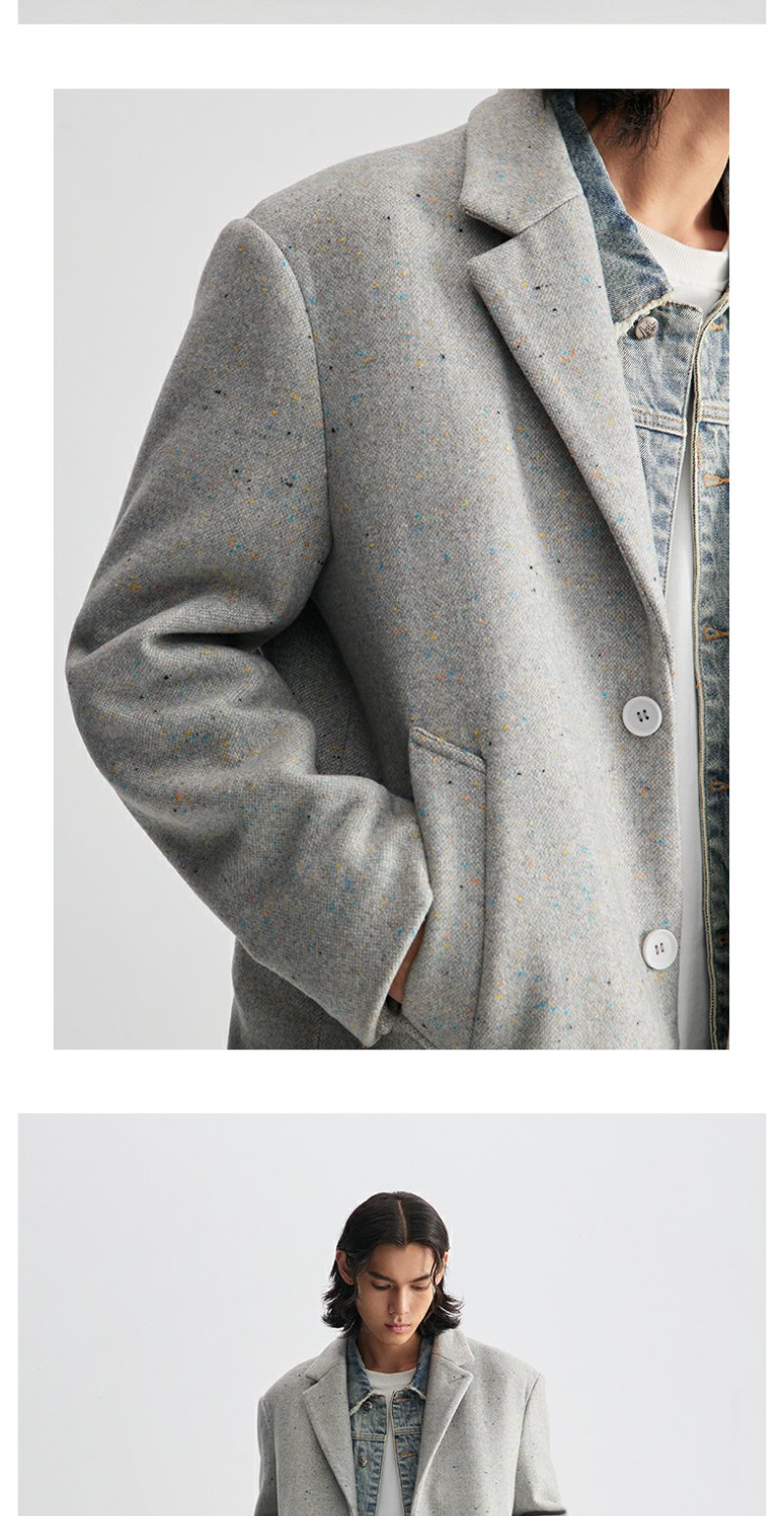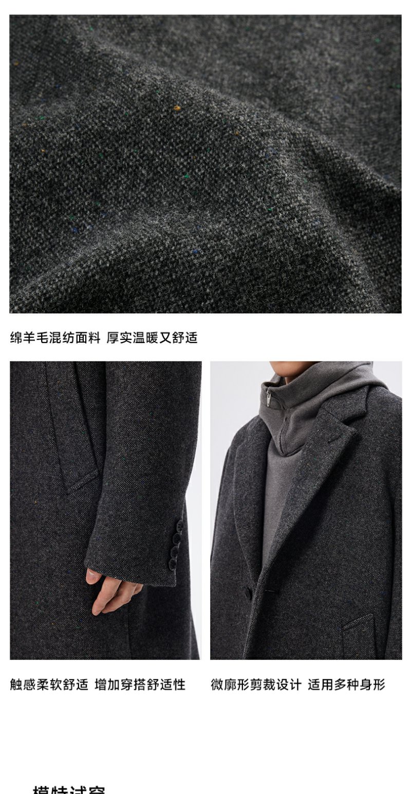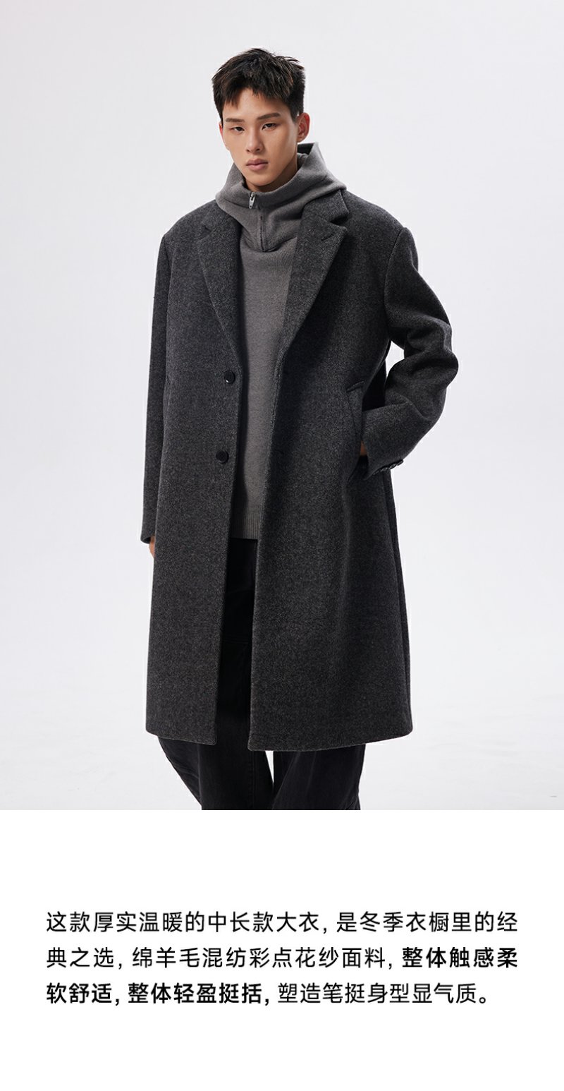 CHINISM赤尘 中长款翻领羊毛呢子大衣男秋季休闲男士过膝毛呢外套