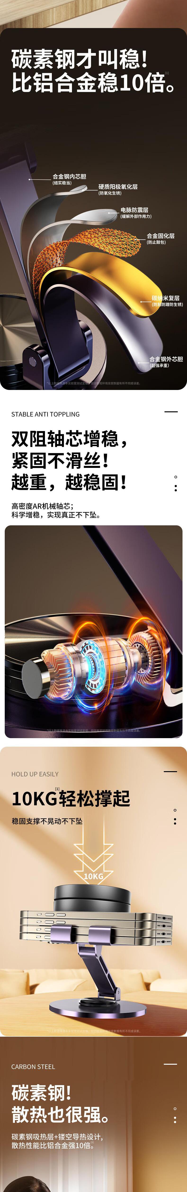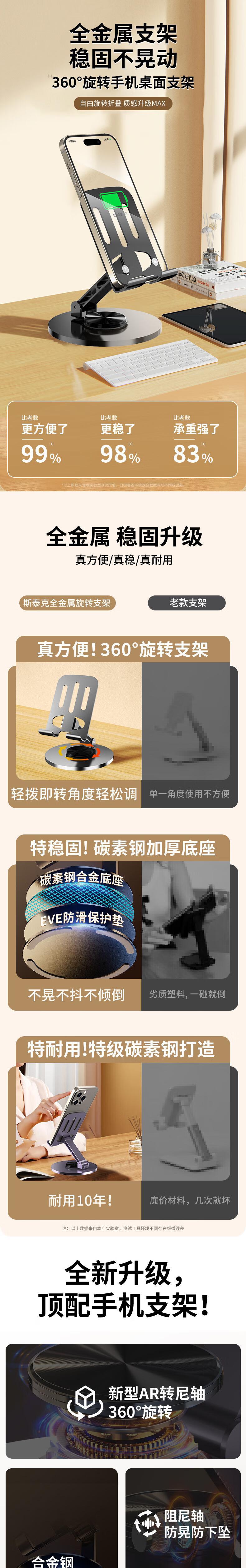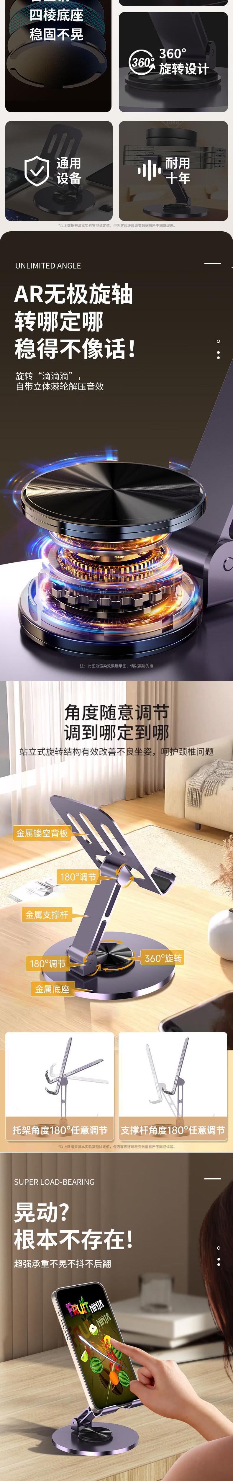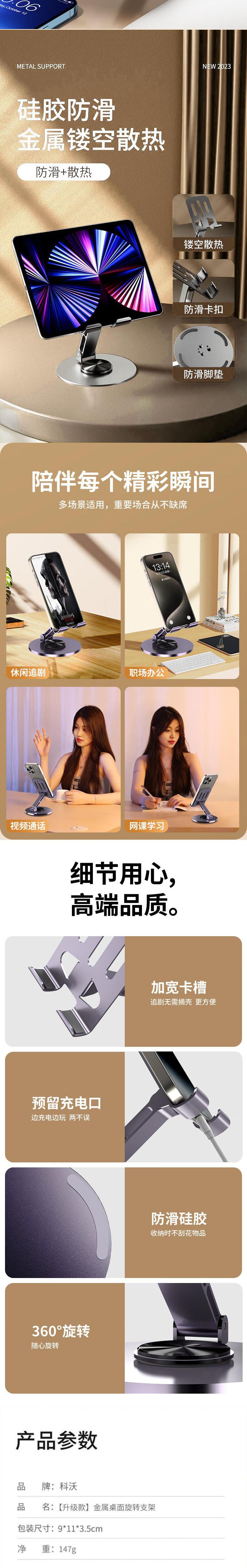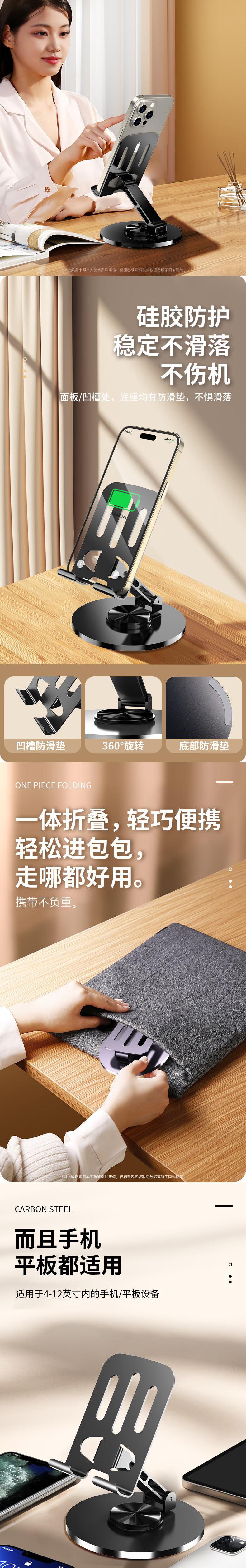 科沃ZJ03金属碳素钢桌面旋转手机支架360度旋转碳素钢稳固多机型通用