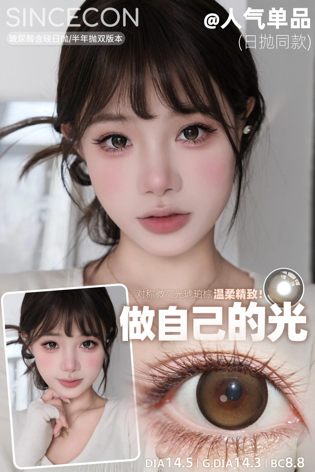 (Sincecon日抛全系列)【完整色板在详情页,同品牌多盒日抛购买更划算】超大水光巧