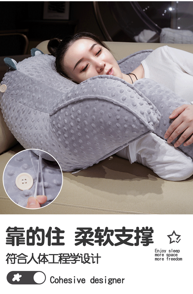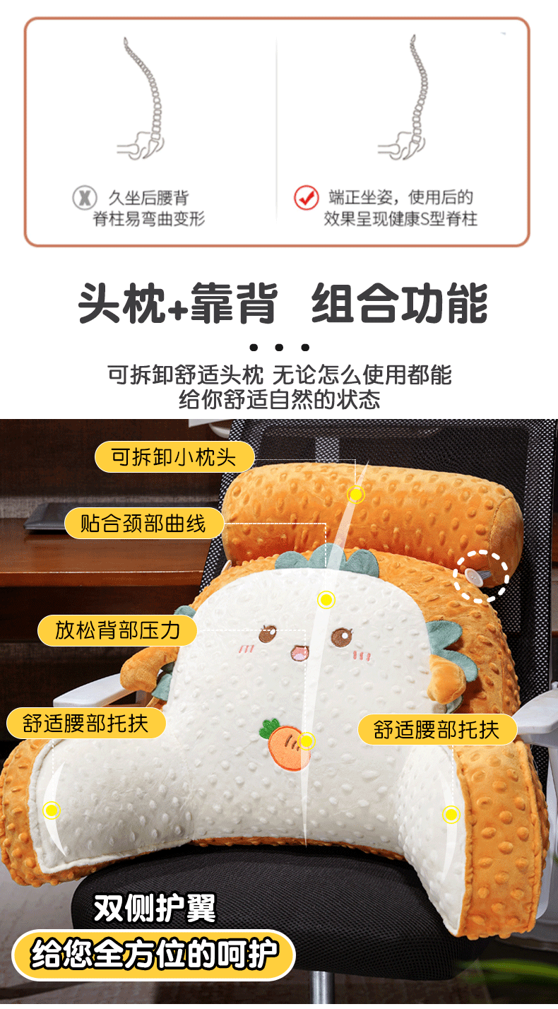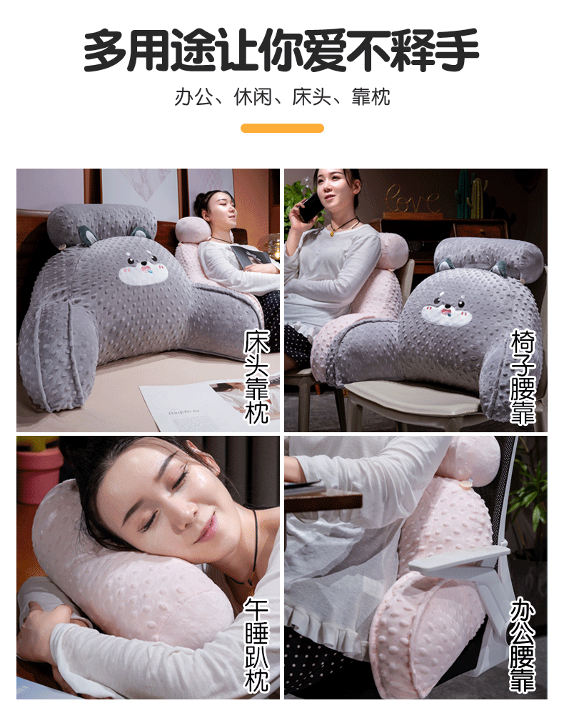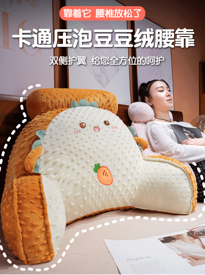 自然醒卡通压泡豆豆绒拥抱式腰靠QYL