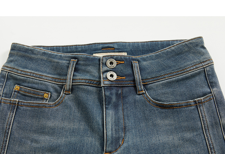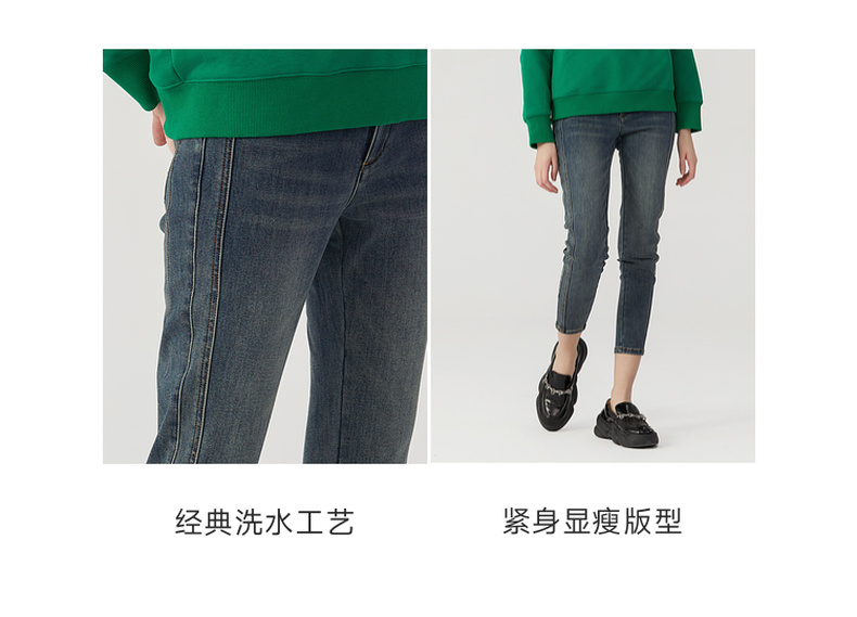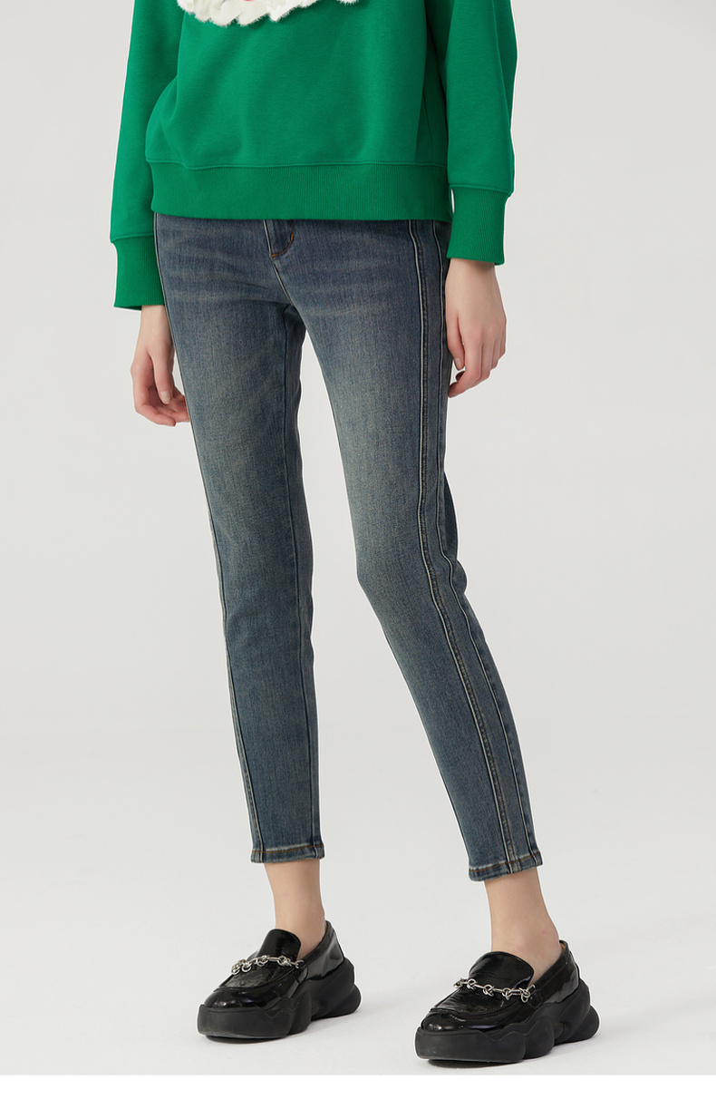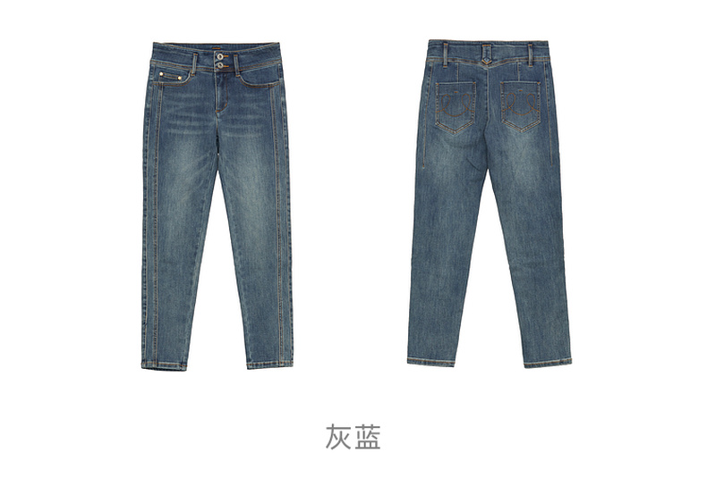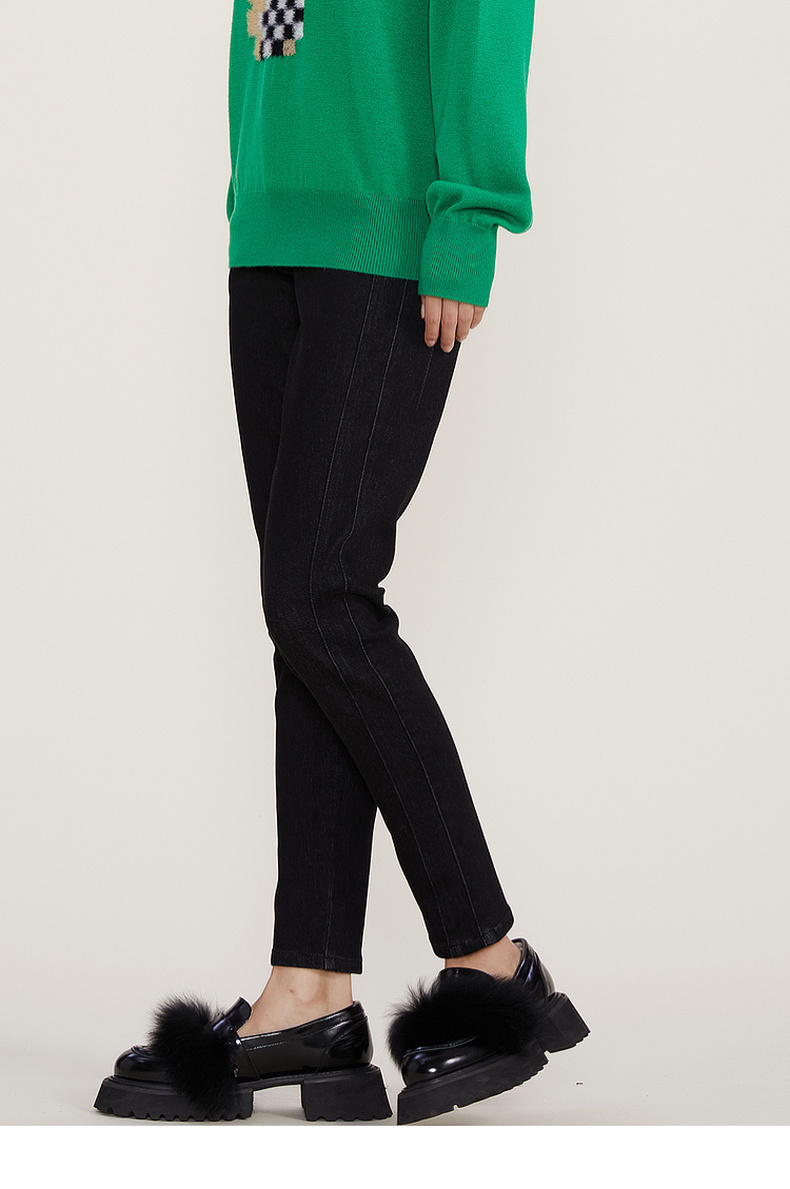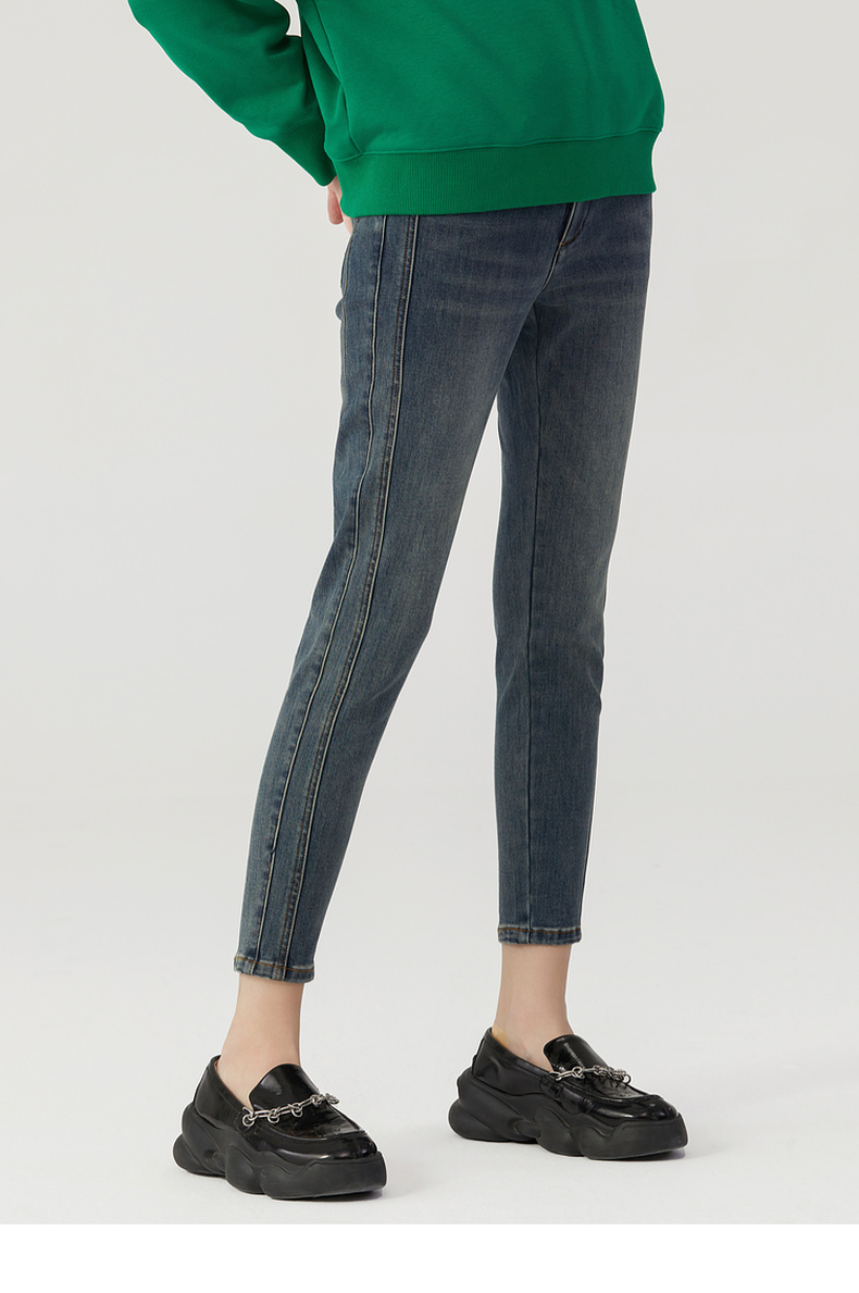 谜底2022冬新款百搭高腰紧身磨毛牛仔裤女铅笔裤小脚裤224MK1520
