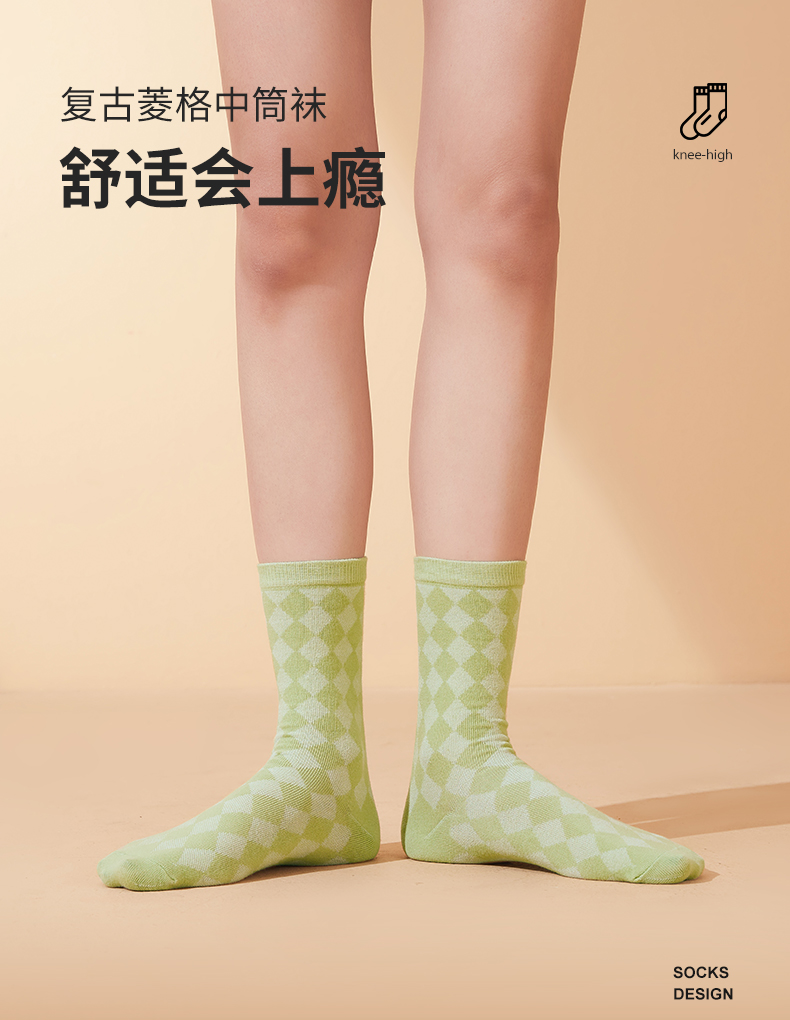 骆驼2025年柔软舒适日系复古菱格透气中筒袜女士 RP22256860
