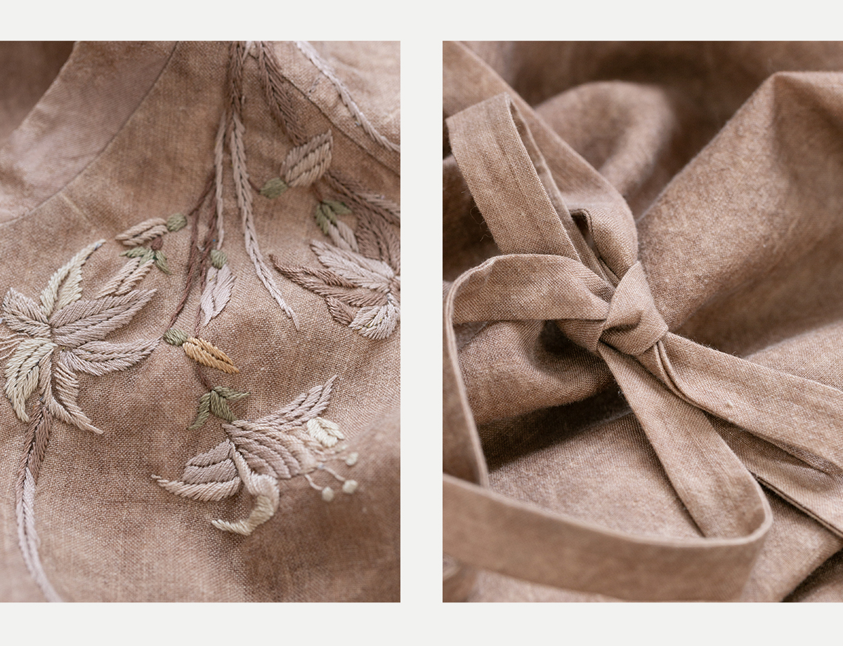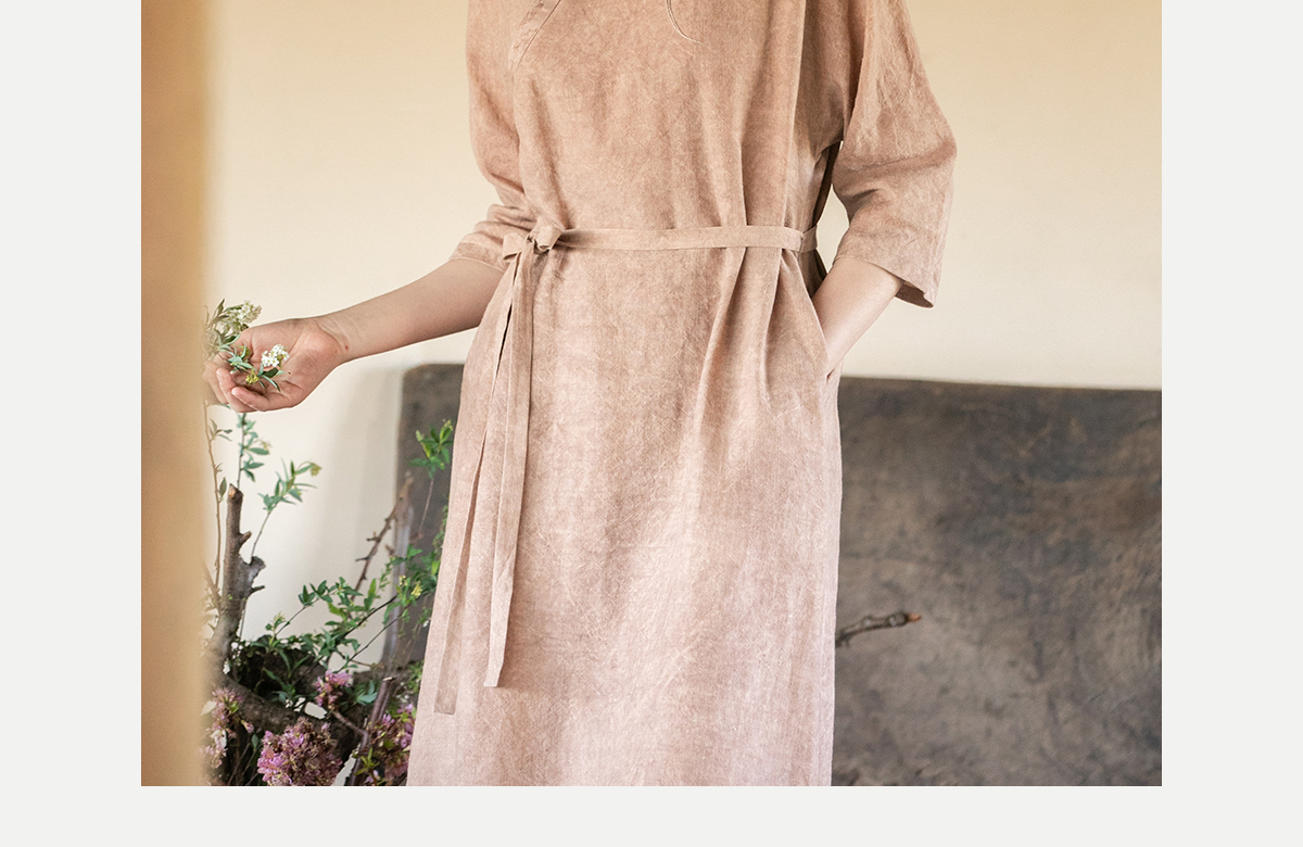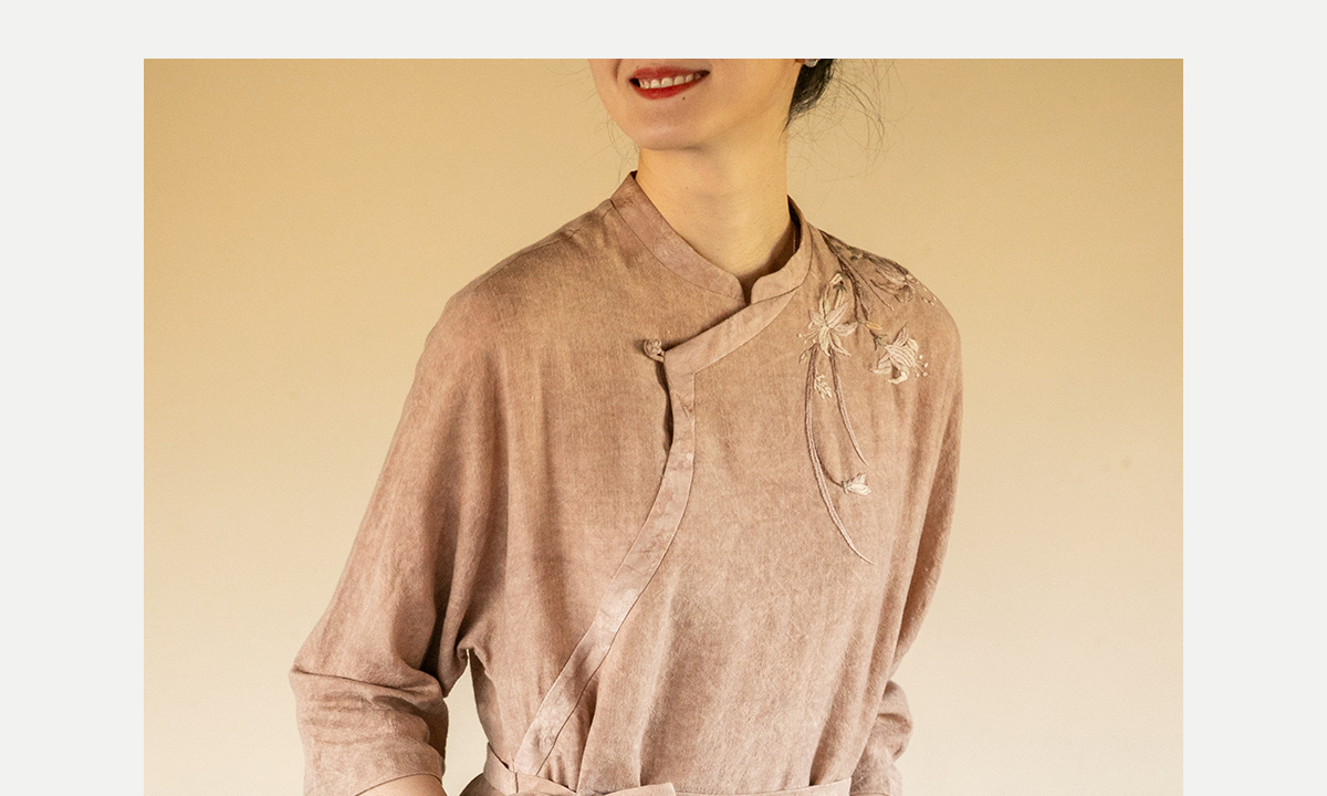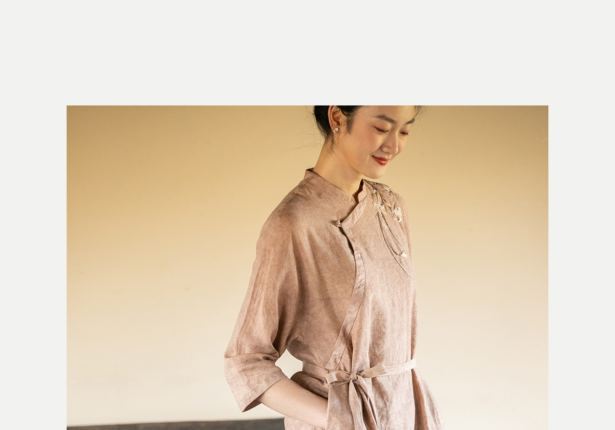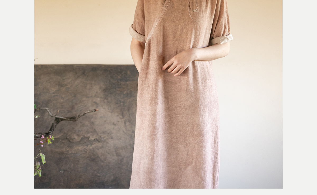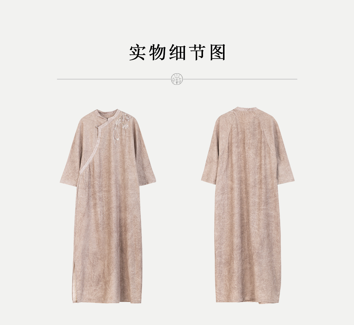牧衣游原创 柞蚕丝手工刺绣连衣裙炒色古朴东方改良旗袍气质 云闲