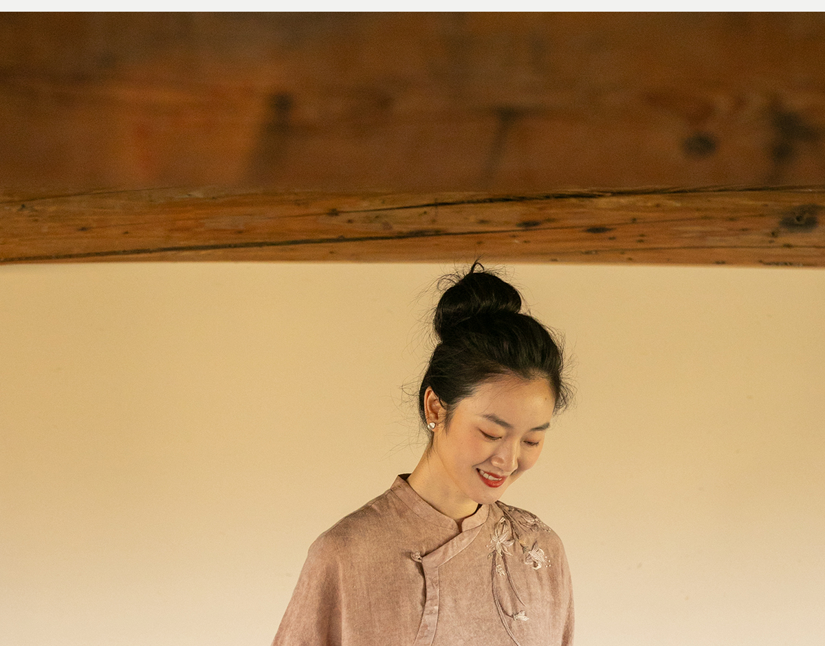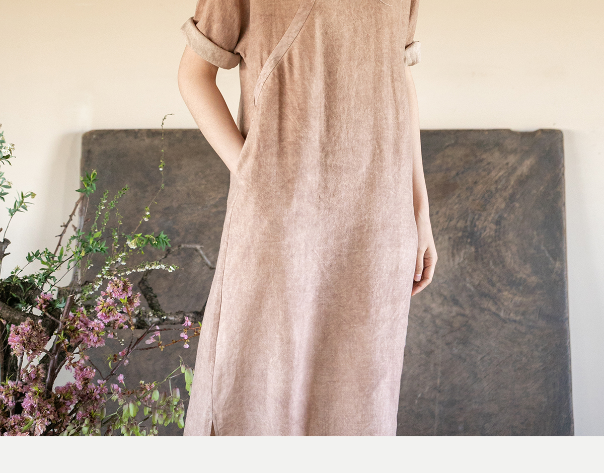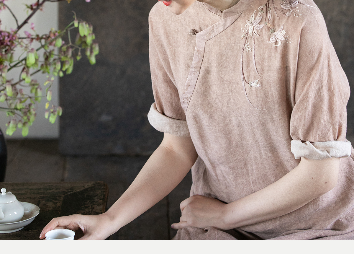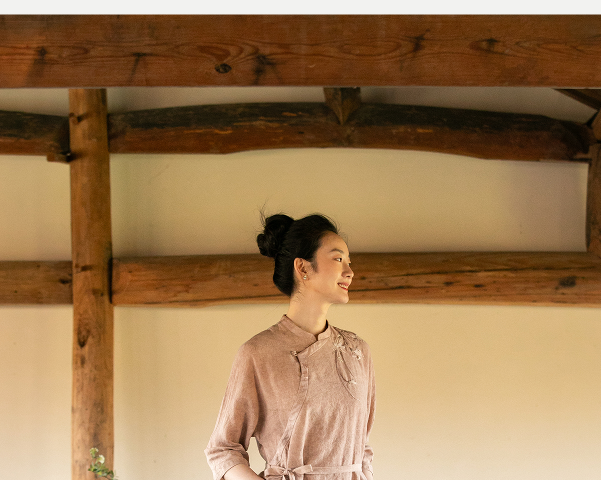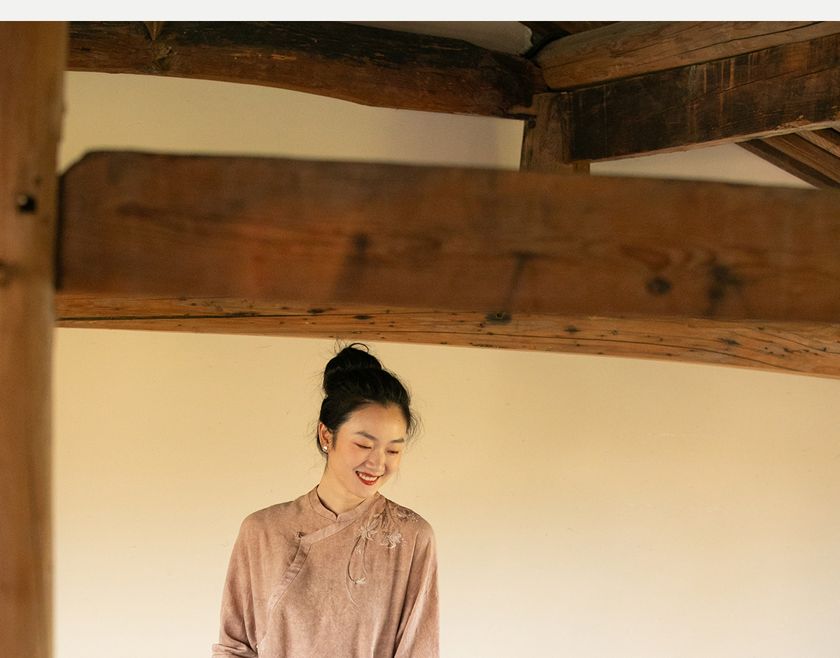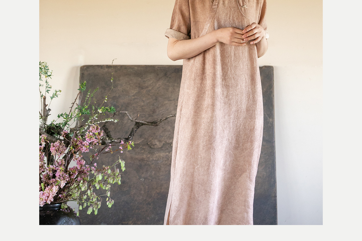 牧衣游原创 柞蚕丝手工刺绣连衣裙炒色古朴东方改良旗袍气质 云闲