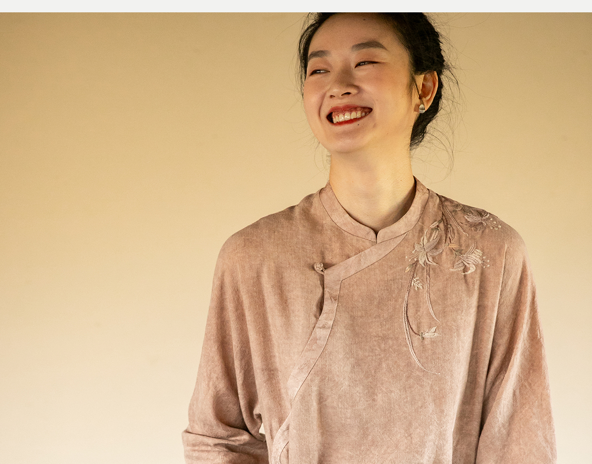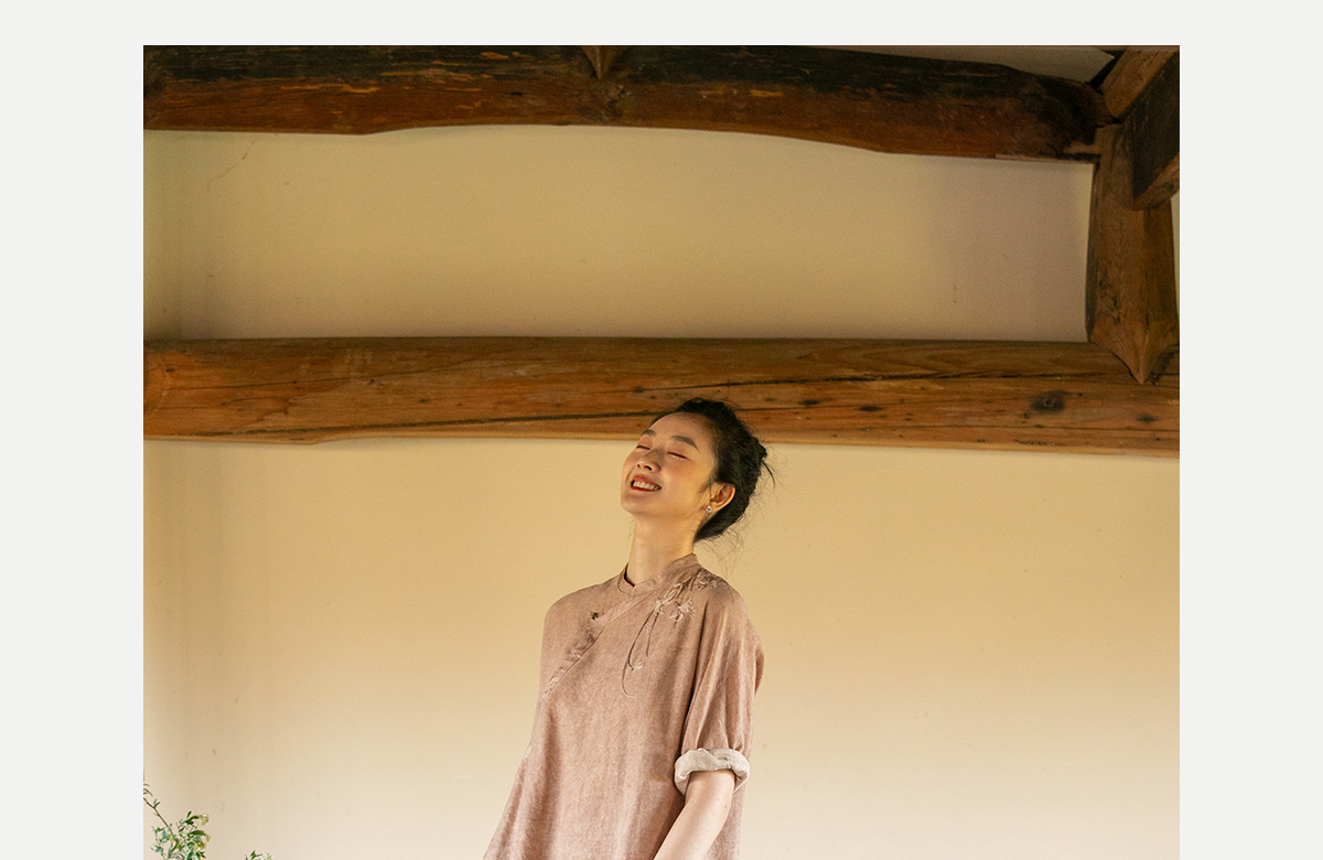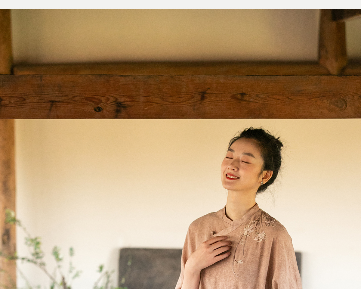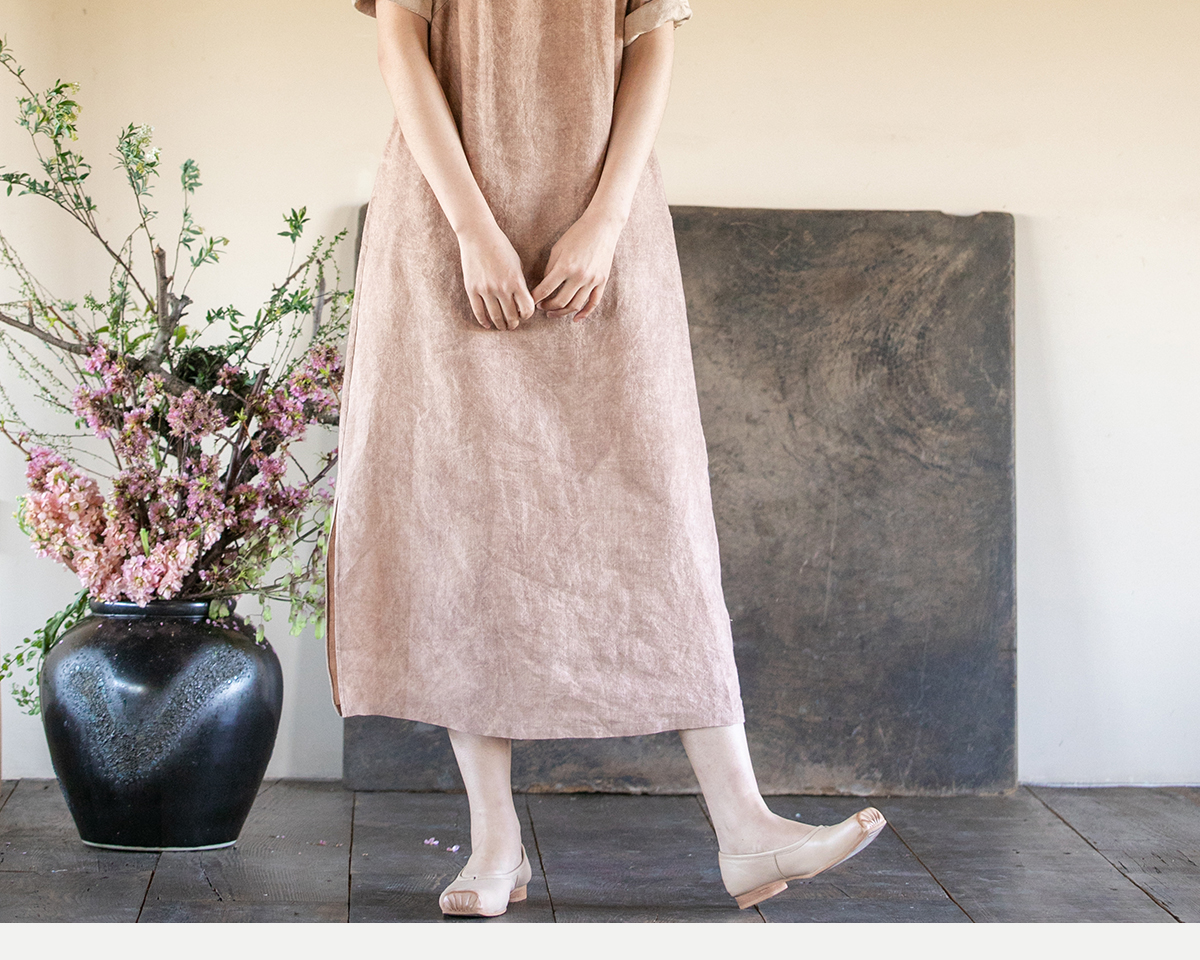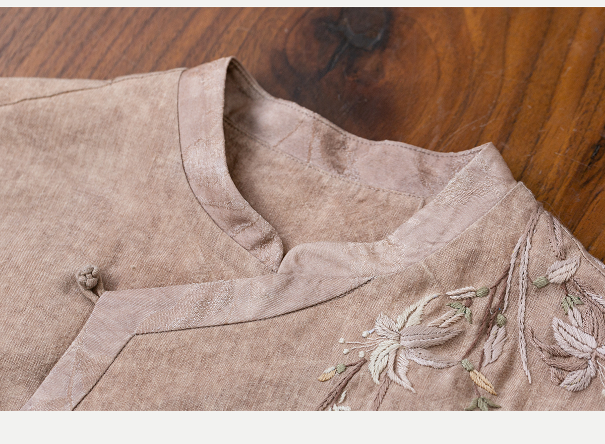 牧衣游原创 柞蚕丝手工刺绣连衣裙炒色古朴东方改良旗袍气质 云闲