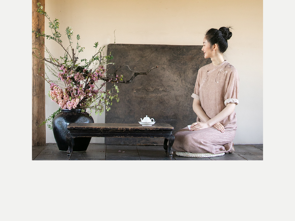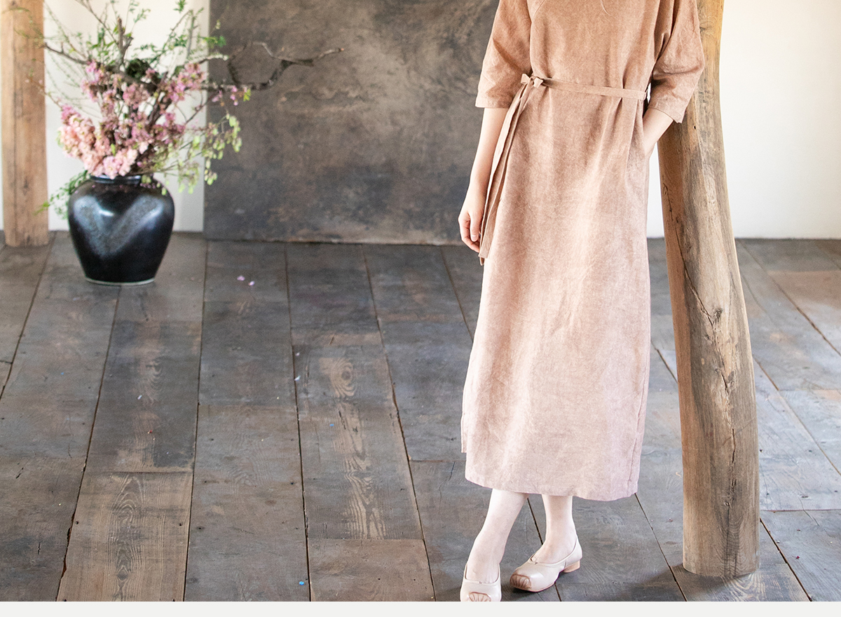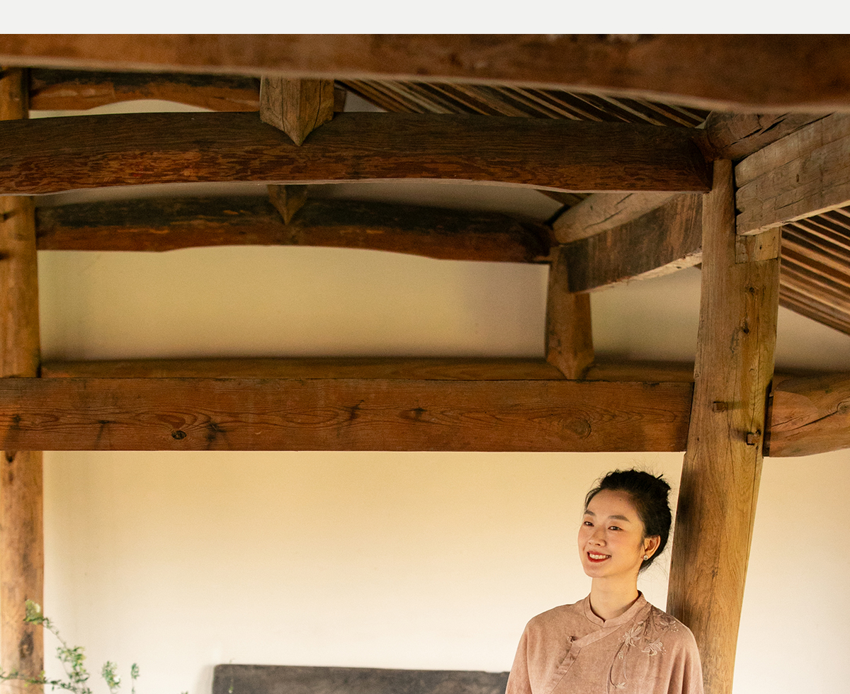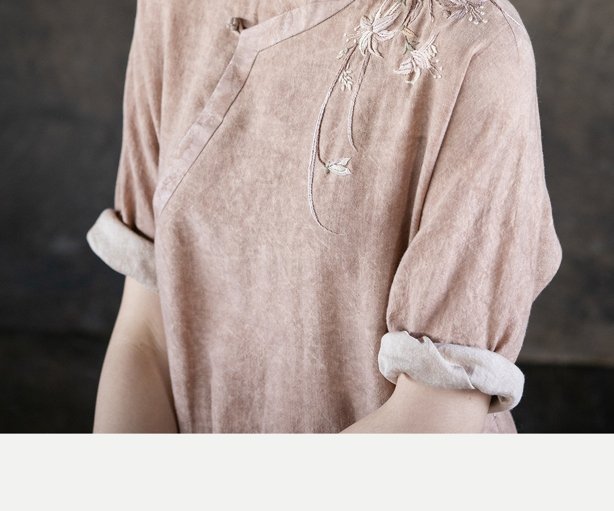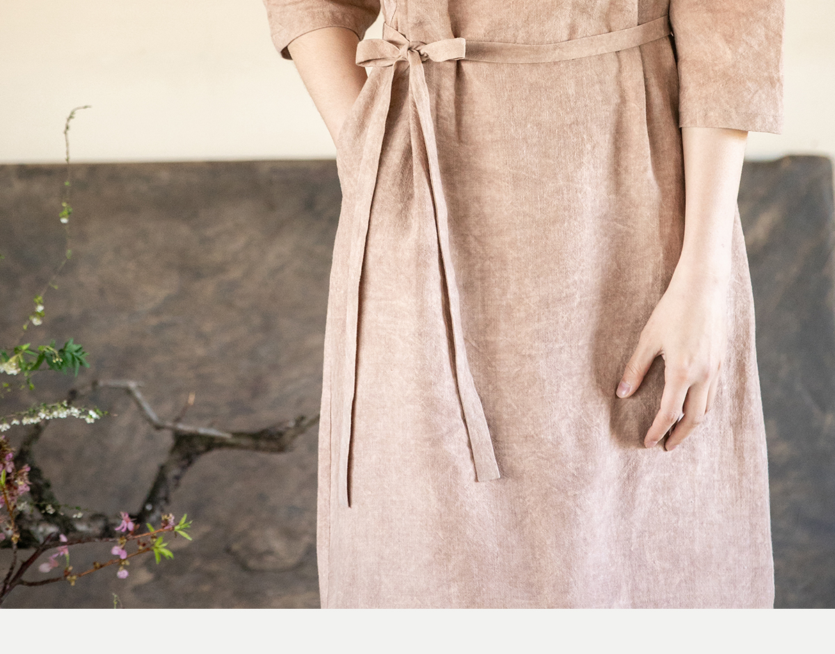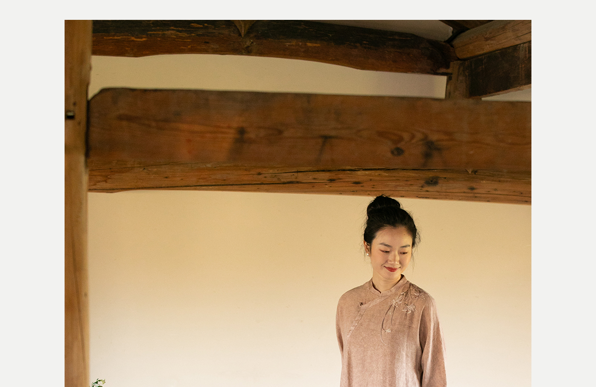牧衣游原创 柞蚕丝手工刺绣连衣裙炒色古朴东方改良旗袍气质 云闲