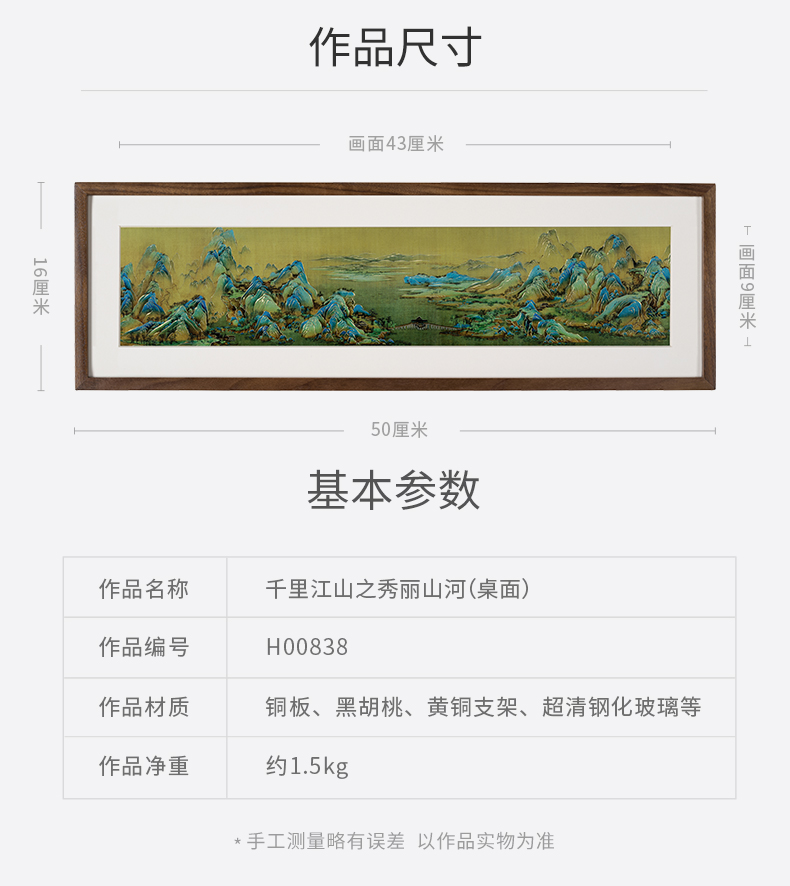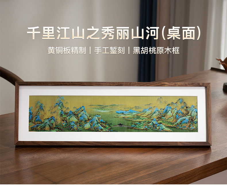 铜师傅 手工錾刻 铜雕画 《千里江山之秀丽山河(桌面)》装饰画