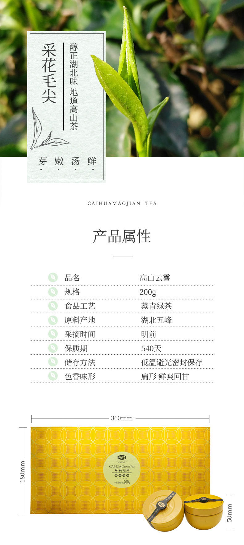 采花明前茶高山云雾茶礼盒装200g 包邮