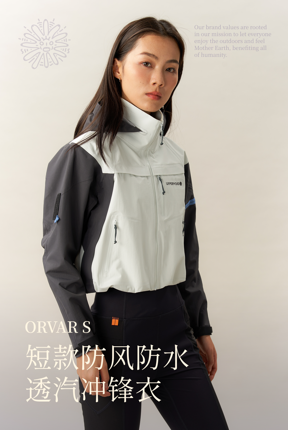 ORVAR女短款冲锋衣户外防水短款外套硬壳UPPERVOID二普纬度