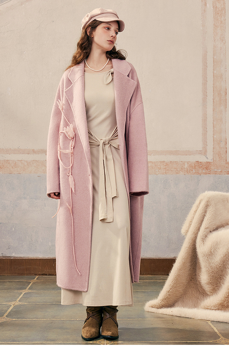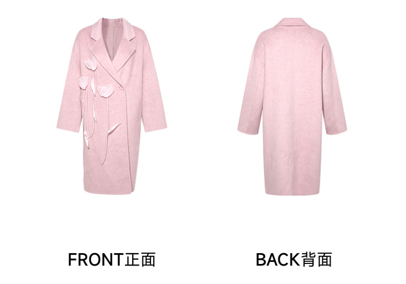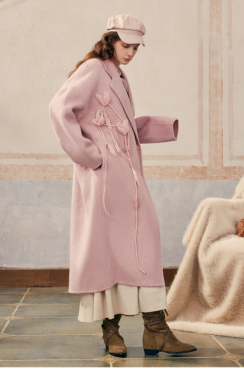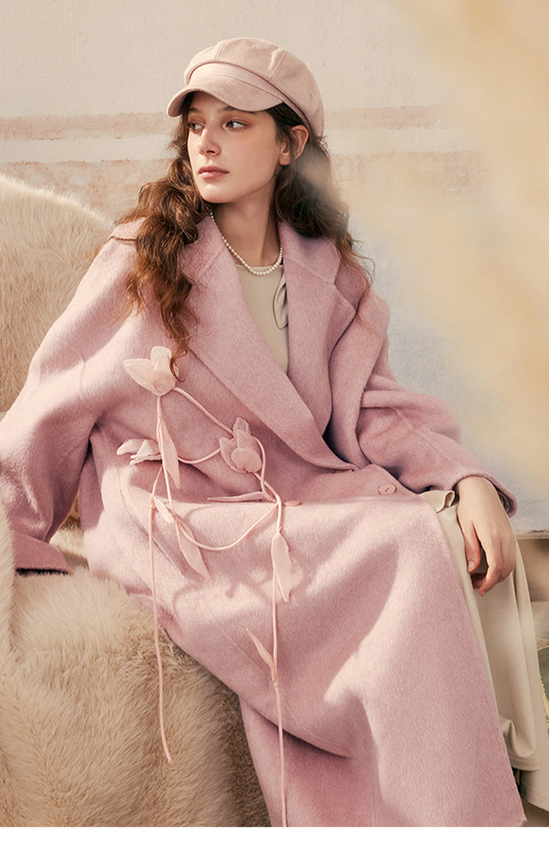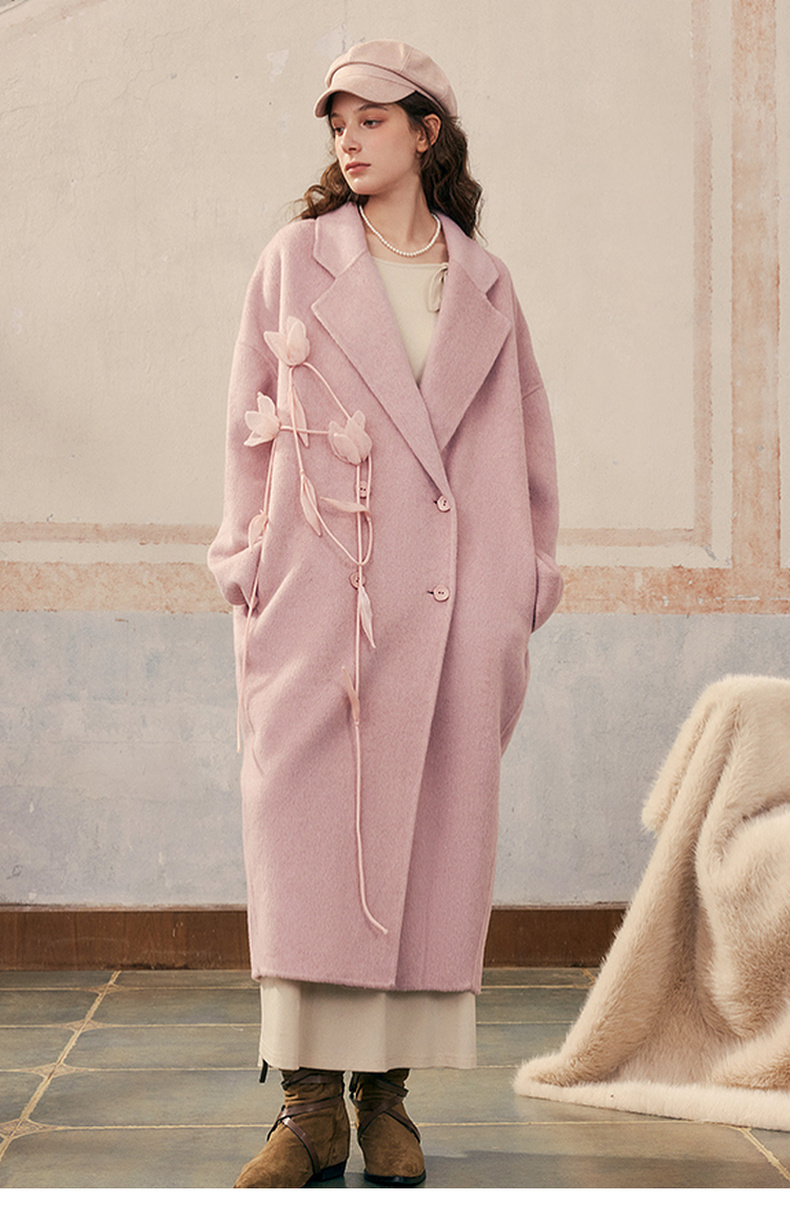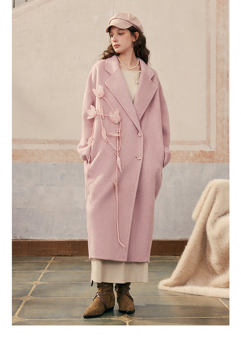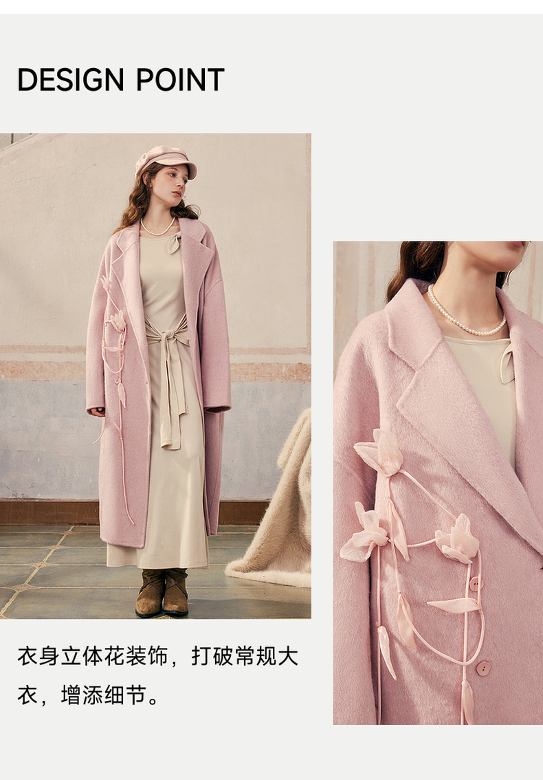 【暖冬内购】两三事甜宠花恋2024冬季新款淑女立体花朵双排扣毛呢外套女宽松