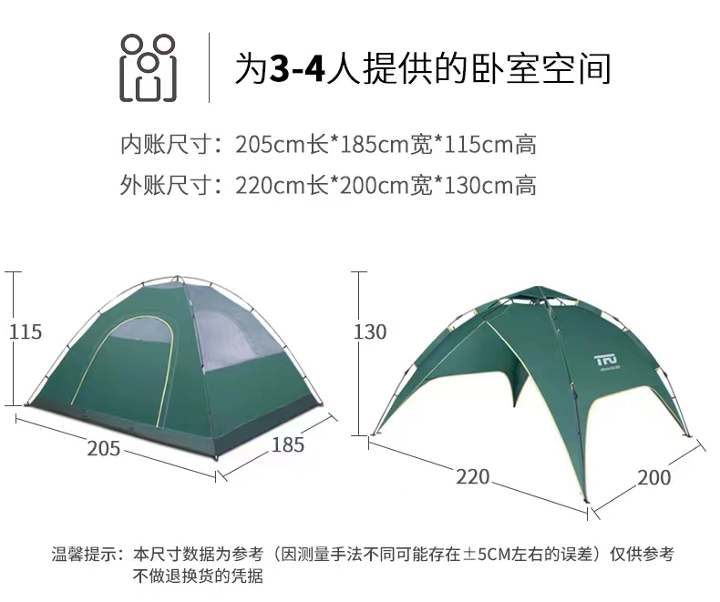 芊陌鸟户外-第一户外自动帐篷(220*200*130CM)