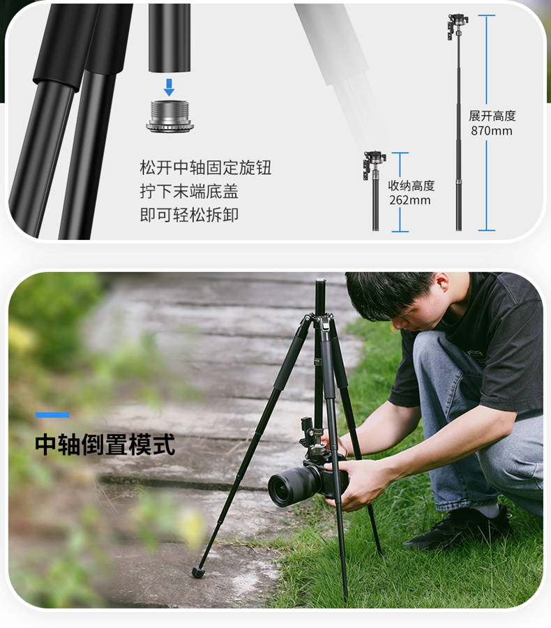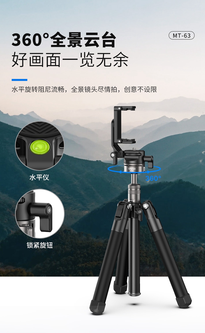 Ulanzi优篮子MT-63轻量可携式mini反折三脚架手机相机通用超轻专业摄影摄像三角架旅行vlog影片拍摄支架可登机