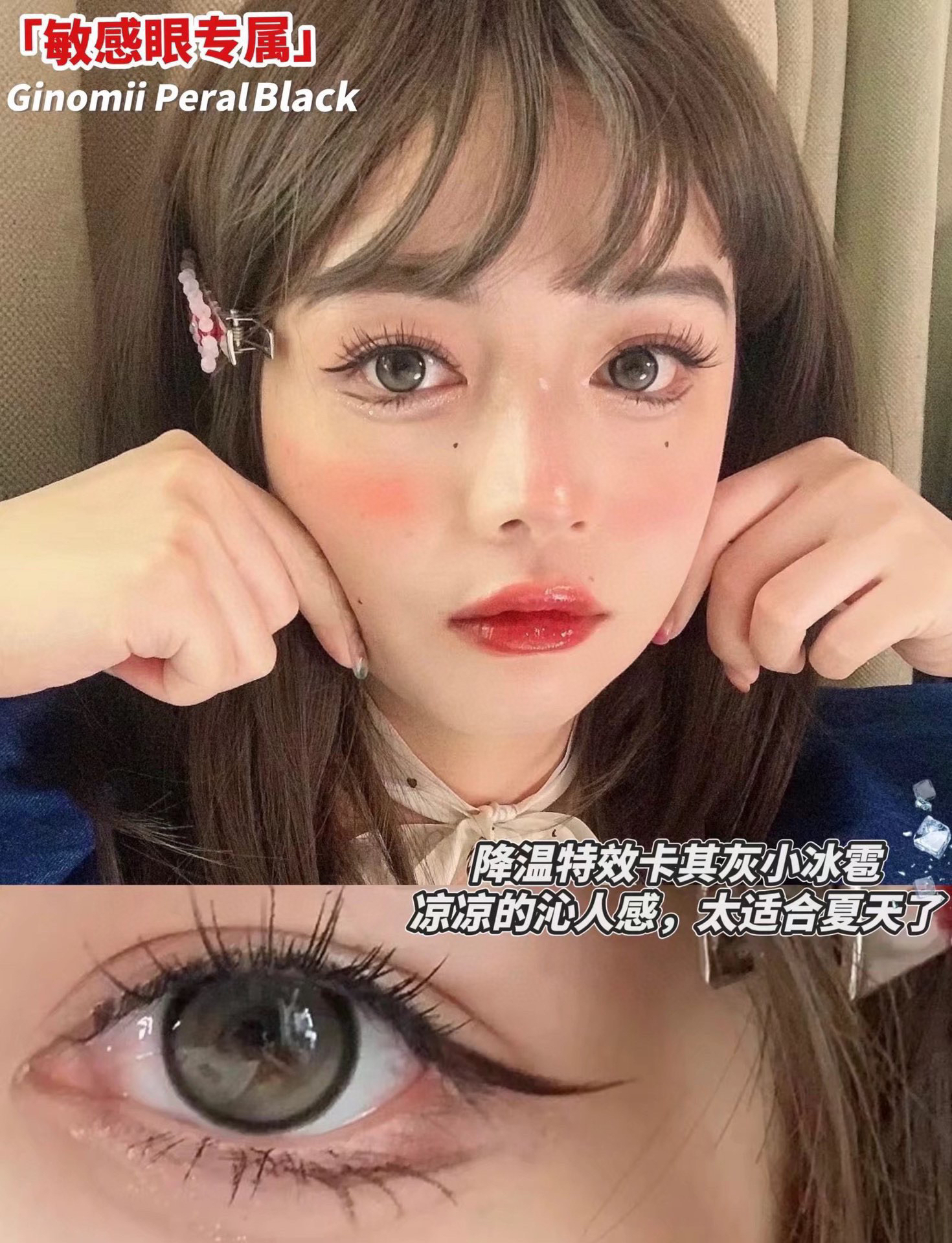 半年抛 卡其豆 Ginomii 中直径14.2 着色13.4 (同品牌多副美瞳更划算 选款色板在详情页内 )微混血美瞳 黑灰色透光小冰雹