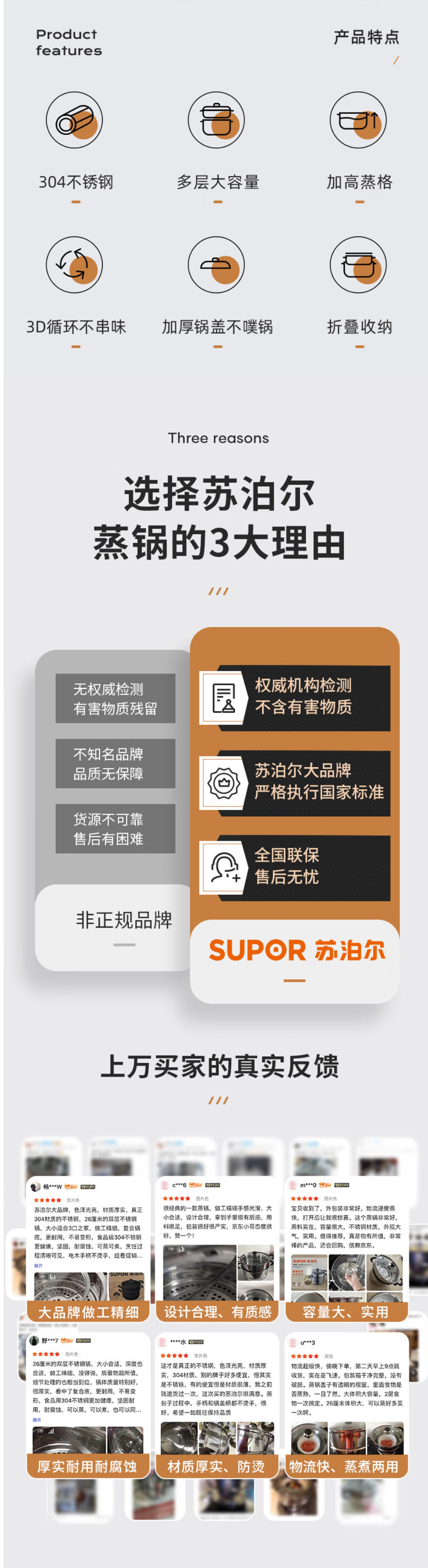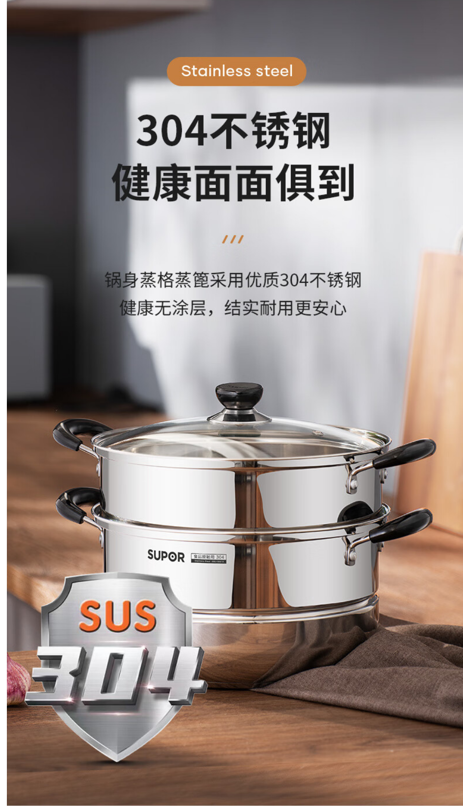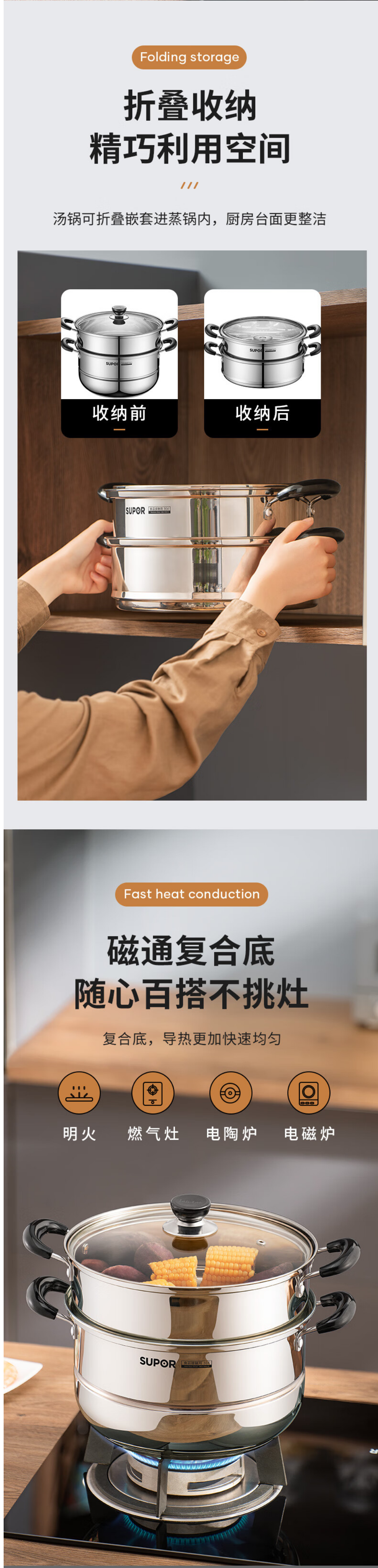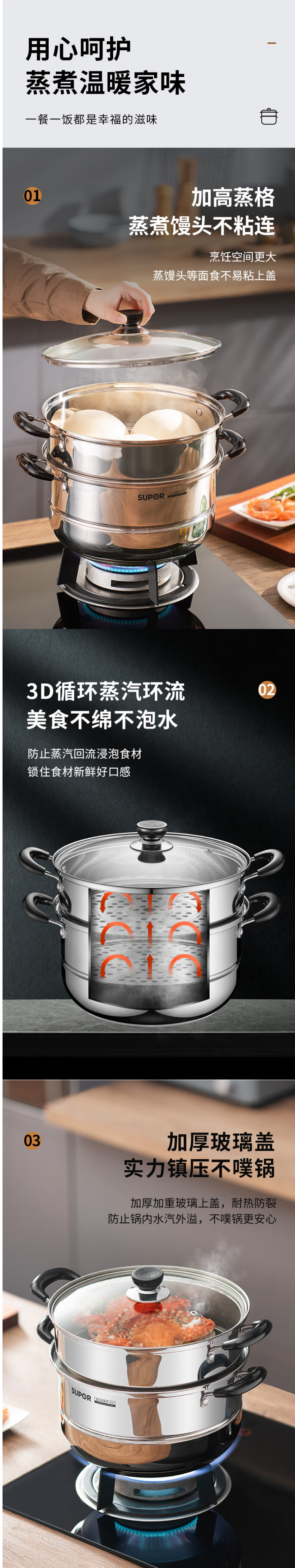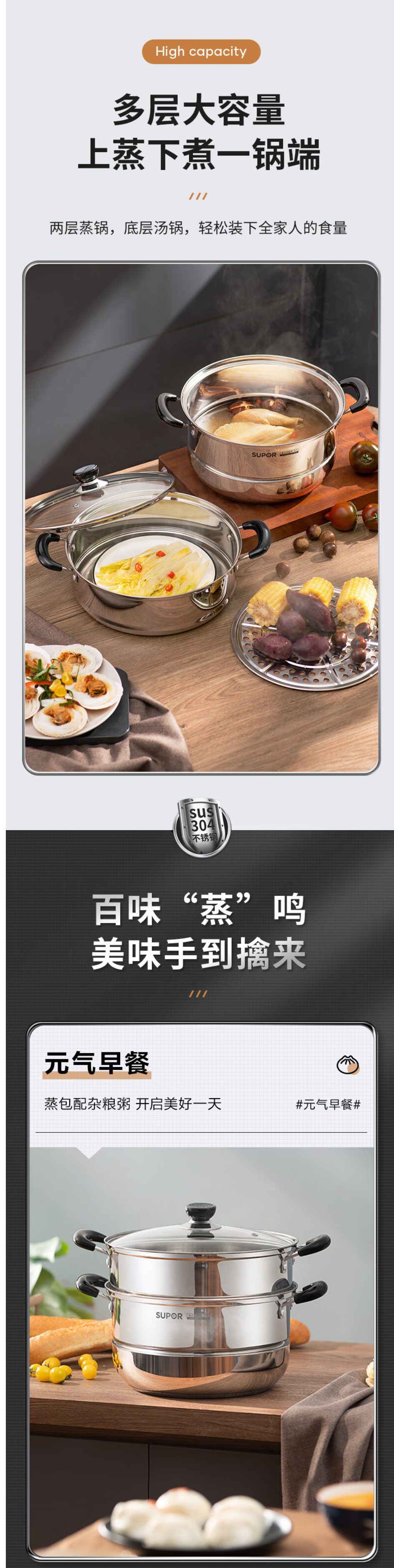 苏泊尔SUPOR 蒸锅304不锈钢26cm蒸笼双层蒸煮汤锅复底SZ26B46 京东万商(仅限保定地区发货)