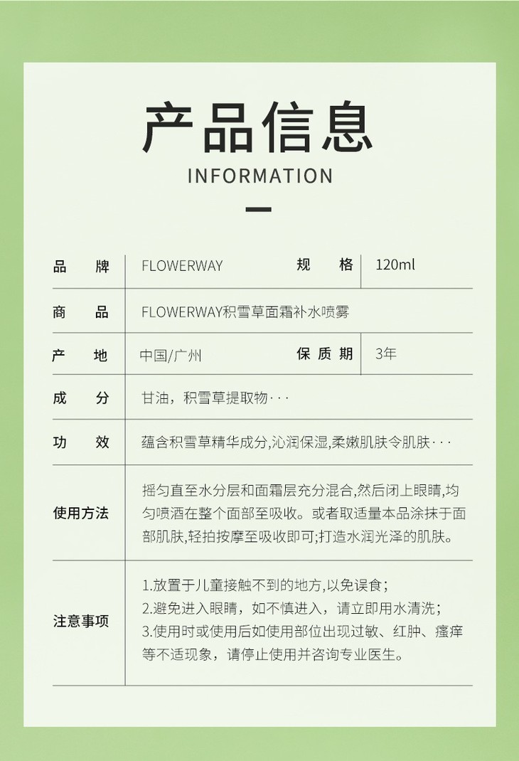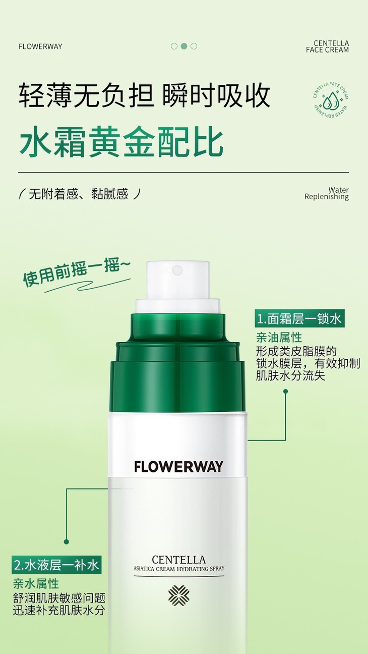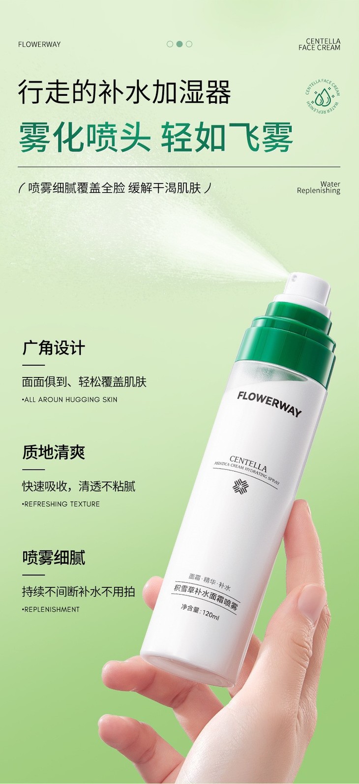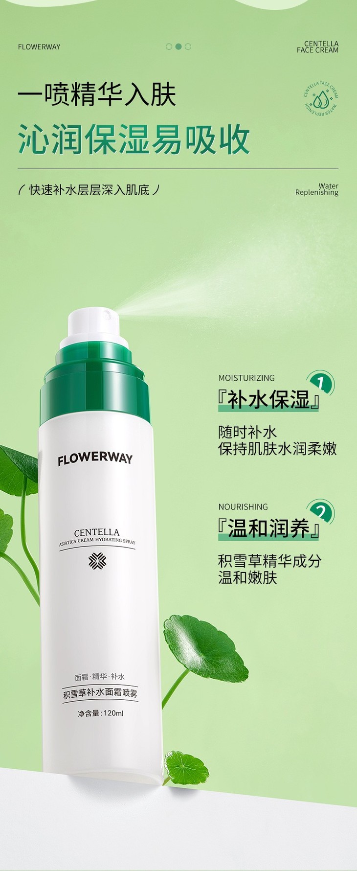 【买1送1 积雪草面霜补水喷雾】保湿控油温和不刺激爽肤水120ml