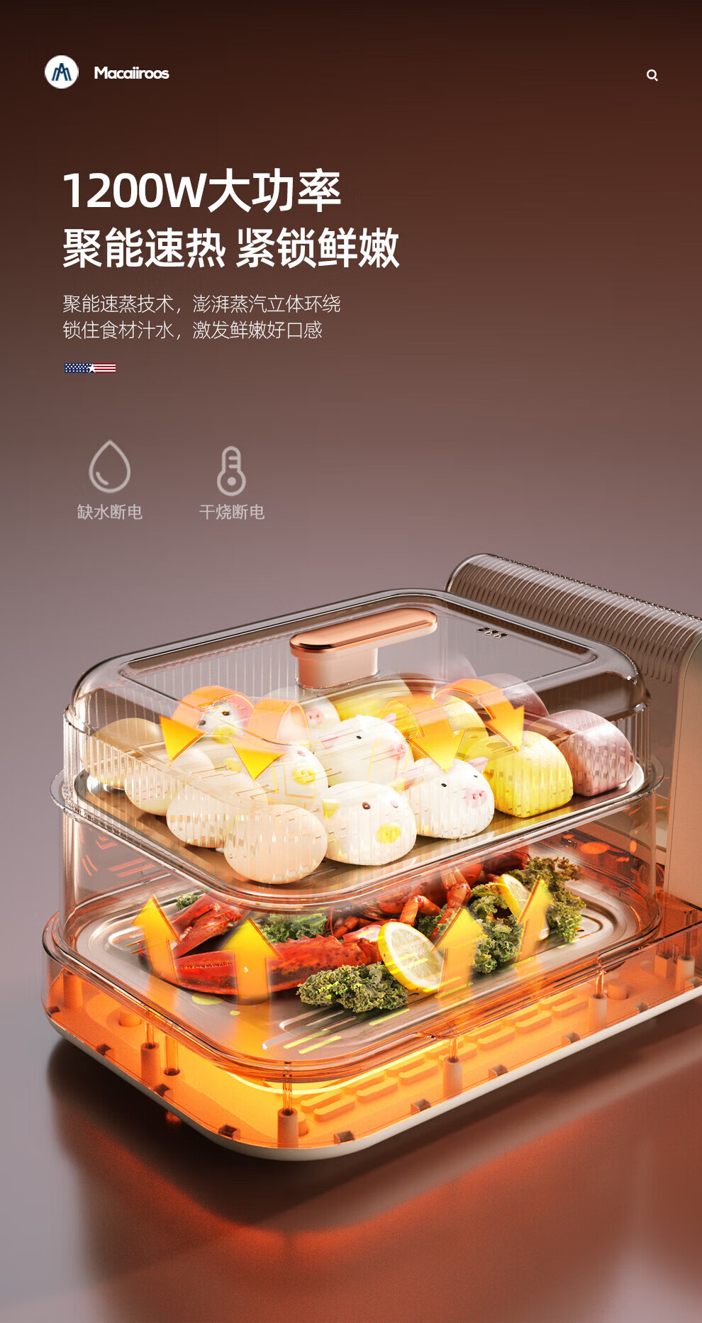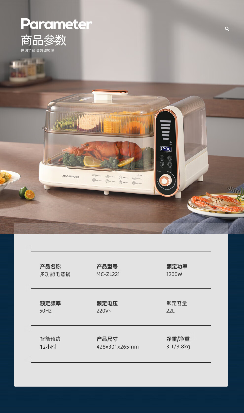 【小家电】迈卡罗MC-ZL221电蒸锅 电煮锅 电火锅多功能家用电锅蒸包子锅电热锅煮蛋器HF