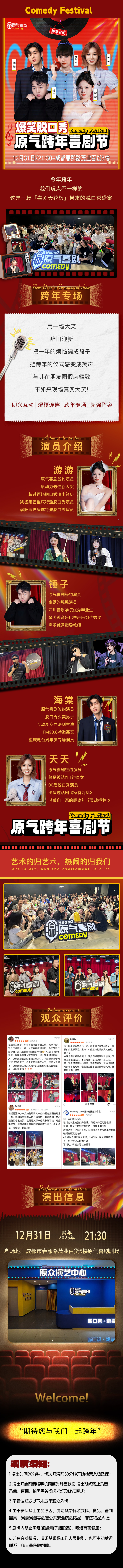 - 提供脱口秀、新喜剧、即兴喜剧、相声、沉浸式戏剧、儿童剧演出和新趣活动体验。