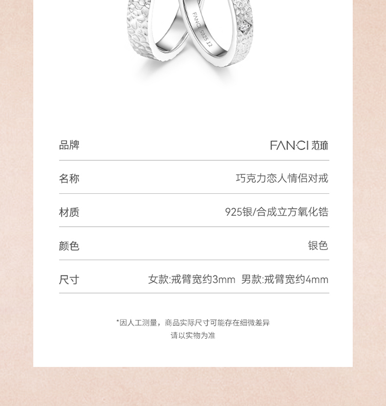 Fanci范琦【甜心巧克力系列】巧克力恋人情侣对戒指 送女友生日礼物送男友