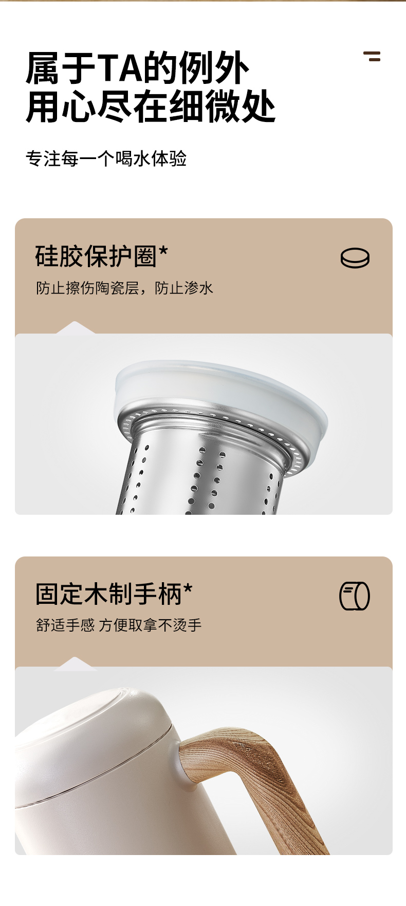 保温杯女生316l不锈钢茶水分离泡茶杯子陶瓷涂层内胆