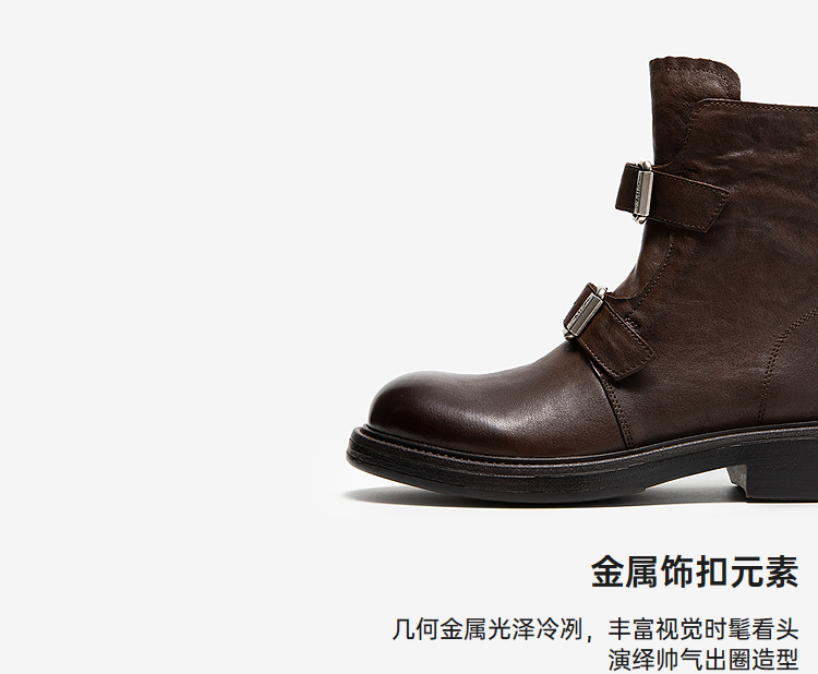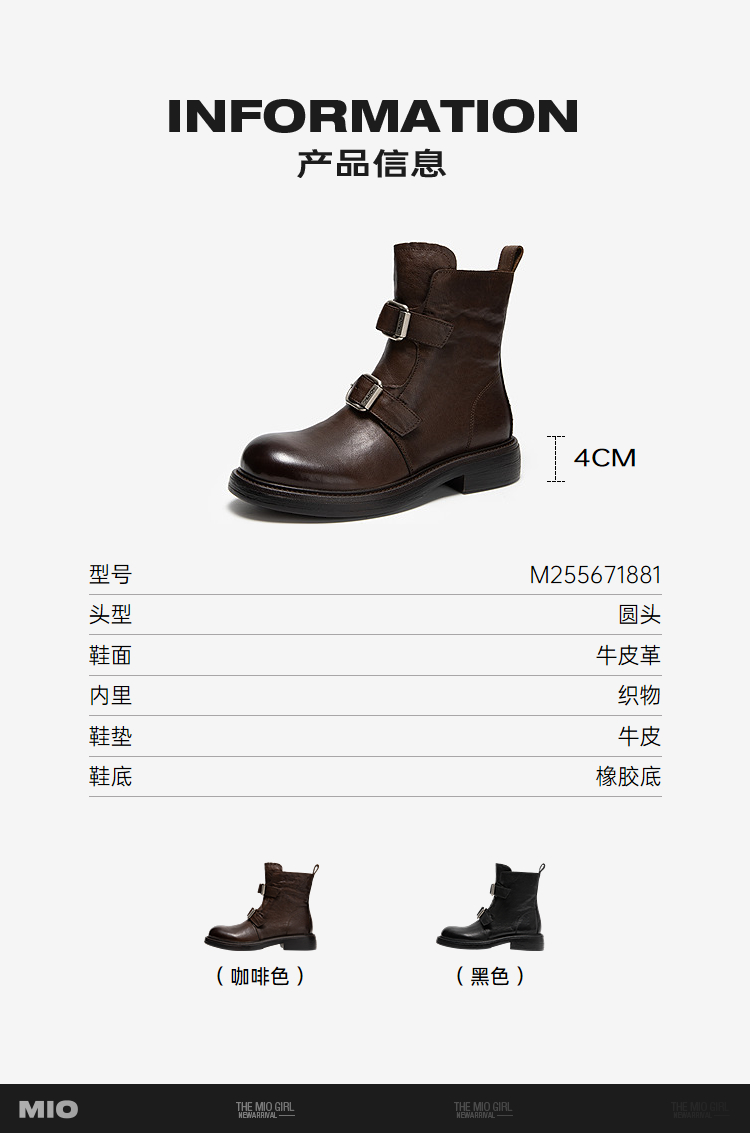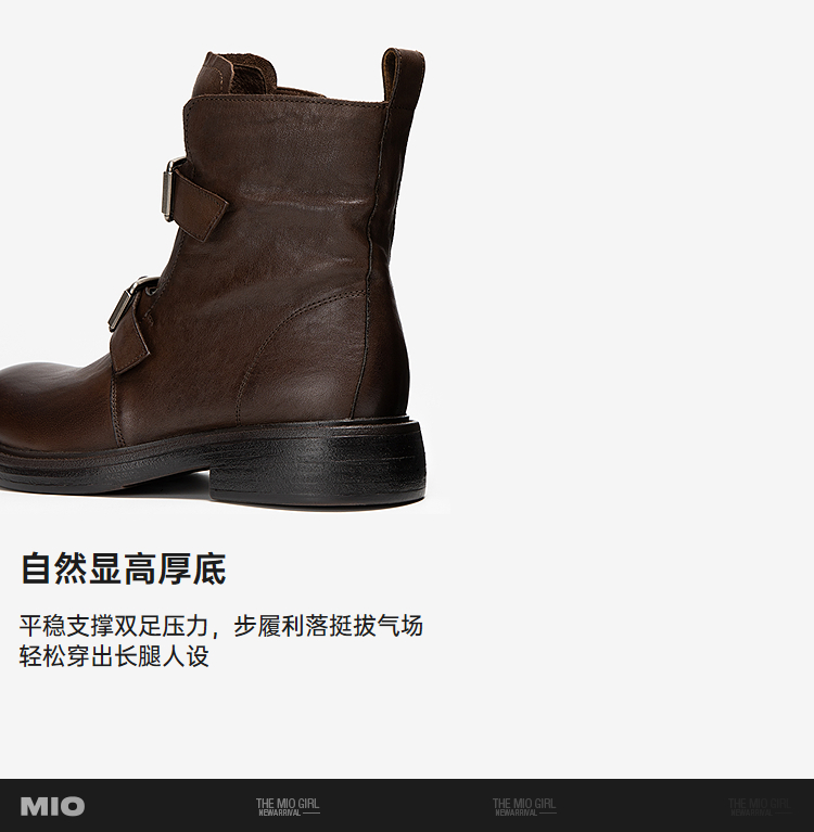 MIO米奥马丁靴中跟圆头复古切尔西靴厚底简约女靴M255671881