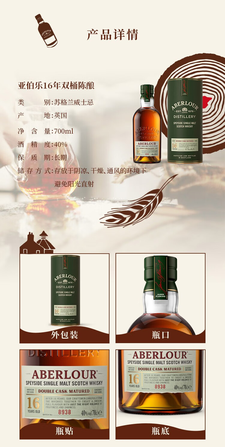 亚伯乐高地单一麦芽威士忌16年双桶陈酿700ml*1