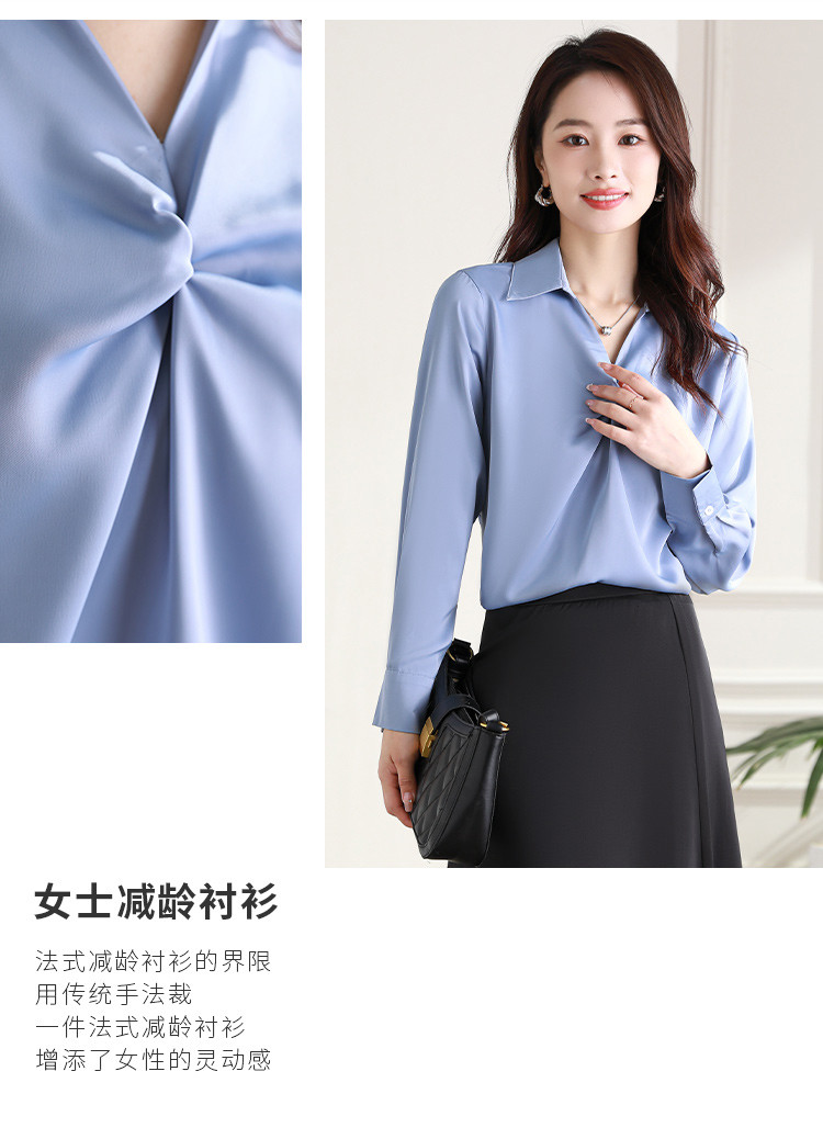 【质感V领】罗蒙女士长袖衬衫优雅简约职场减龄百搭舒适长袖衬衫女