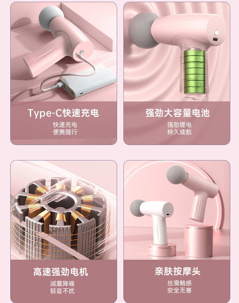 捷博 高颜值mini筋膜枪 3档变速肌肉放松按摩器 轻巧便携持久续航
