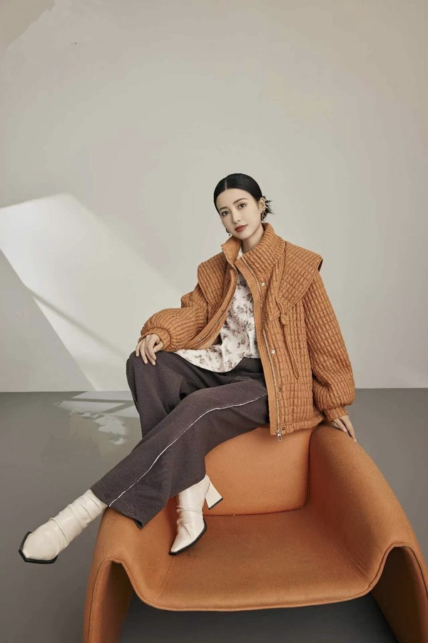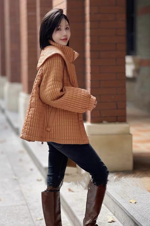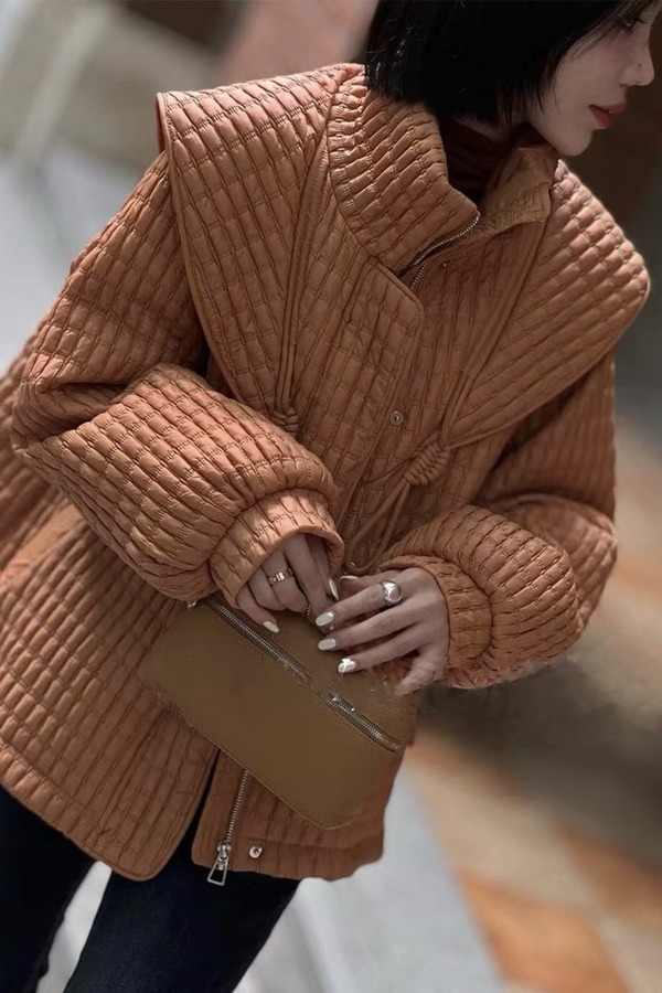 ANSUABEL 橘棕色华夫格抽绳羽绒外套 19356