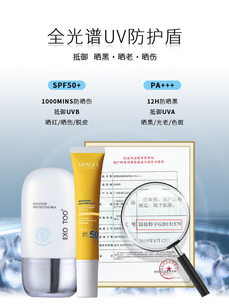 「9.9元包邮!撑起隐形防护伞」防晒霜50倍SPF50+防晒乳