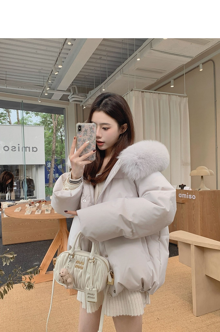 西遇狐狸大毛领连帽棉服女冬季新款韩系宽松加厚保暖外套SS051954
