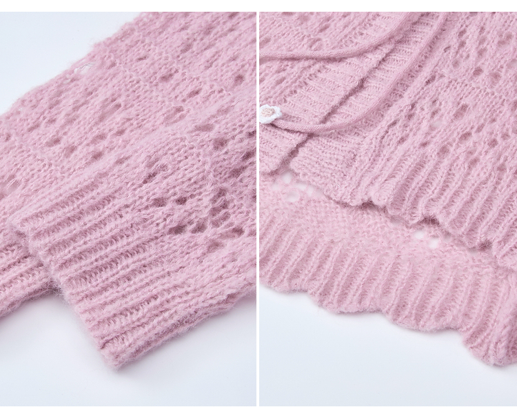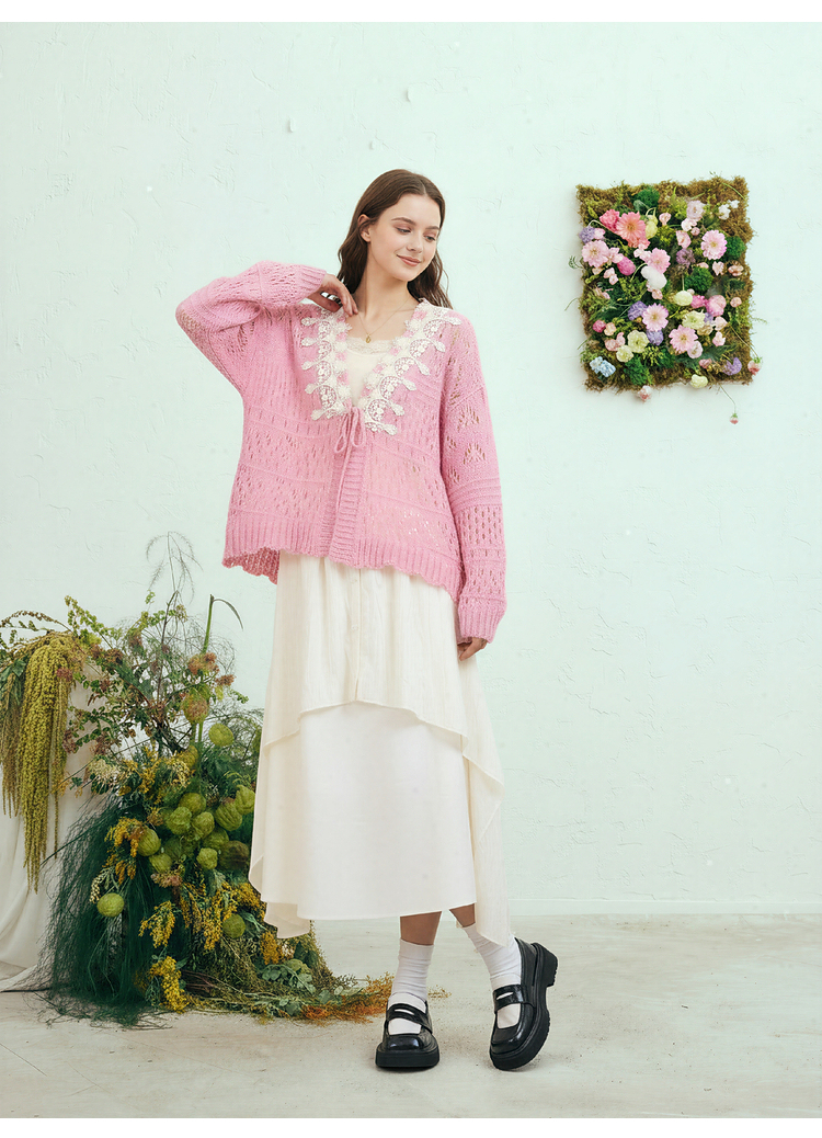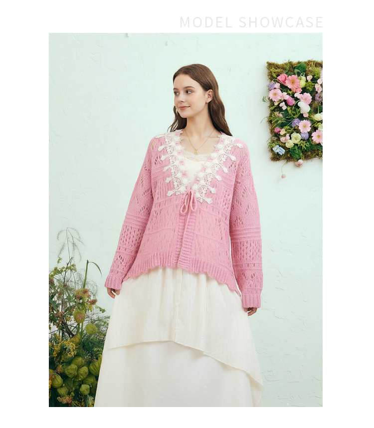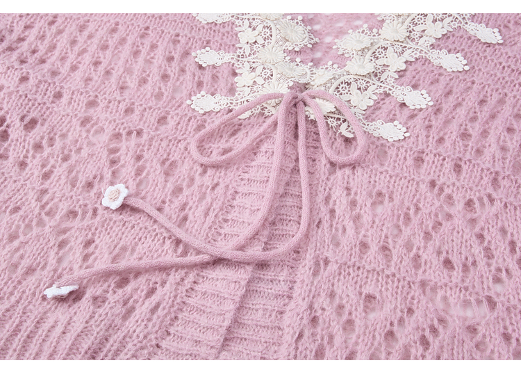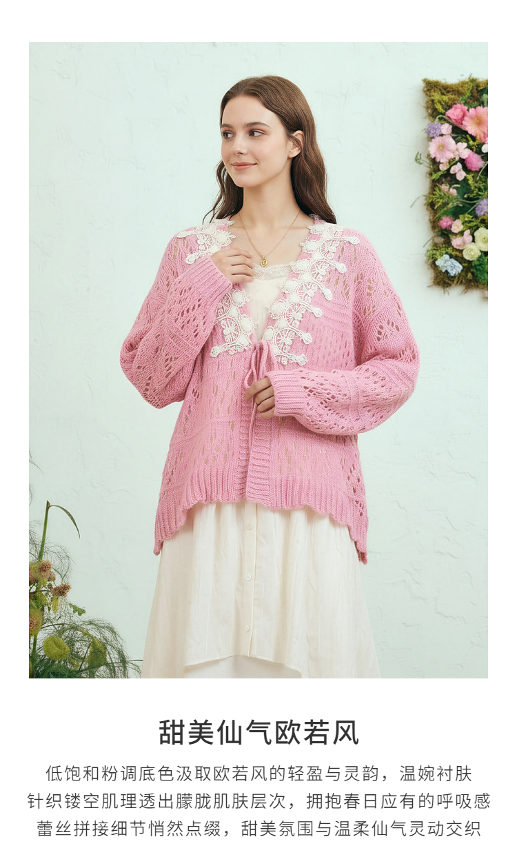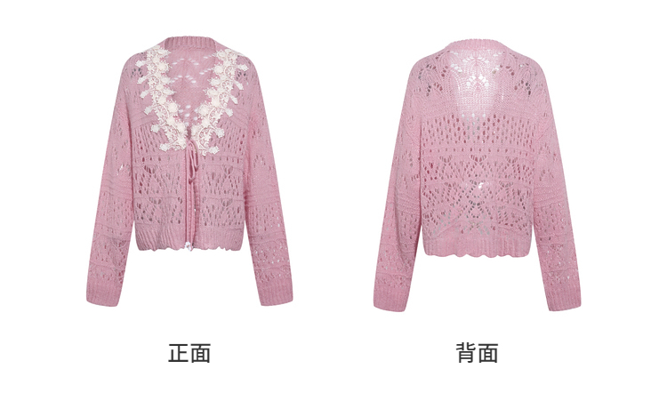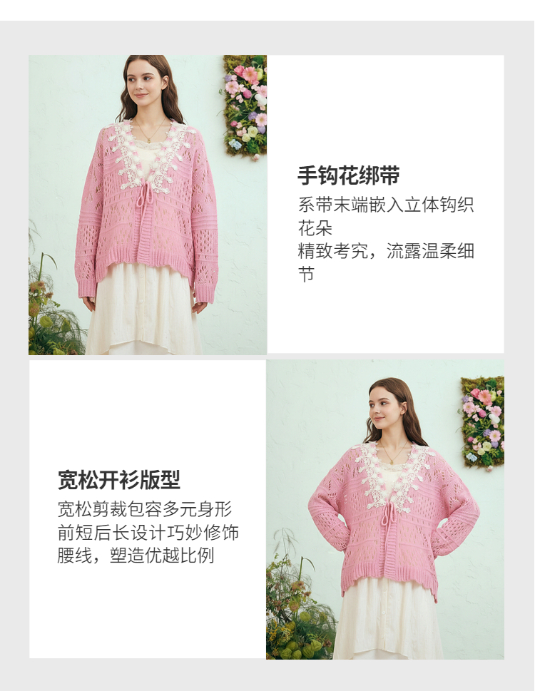 两三事眷恋惯性2026春新款甜美镂空绑带针织开衫女
