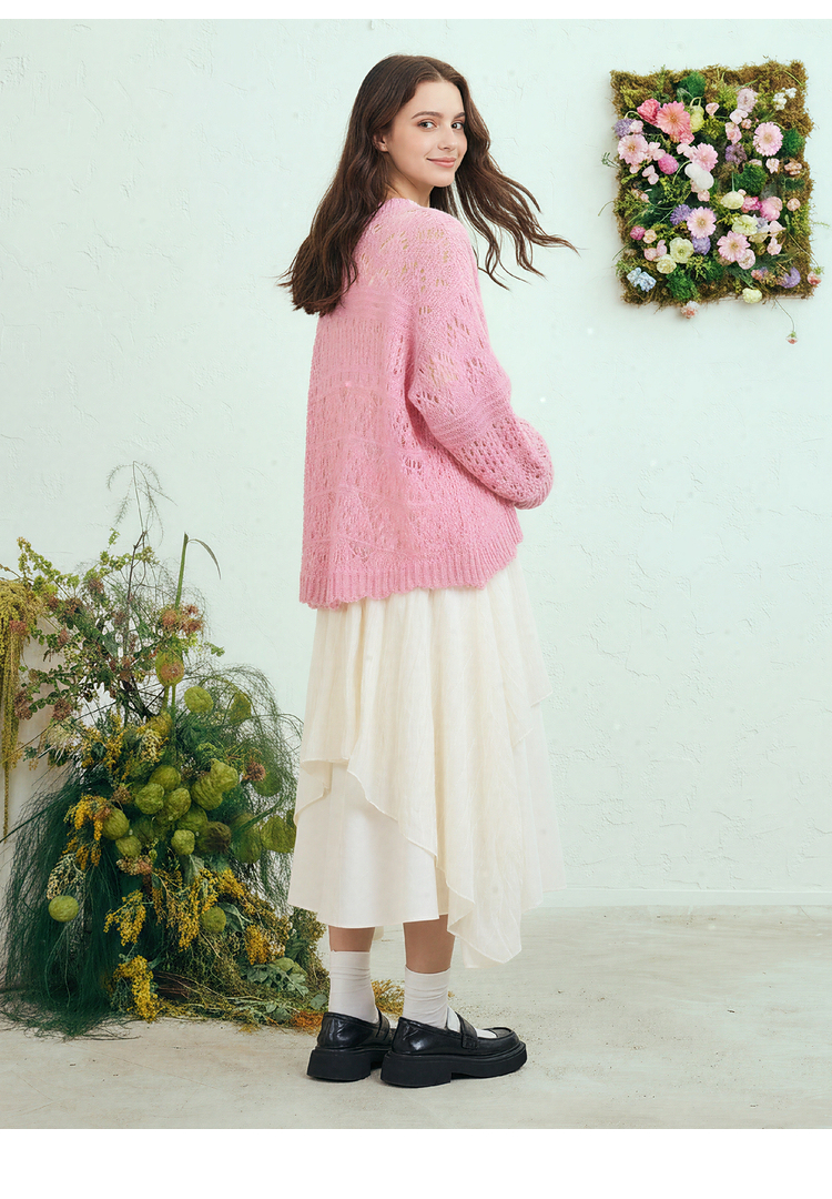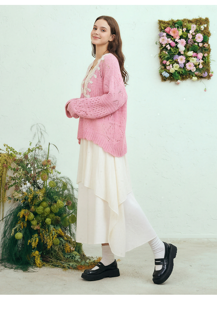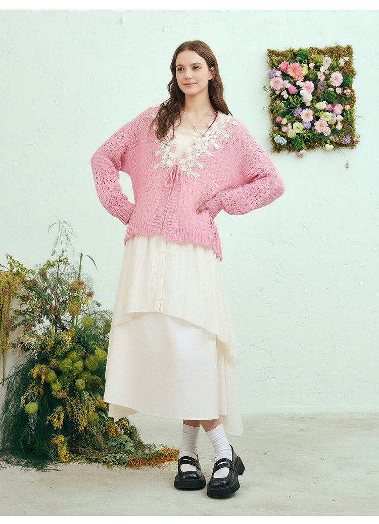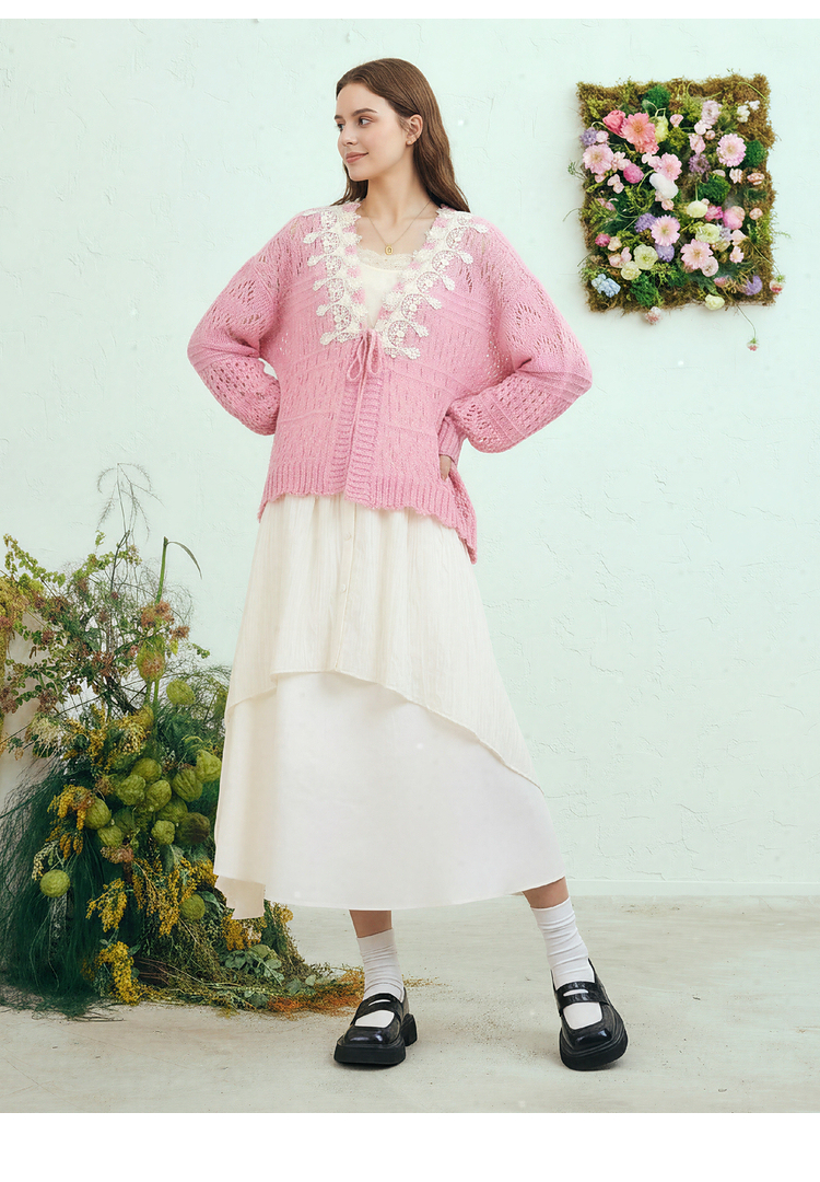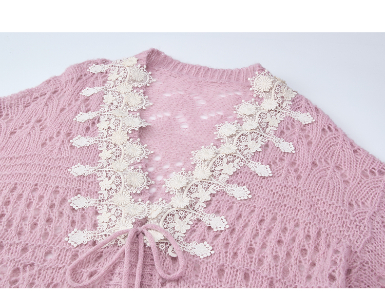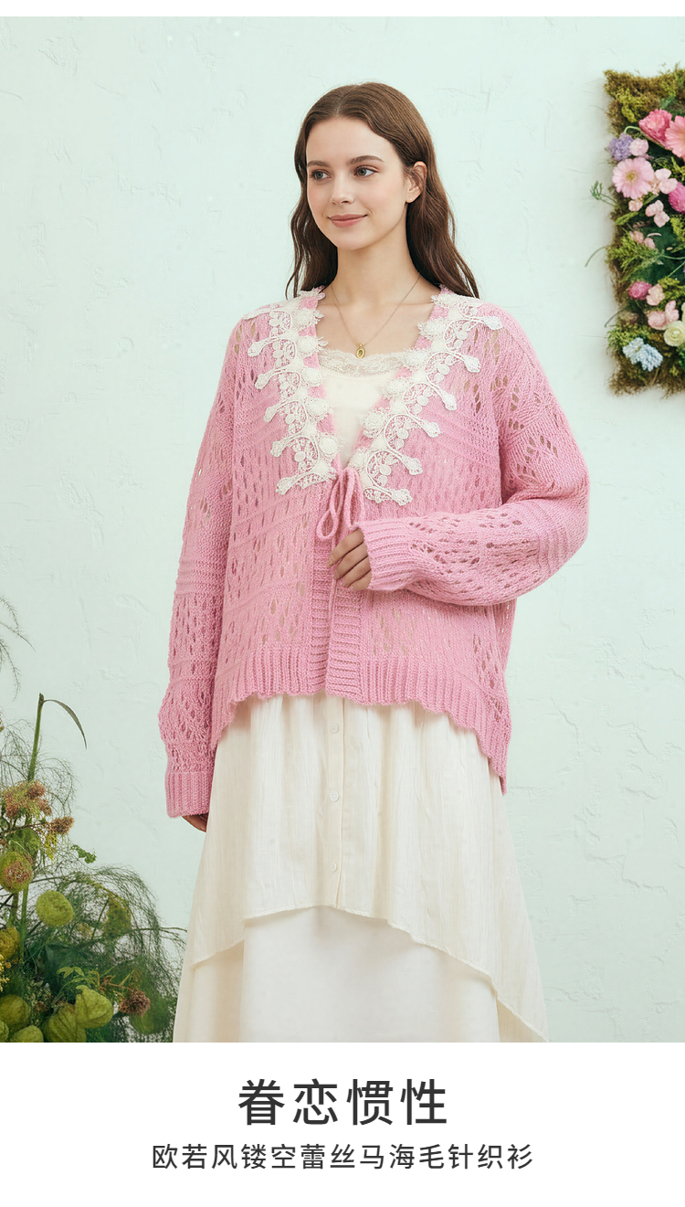 两三事眷恋惯性2026春新款甜美镂空绑带针织开衫女