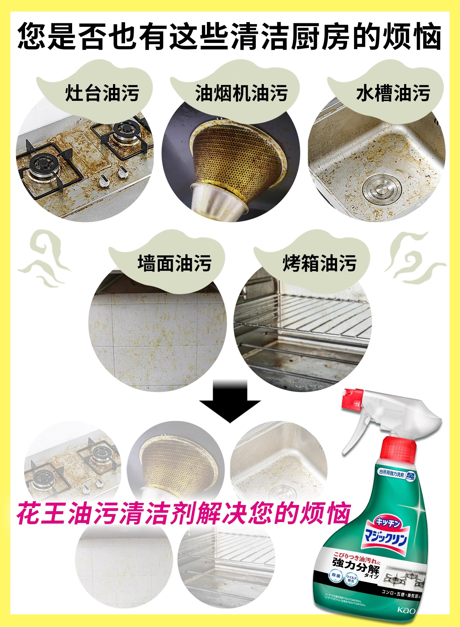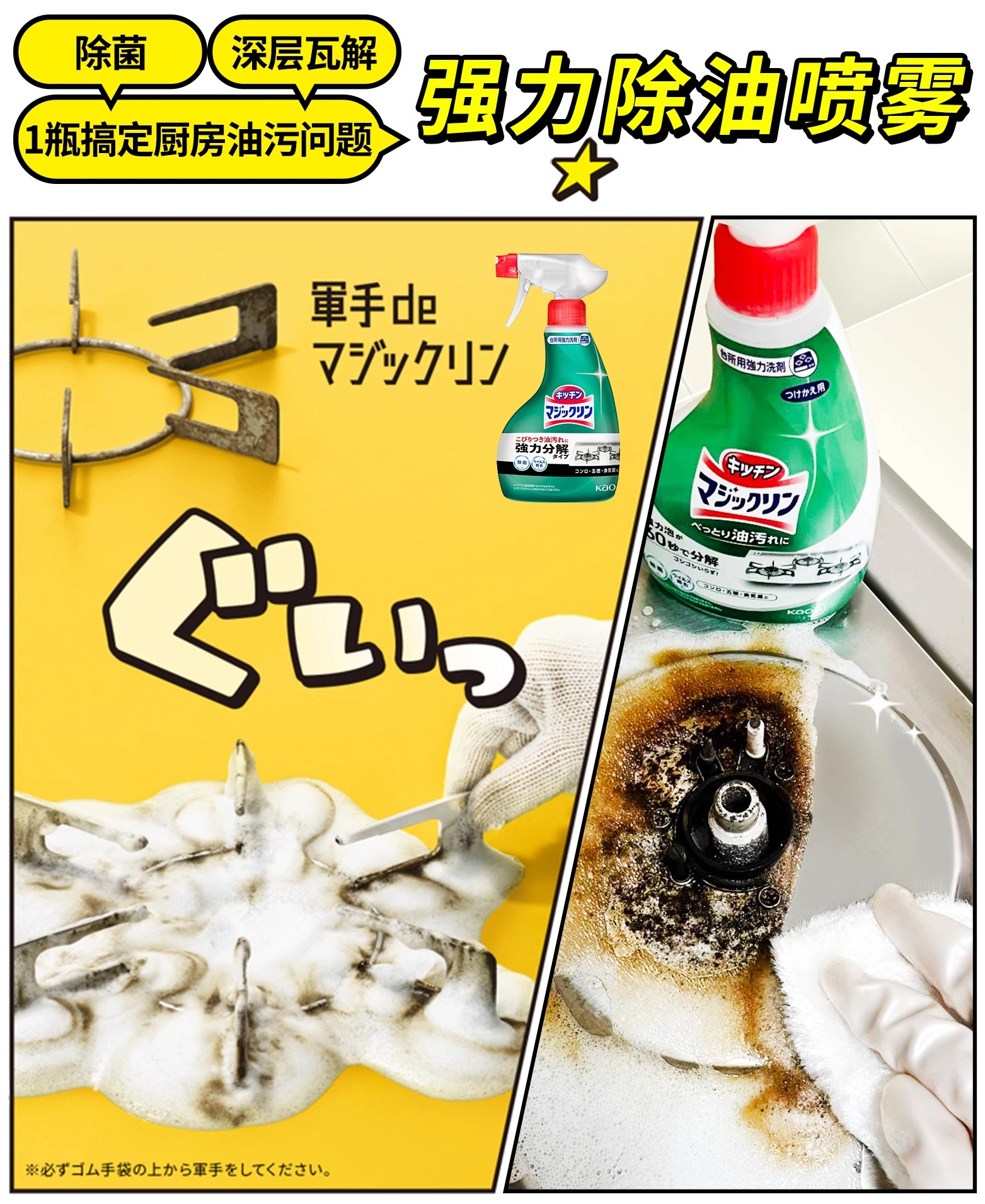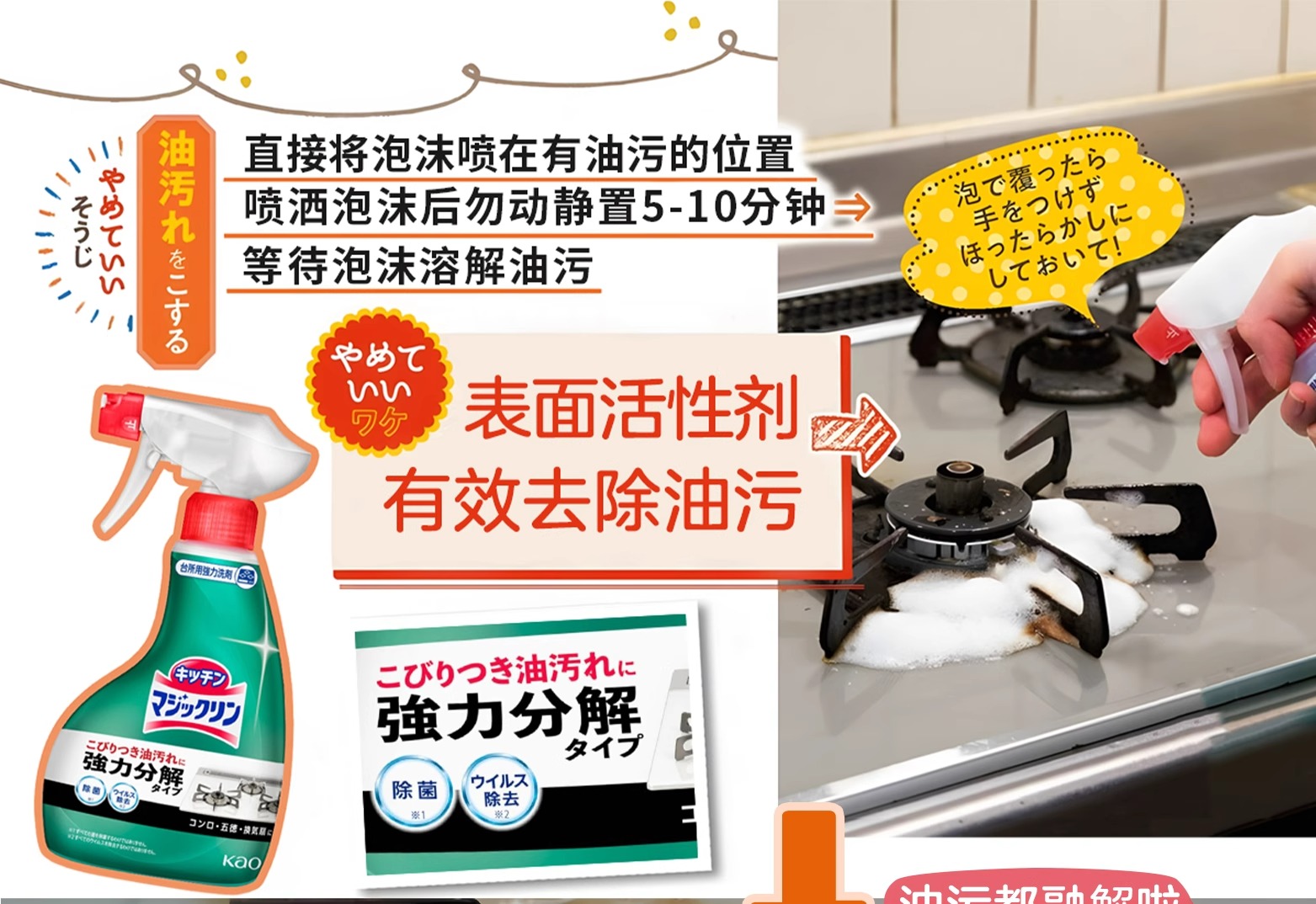 【强力去污】花王厨房油污清洁剂💥强力除垢✨油烟机灶台清洗神器