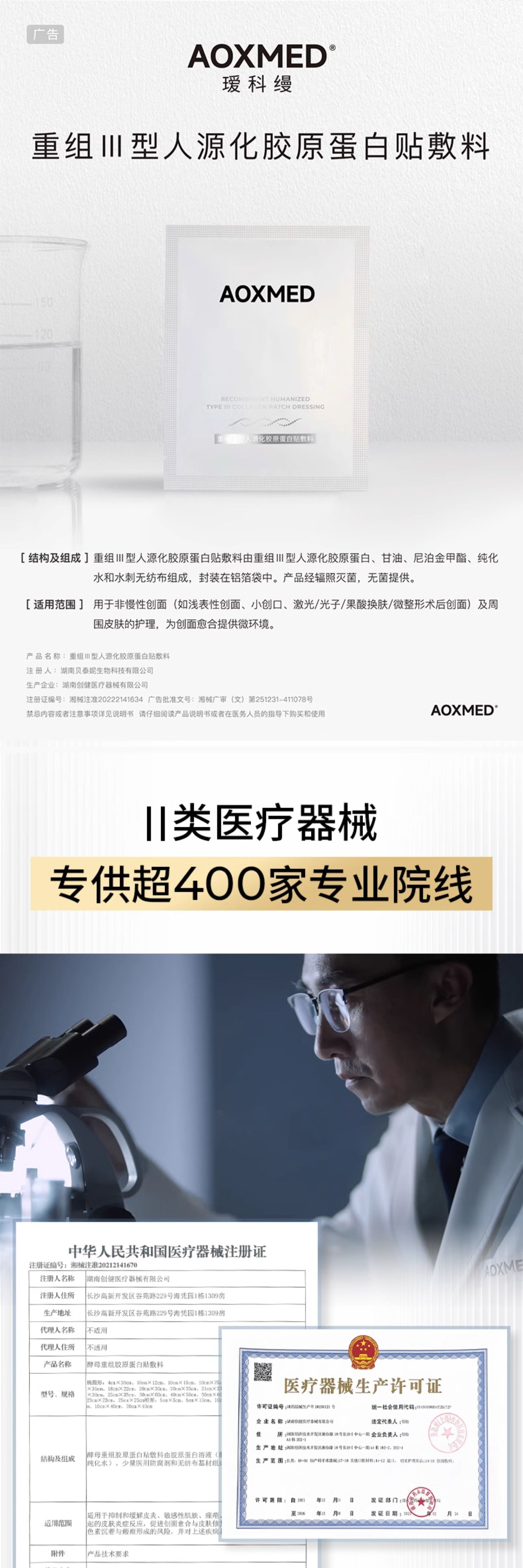 瑷科缦重组III型人源化胶原蛋白贴敷料面膜30ml*6片/盒