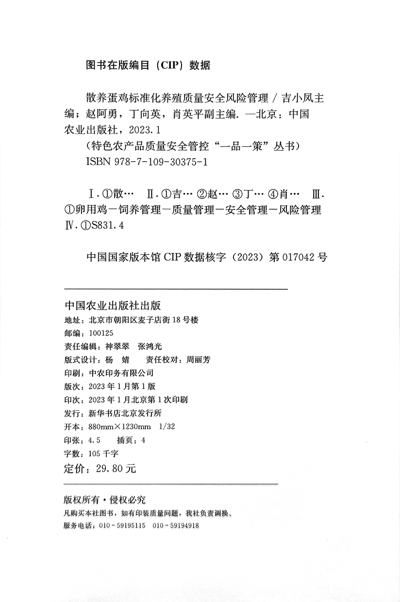 散养蛋鸡标准化养殖质量安全风险管理 吉小凤 特色农产品质量安全管控“一品一策”丛书 30375