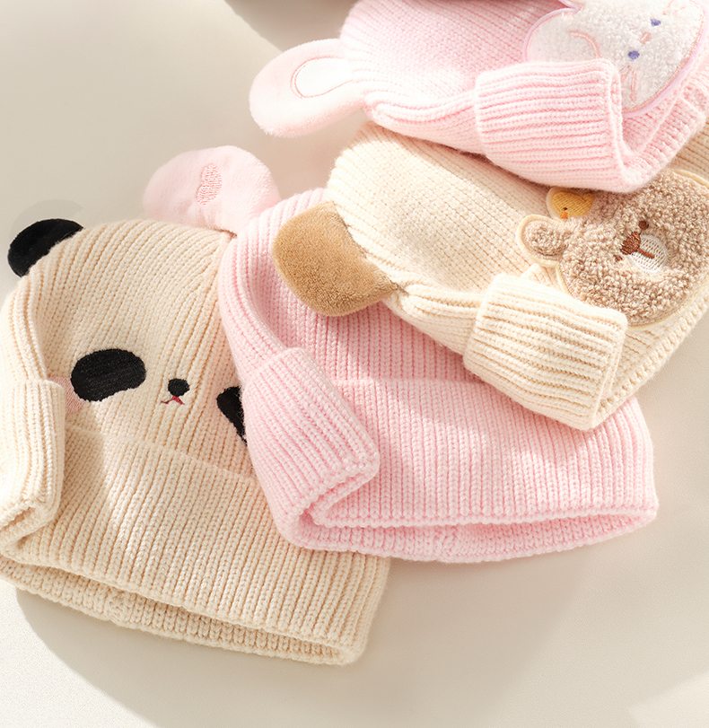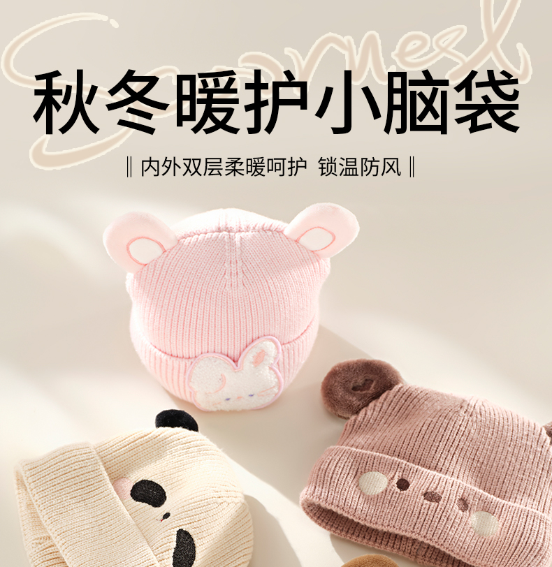科巢婴儿帽子秋冬新生幼儿男宝宝女小月龄纯棉外出保暖针织毛线帽