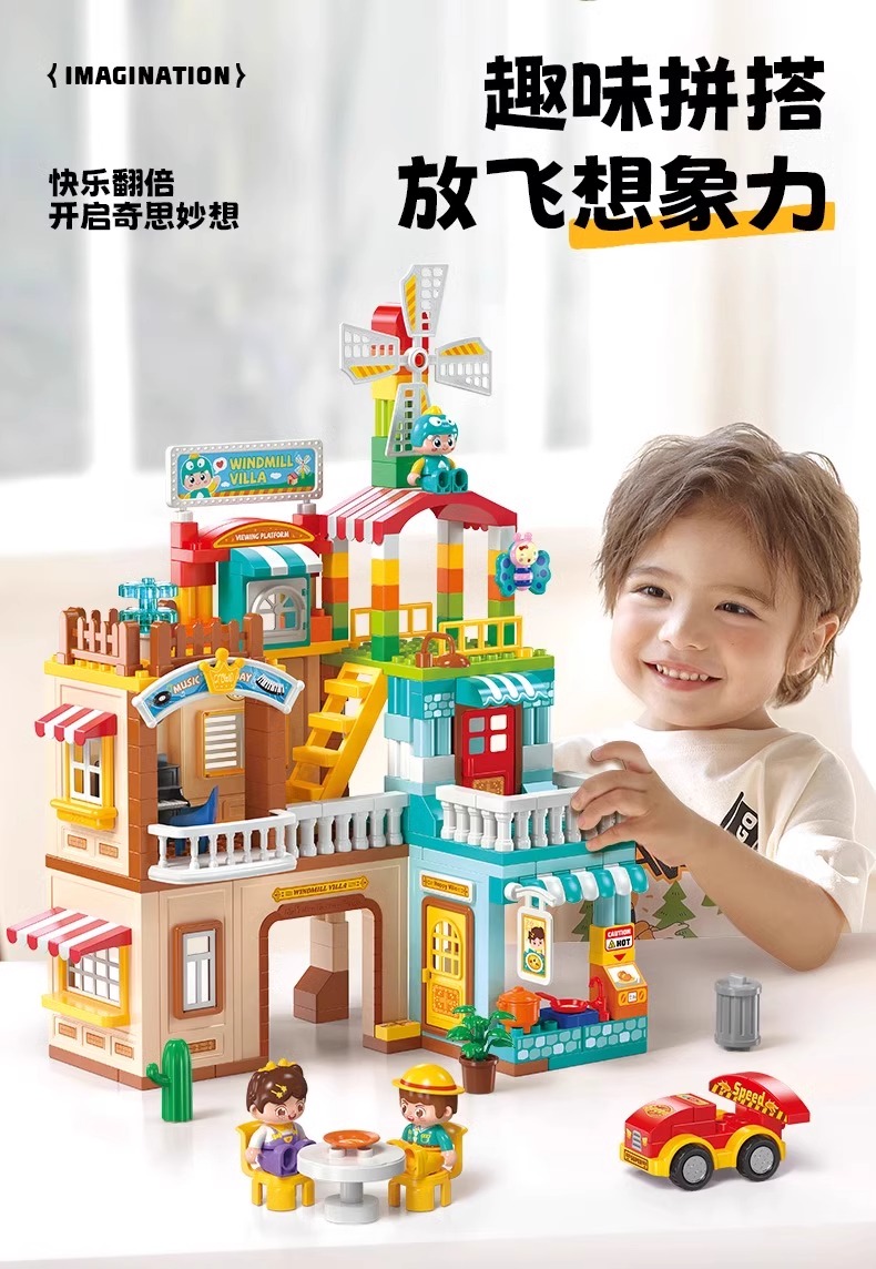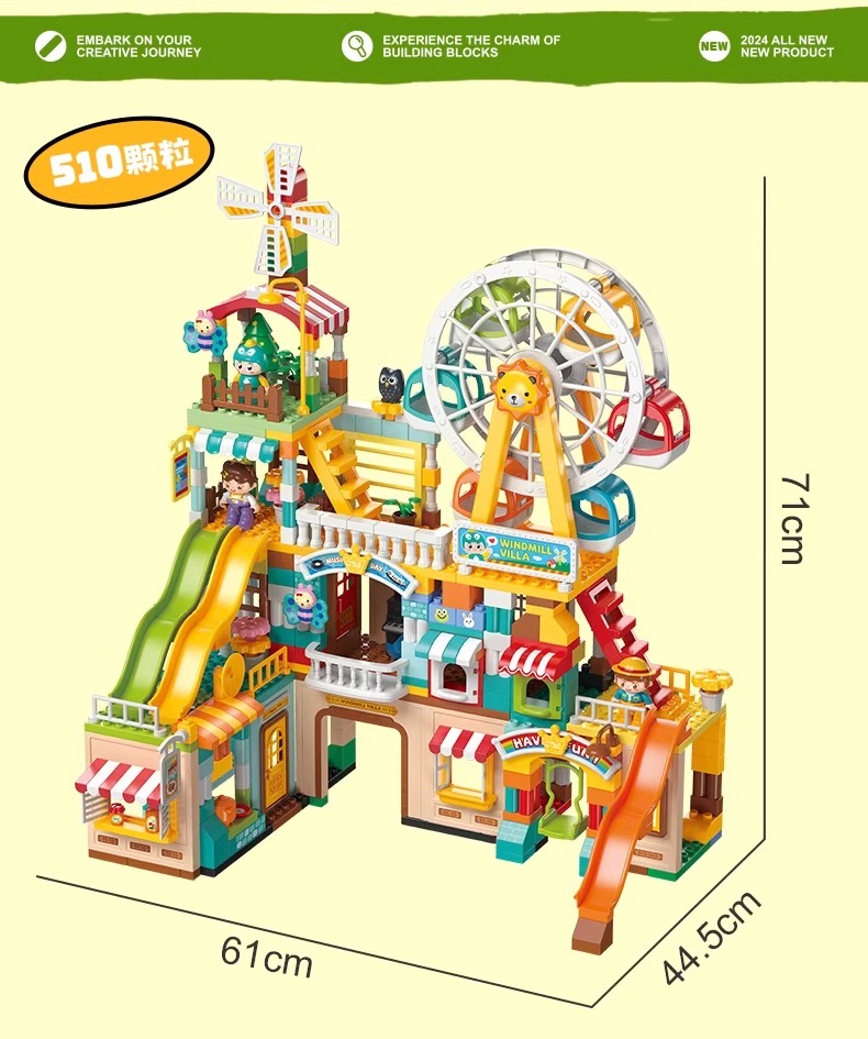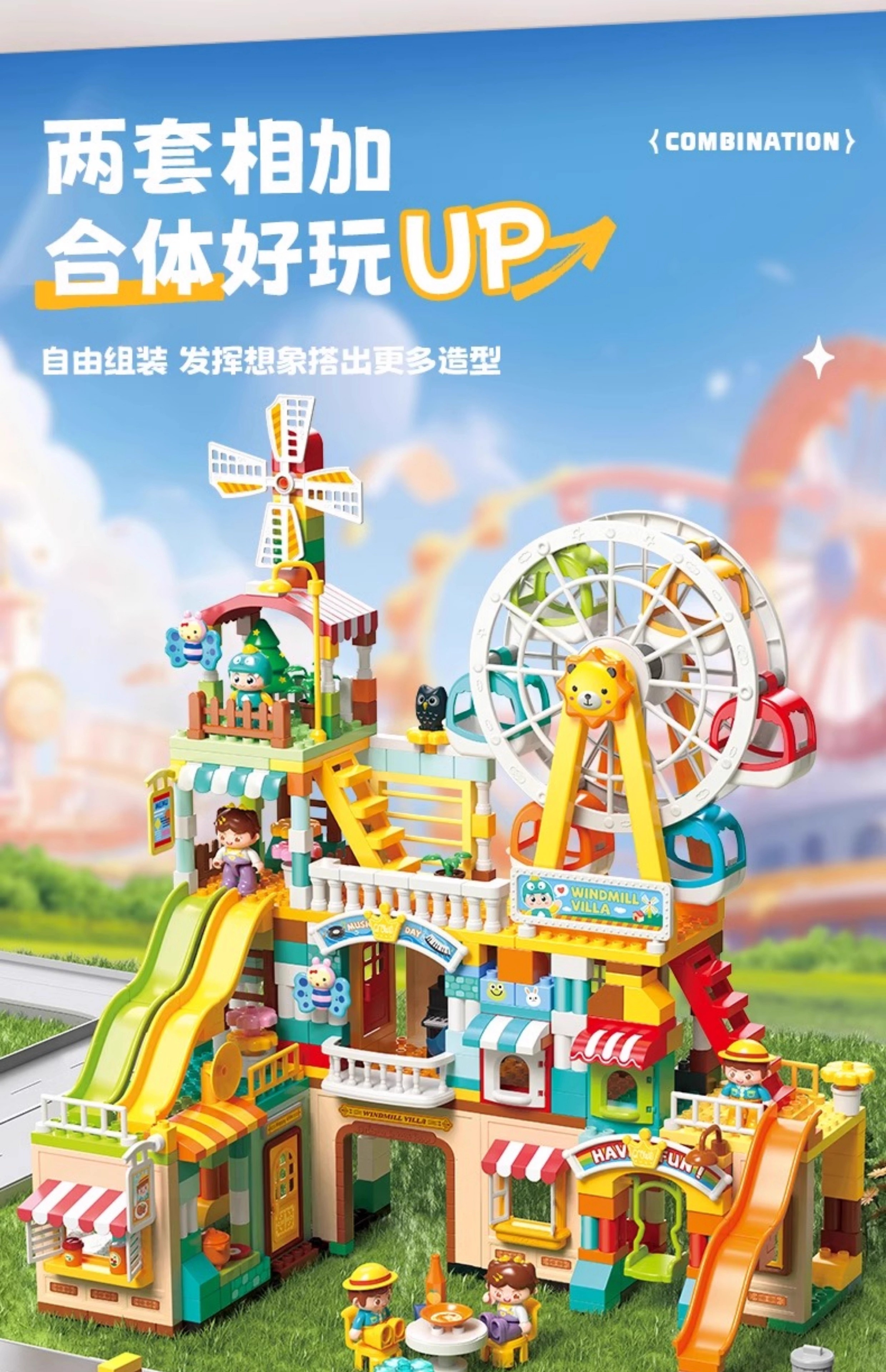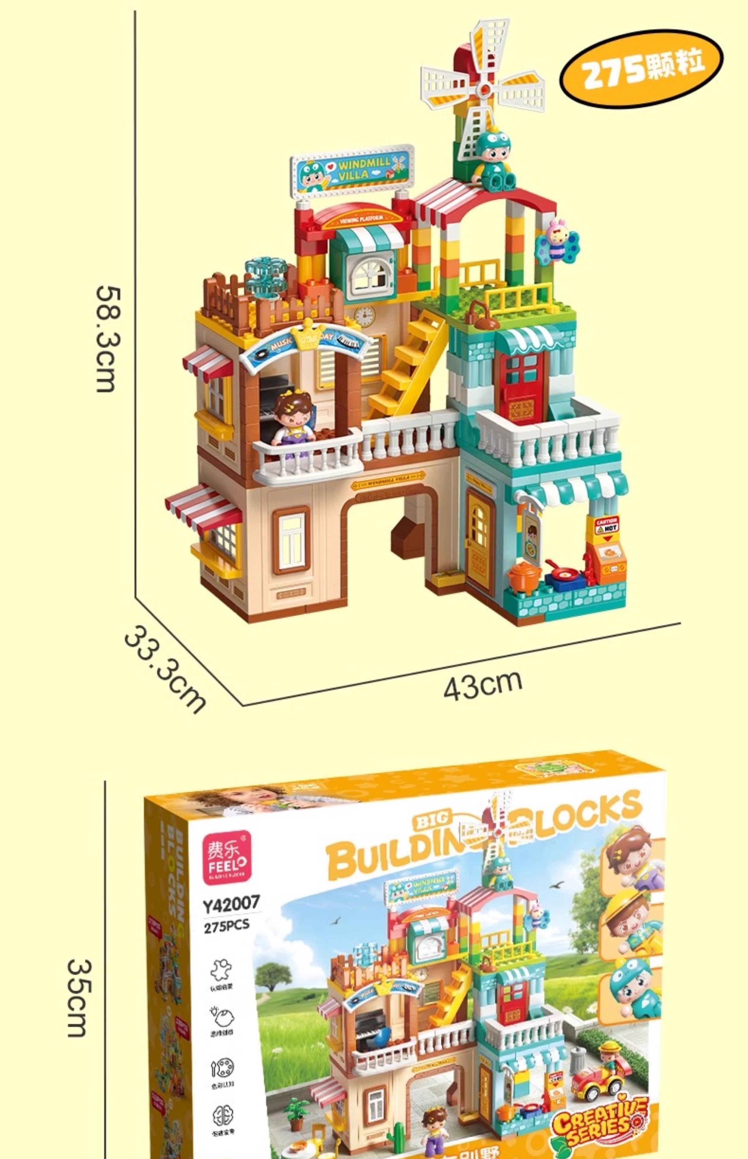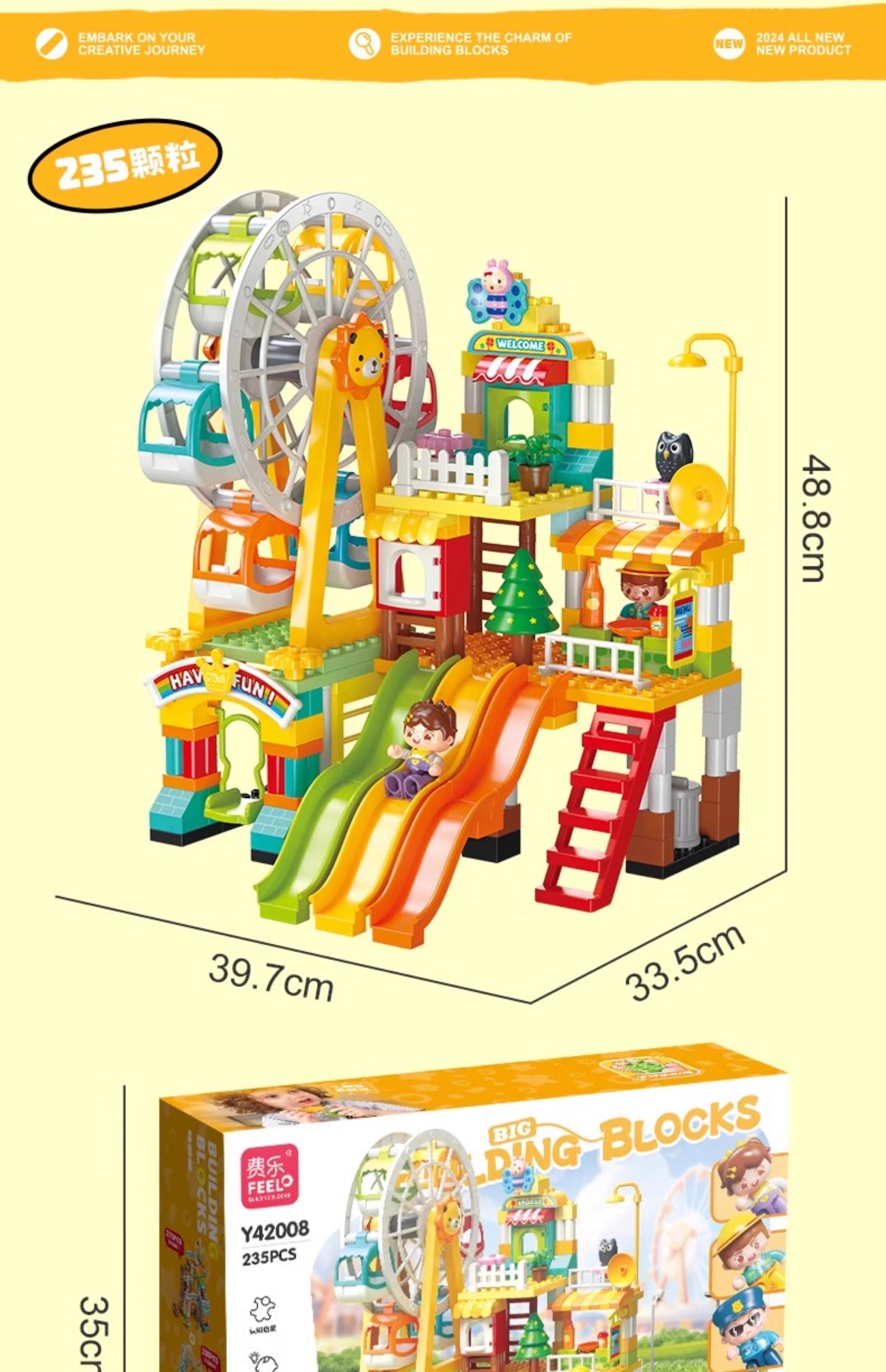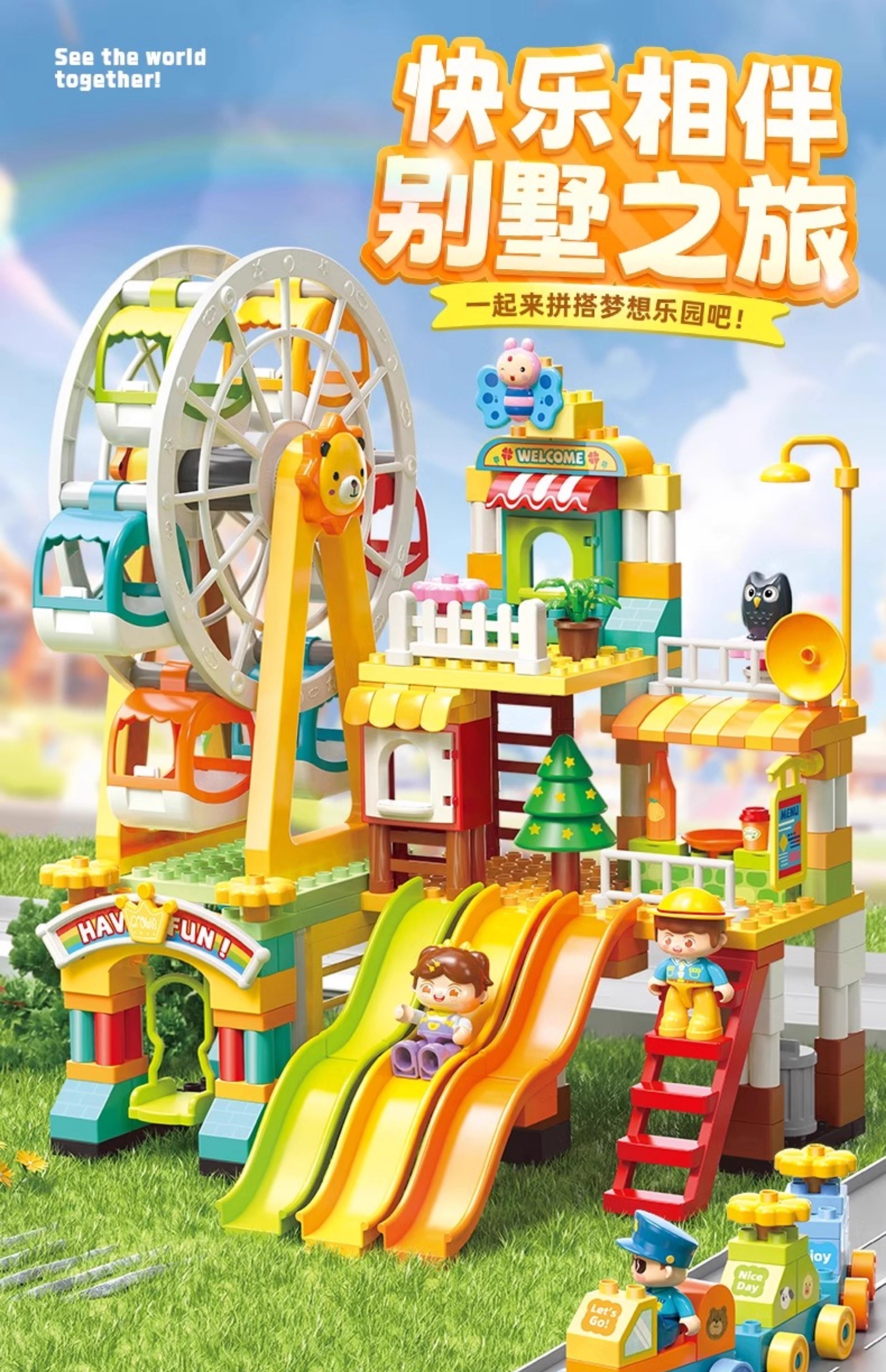 费乐大颗粒积木儿童宝宝益智拼装摩天轮风车滑梯游乐园别墅房玩具