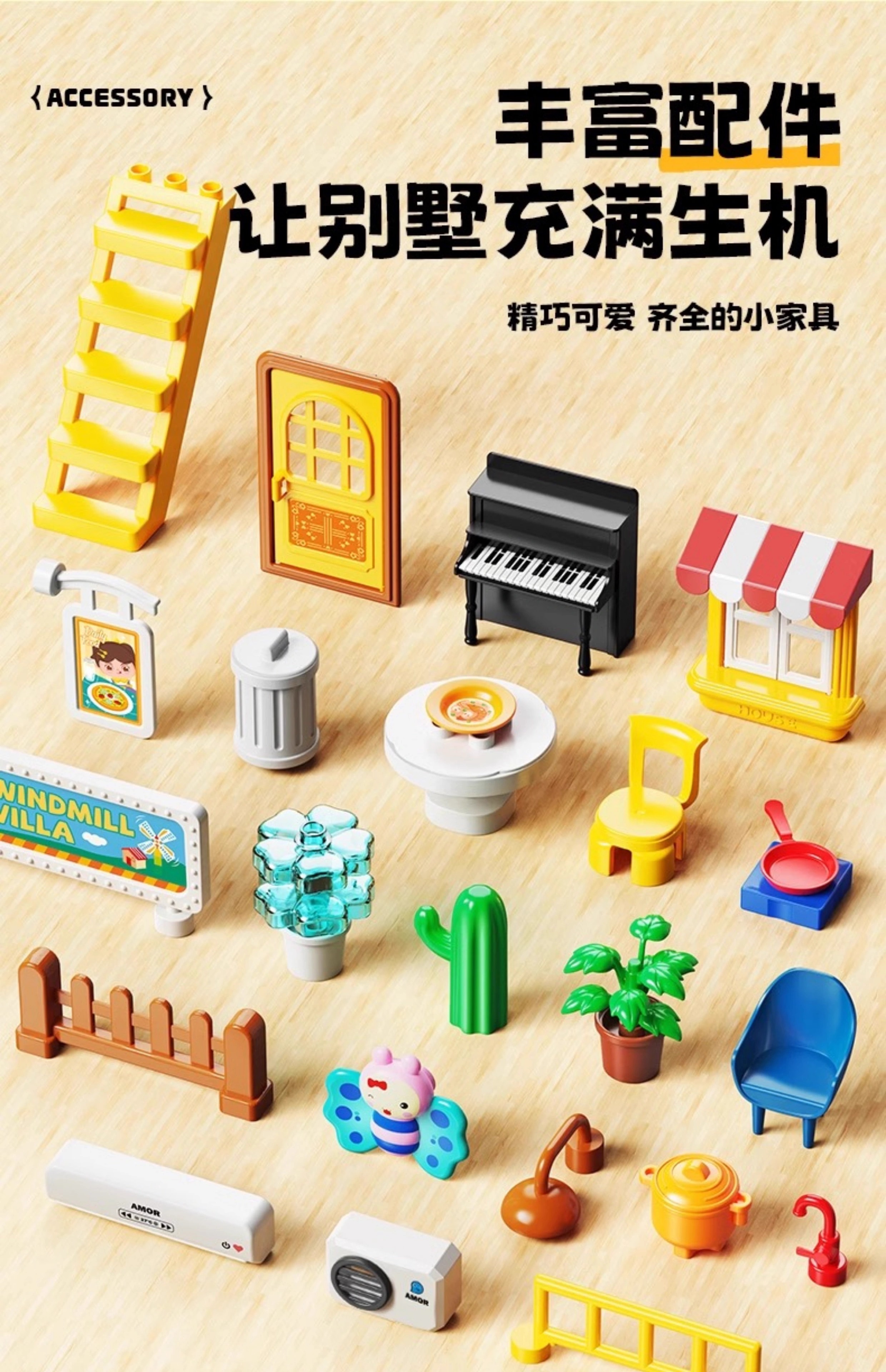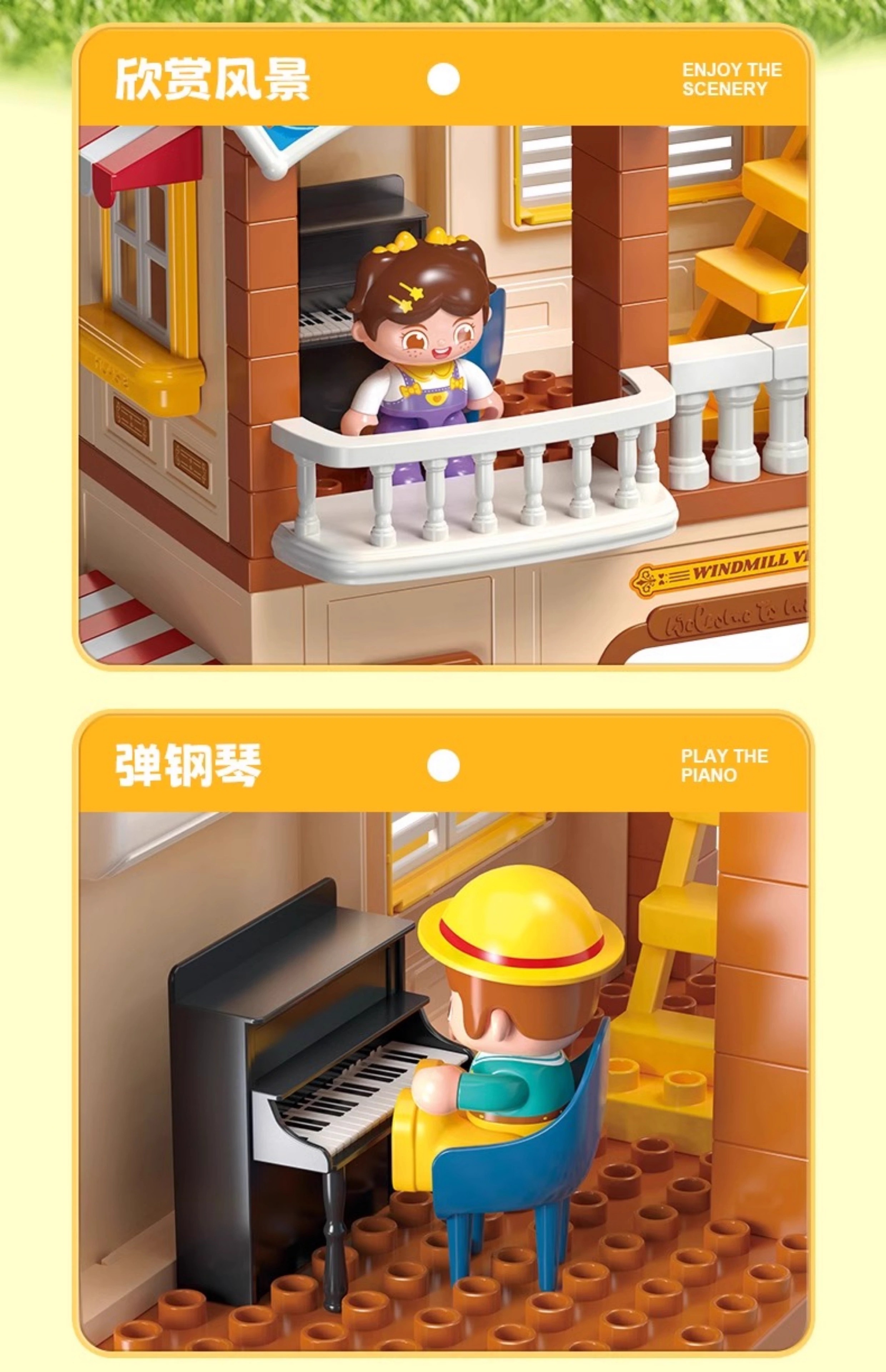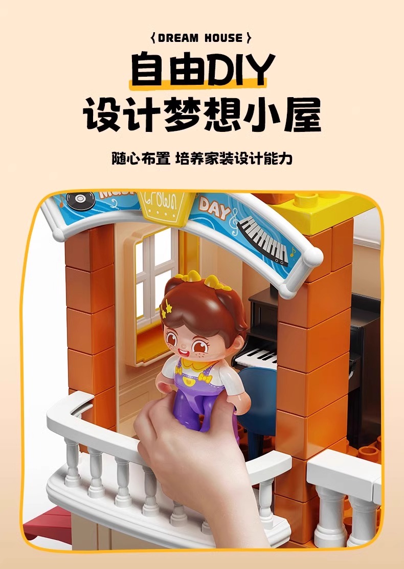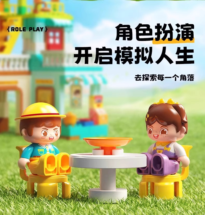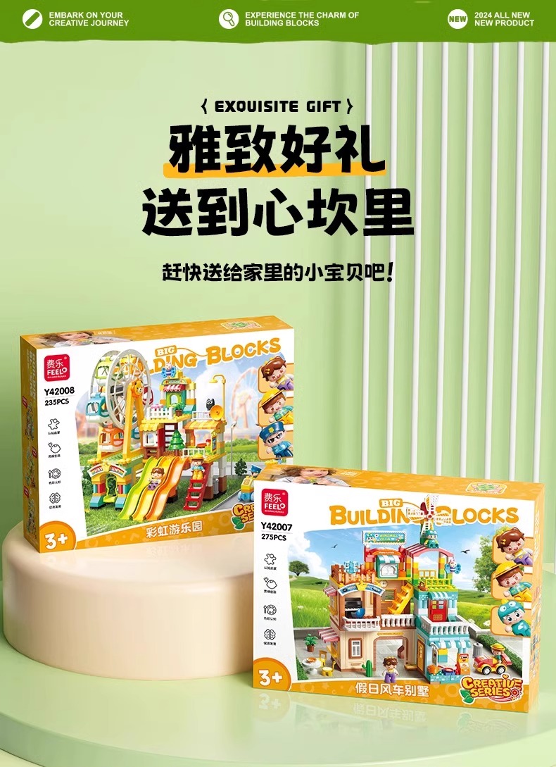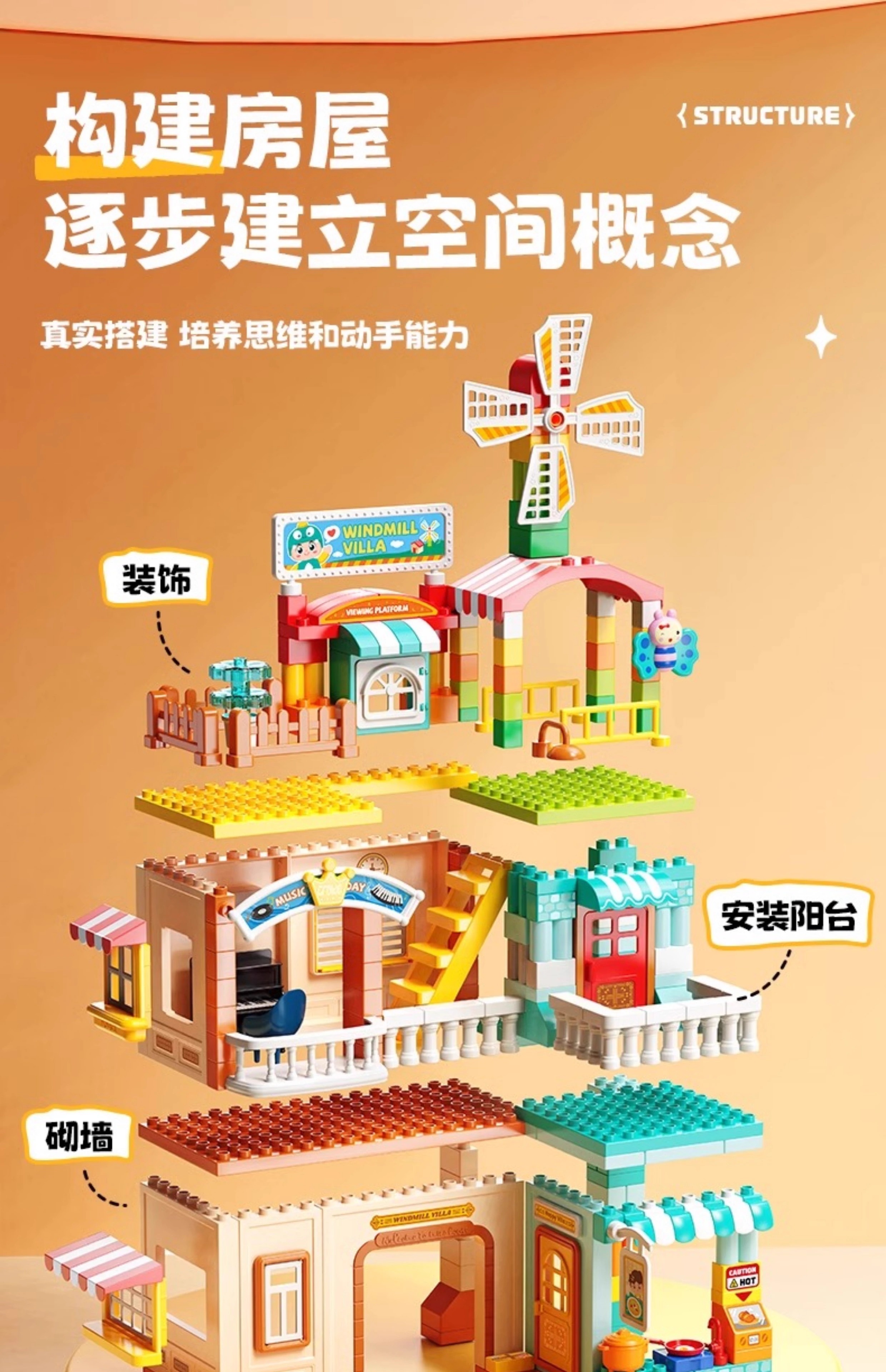 费乐大颗粒积木儿童宝宝益智拼装摩天轮风车滑梯游乐园别墅房玩具