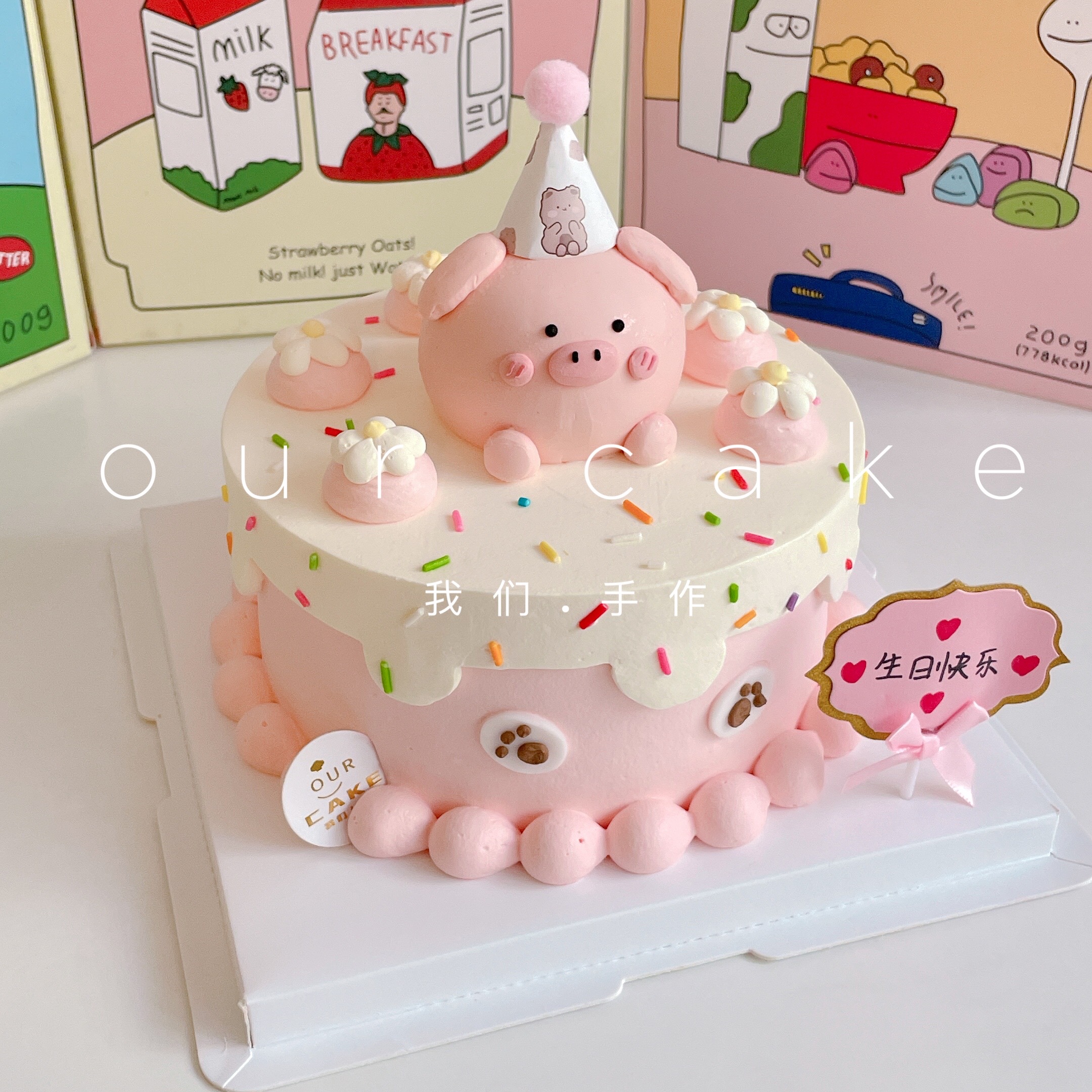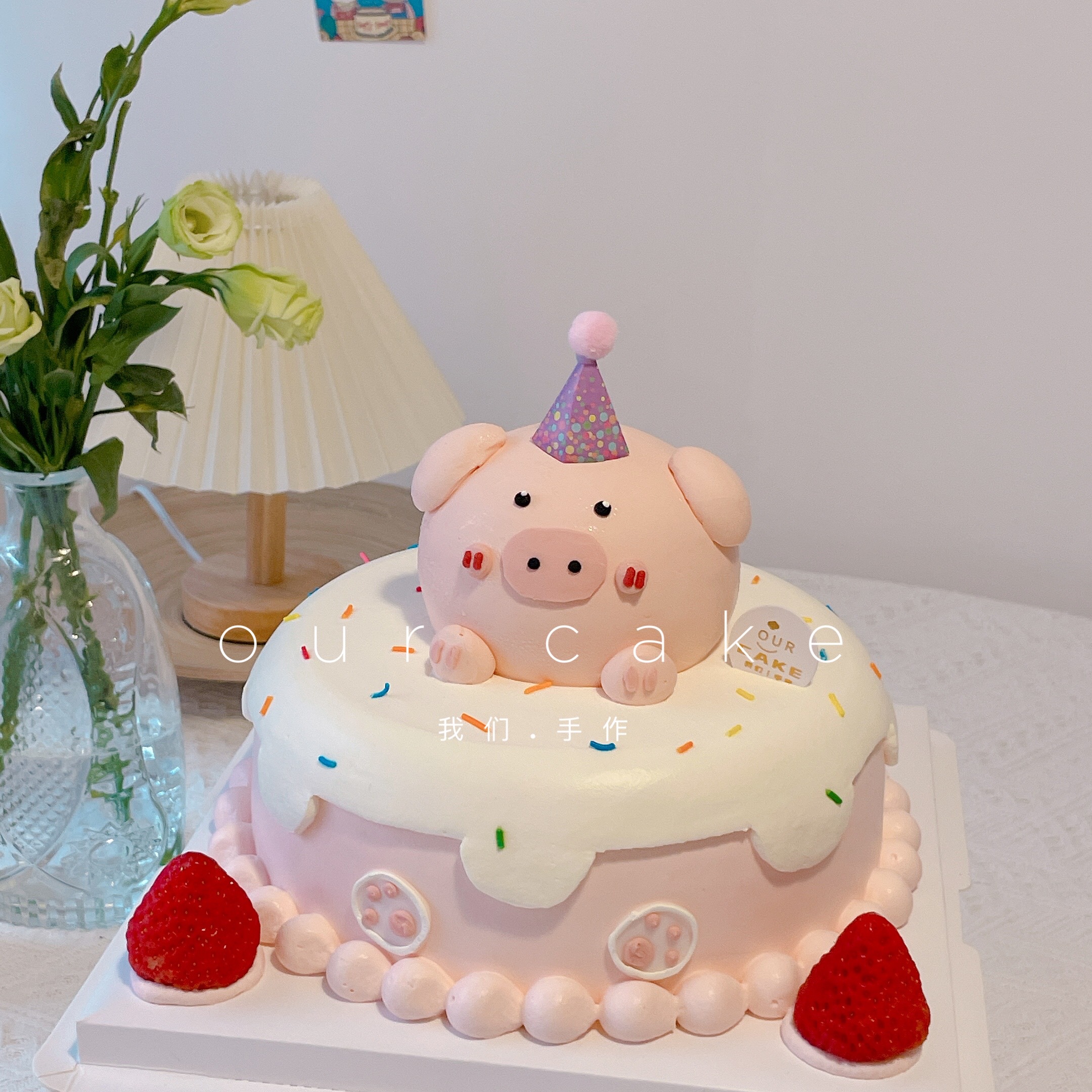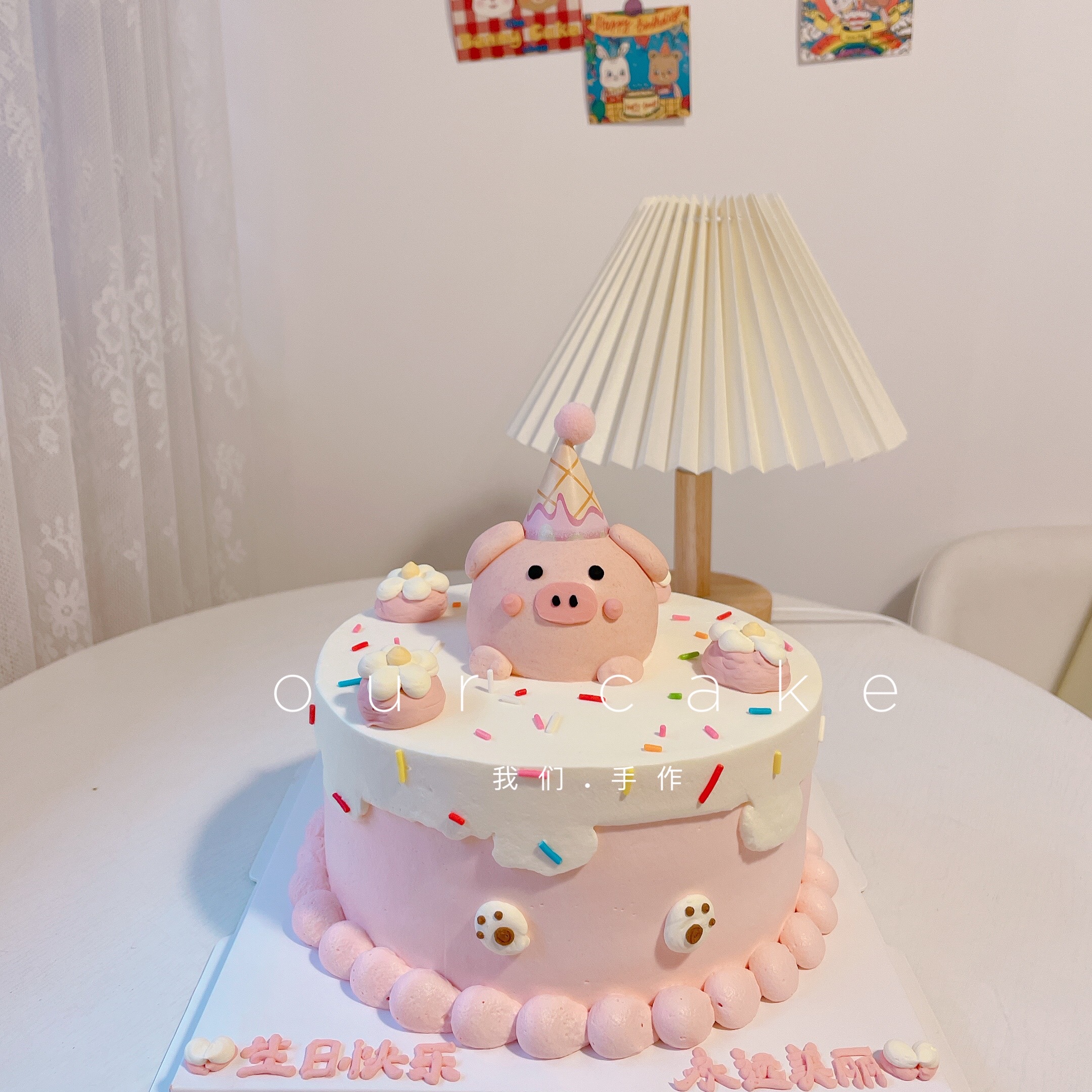 粉色立体小猪猪蛋糕-低糖处理无添加