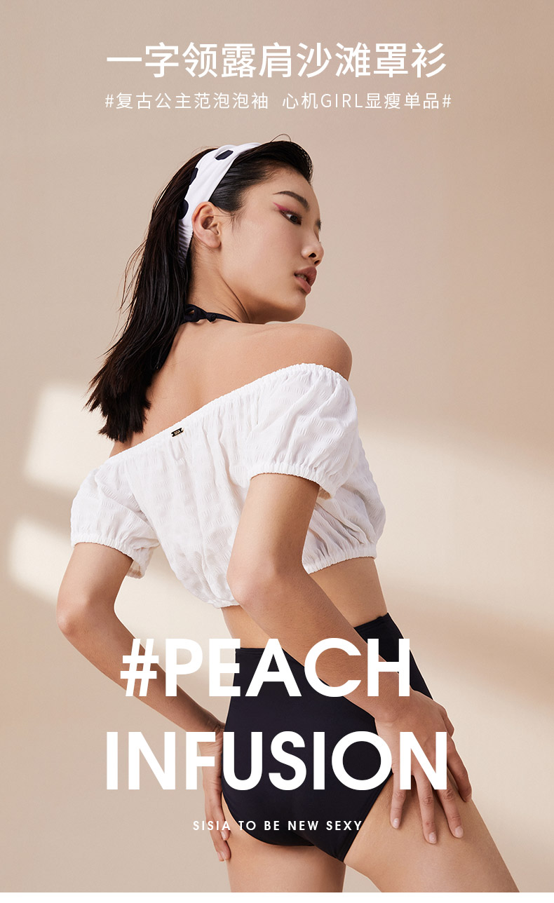 sisia沙滩罩衫时尚比基尼海岛度假性感一字领泳衣外披纱