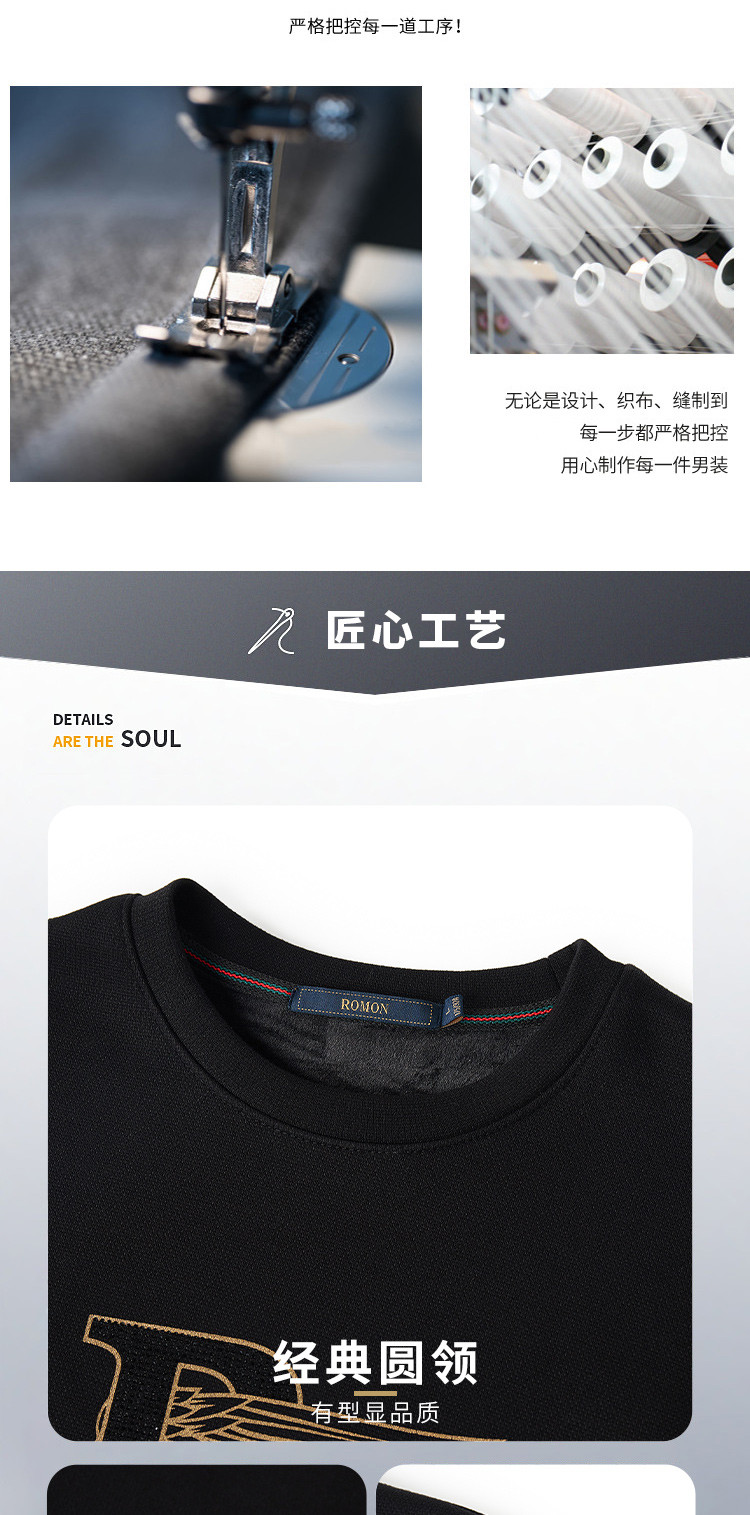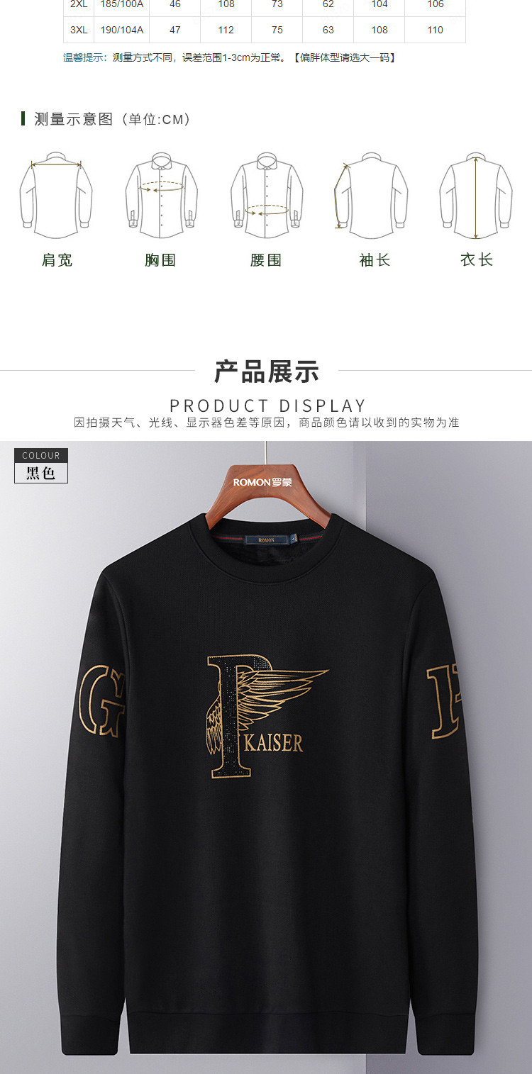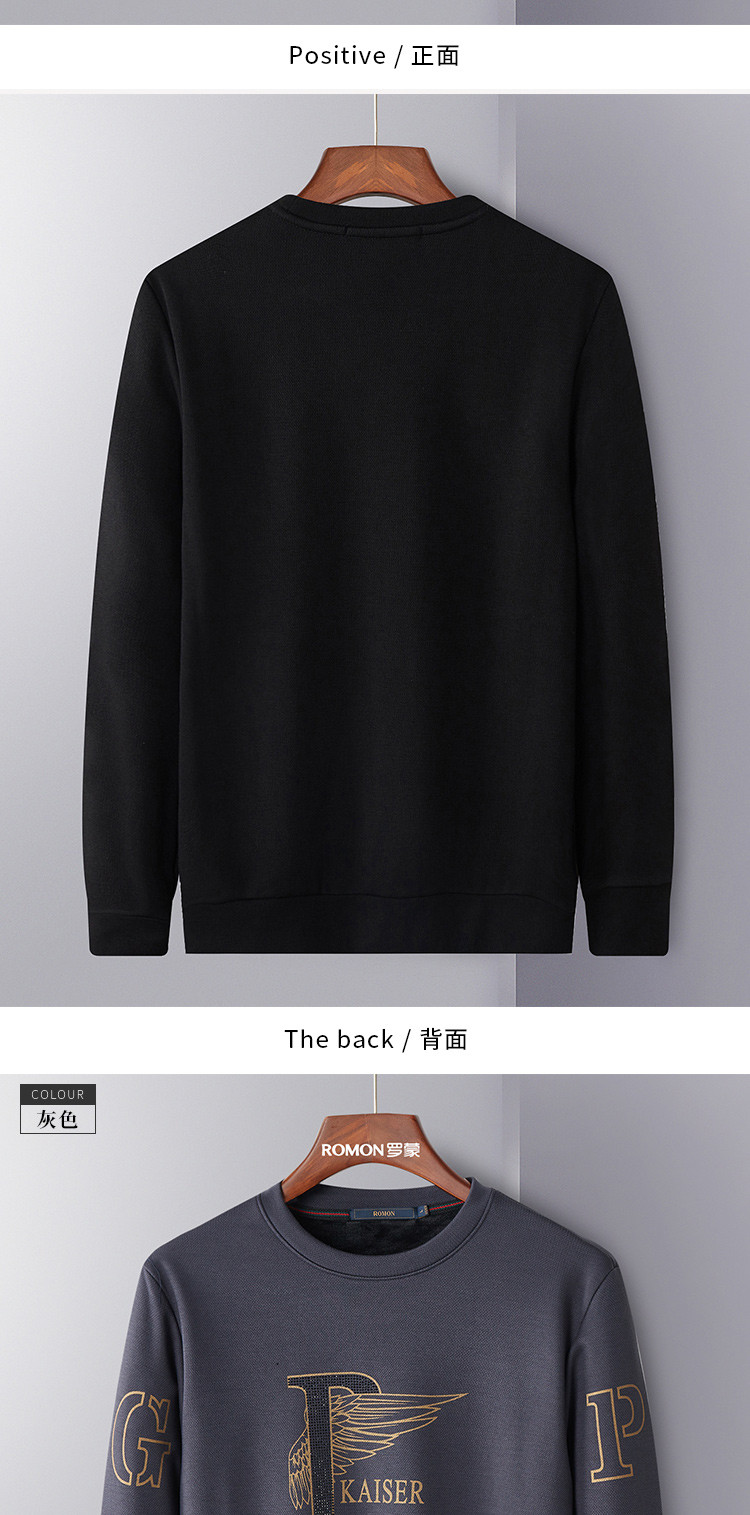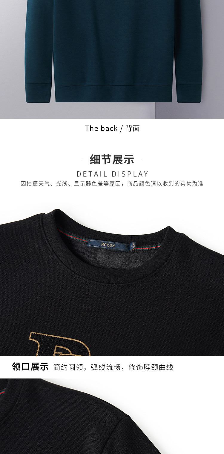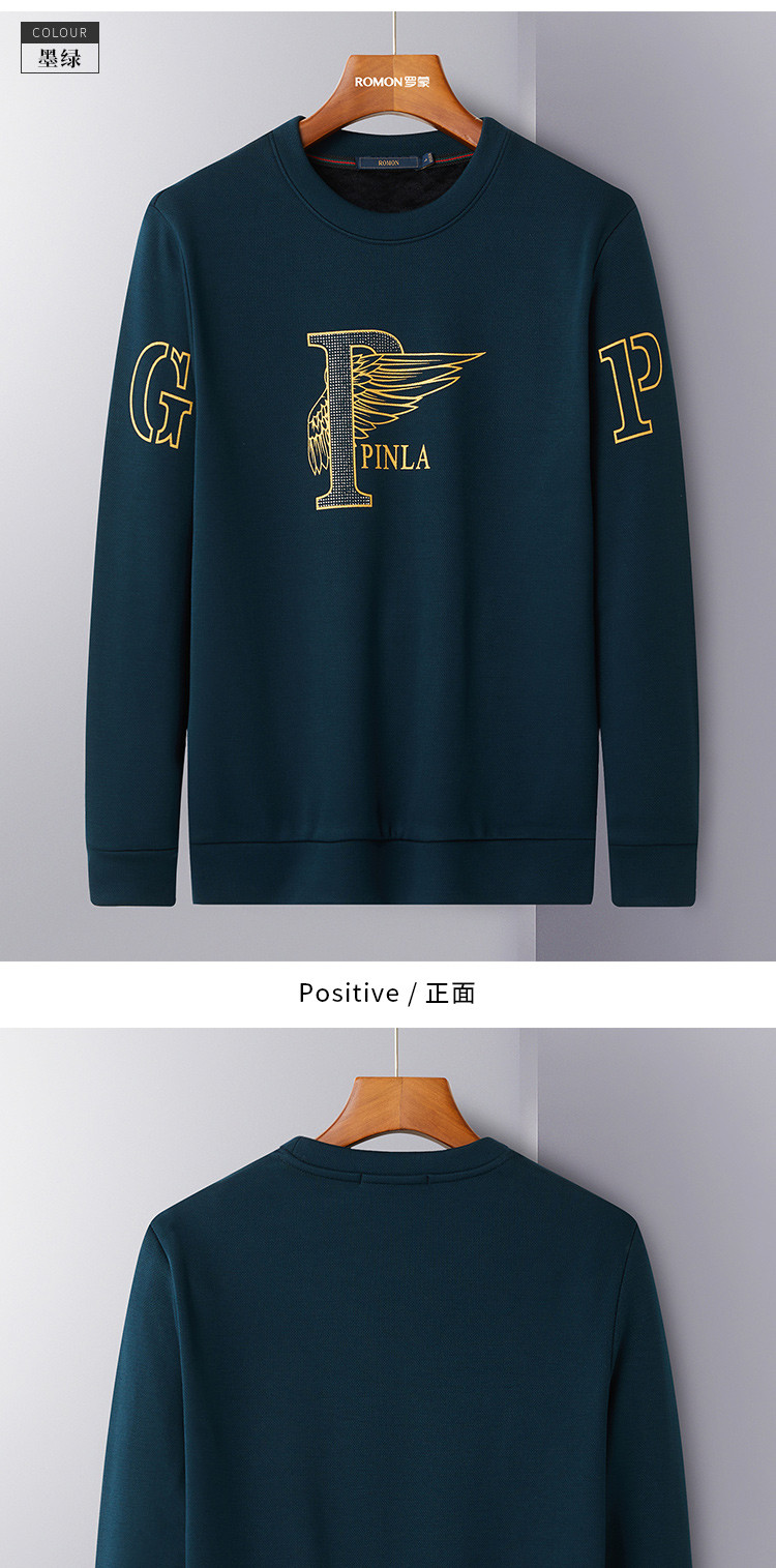 【加绒加厚】罗蒙秋冬男装保暖卫衣男休闲百搭字母印花学院风套头T恤