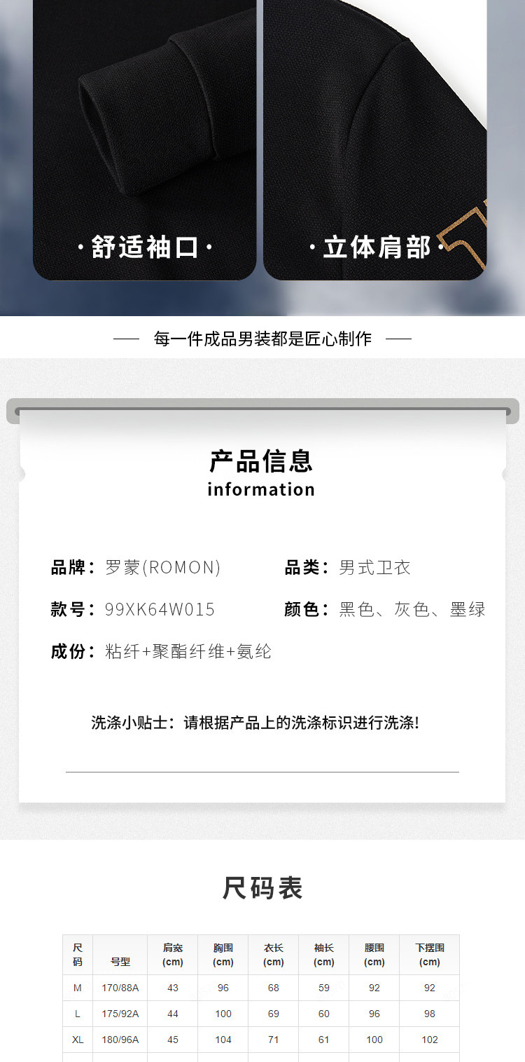 【加绒加厚 蚕丝混纺】罗蒙秋冬男装卫衣口袋款户外运动加绒卫衣男秋冬款加绒保暖男卫衣