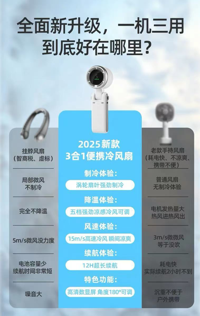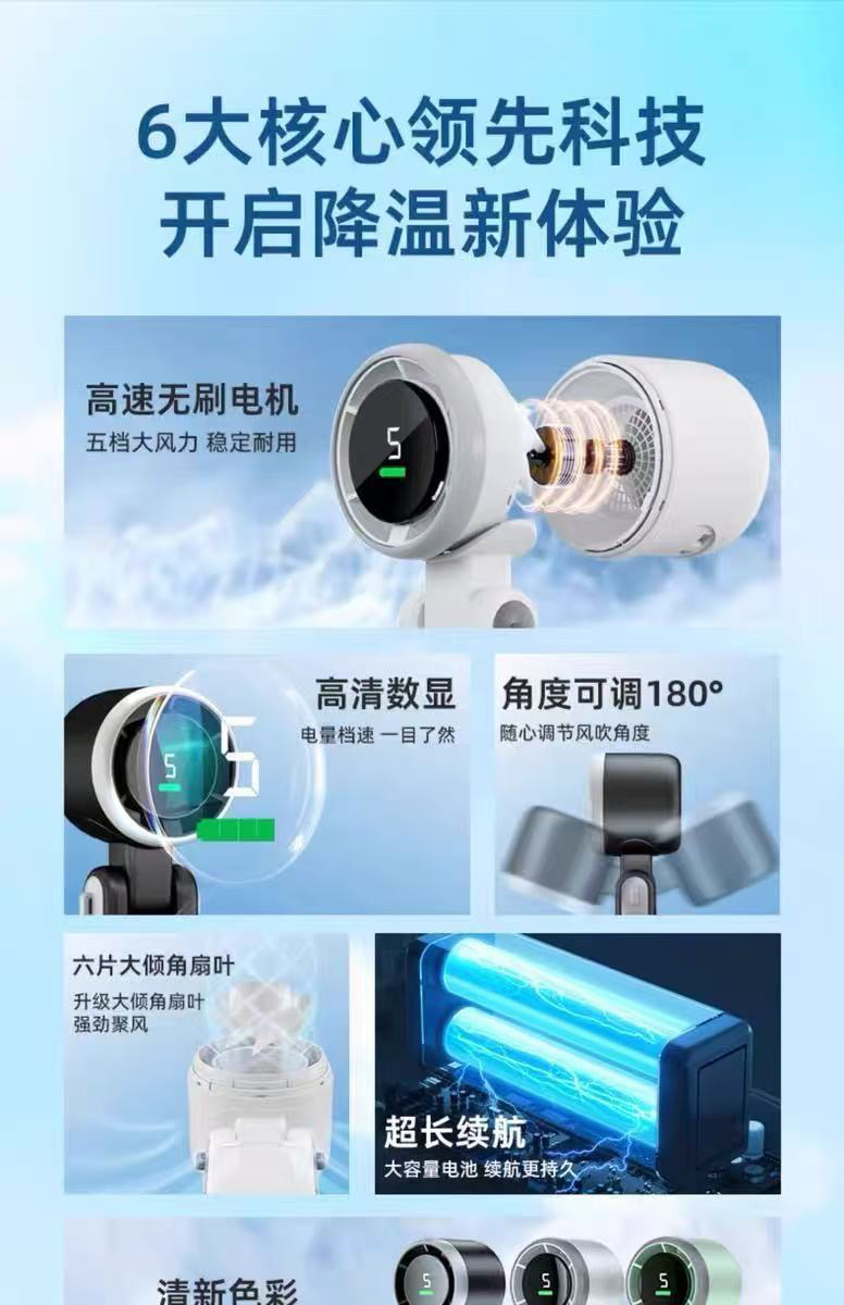 爆款N607可折叠手持风扇涡轮高速静音劲风usb充电挂脖小风扇