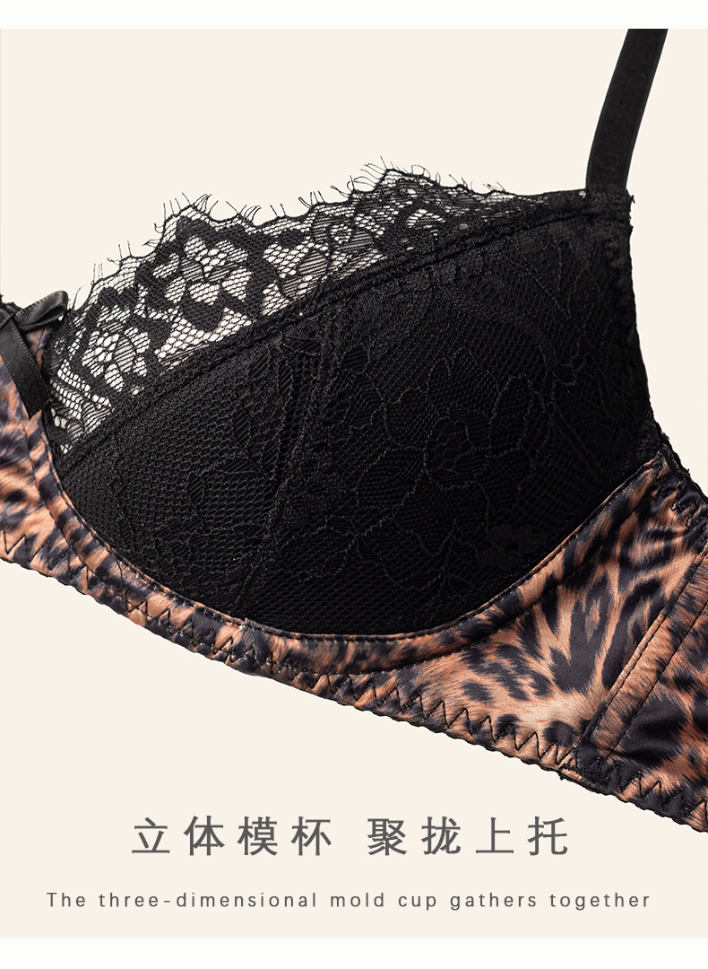 豹纹薄款蕾丝内衣女秋冬性感小胸聚拢上托防下垂文胸套装大胸显小2025新款爆款小红书女神同款