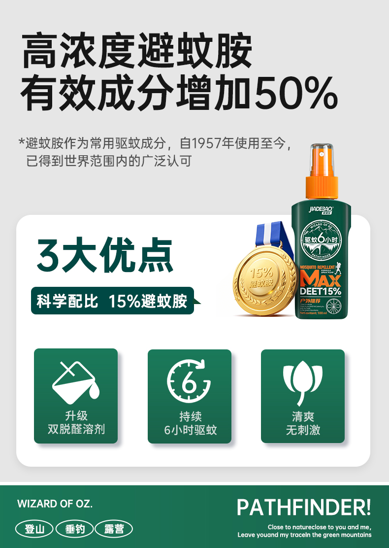 1. 10ÞET(避蚊胺),10%避蚊胺款采用升级双脱醛溶剂,清爽且有效驱蚊,野外硬核驱蚊,无惧蚊虫肆意挑战。