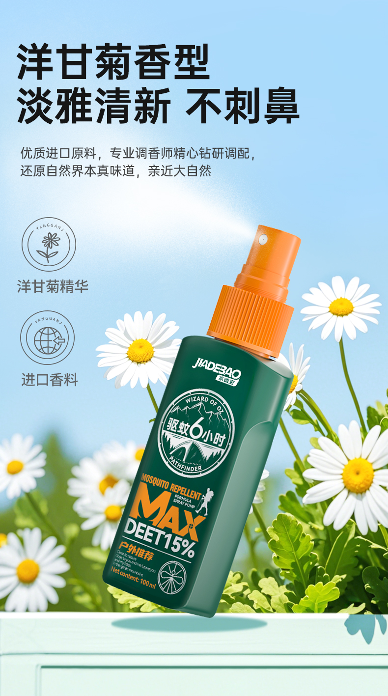 家德宝15%避蚊胺驱蚊喷雾剂成人户外驱蚊水驱蚊液蚊不叮防蚊液100ml(15%避蚊胺)+家德宝植物精油贴24贴/袋
